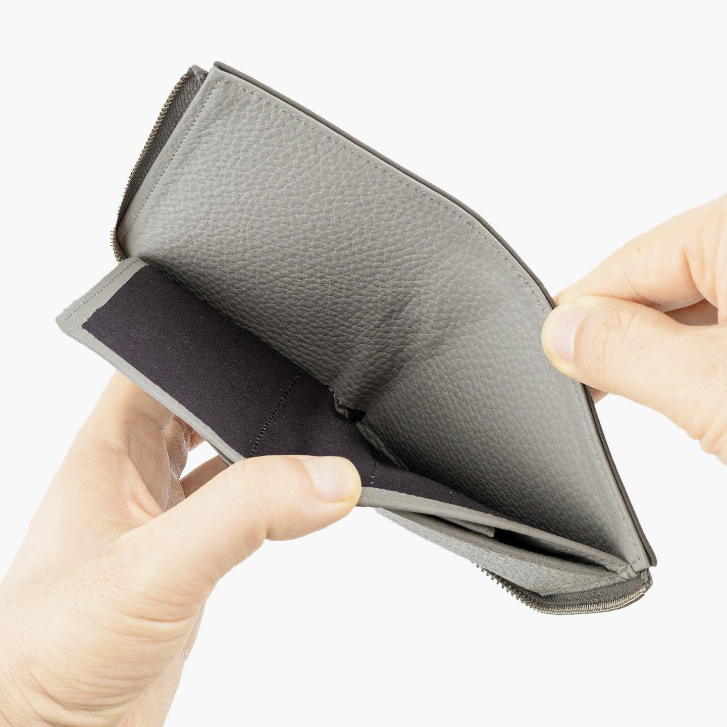 洗練された大人のセンスを魅了する優雅な美しさを創り上げるために、希少な素材と職人技にこだわり抜いているレザーブランド『CIMABUE』のLジップ折財布。スリムなL字型タイプとコンパクトな二つ折りタイプを融合させた設計により、大きく開いて紙幣・カードなどの出し入れがしやすく、ボックス型コインケースも備えた使いやすい万能性が魅力。「キング・オブ・タンナー」と称され世界的にも有名なフランス・デュプイ社の「バブルカーフ」を、あえて外装・内装で異なる色合いのバイカラーにすることで、3種類からセレクトできるスタイリッシュなカラーで自分らしさを表現でき、大人のスマートさへと導いてくれる。