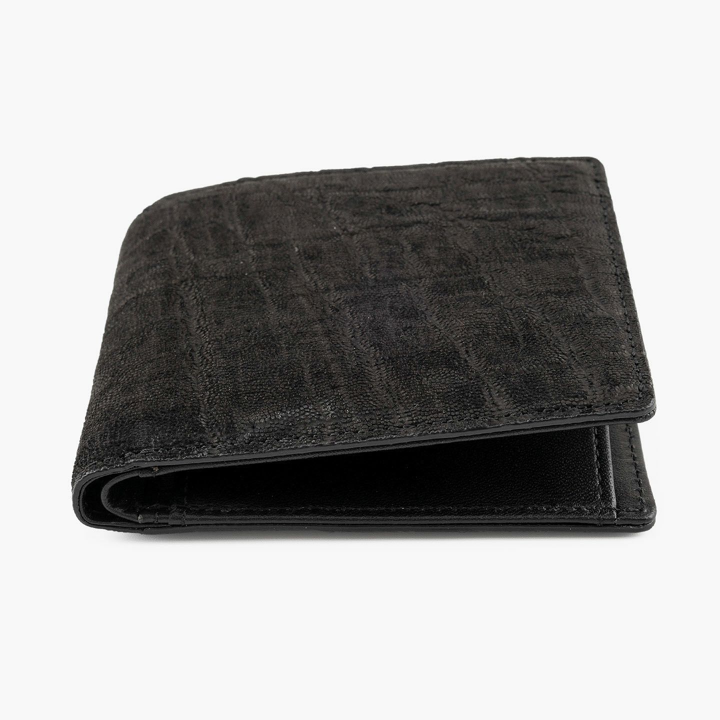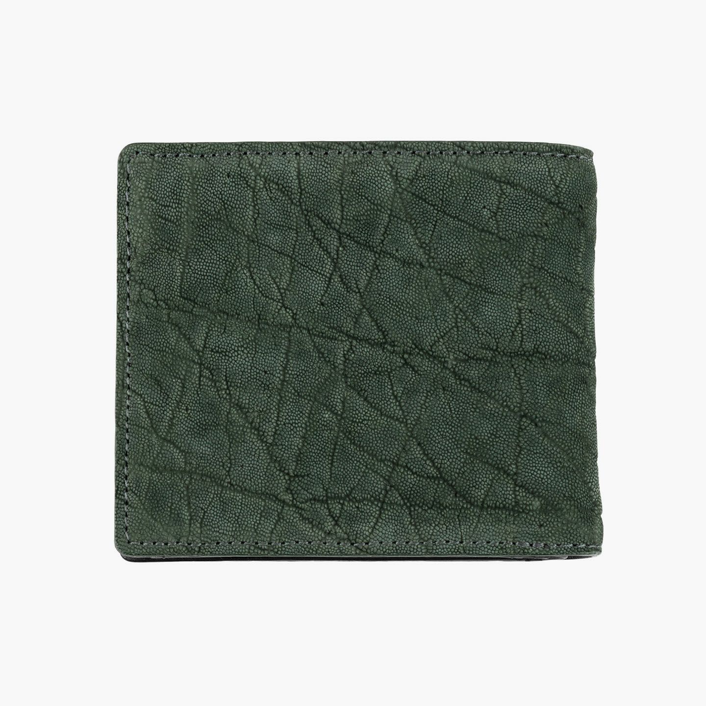 厳格な条件のもと国際取引が認められている、ジンバブエに生息するアフリカゾウの鼻・喉の部分のみを使用した、とても希少な「エレファントレザー」。エキゾチックレザーのひとつでもあるゾウ革は、非常に丈夫であるとともに、キズに対する耐性や撥水性に優れ、厚みがありながらも柔軟性にも富んでいます。また、表面には、細かい粒状の凹凸が広がっていて、部位により不規則なシワが入った表情が、惹きつけられる魅力にもなっています。さらに、ゾウ革においては、表皮を擦り取って起毛させた、ヌバック調に仕立てているのが一般的。細かい粒状隆起や大ぶりなシボ・トラ(スジ状のシワ)などが、複雑に絡み合って織り成すワイルドな風合いも特長的です。そして、それらの表情は、不規則なので同じように見えるものがなく、オンリーワンの個性を創出。使い込むほどにツヤ・色味が増していく、魅力的なエイジングも楽しめます。