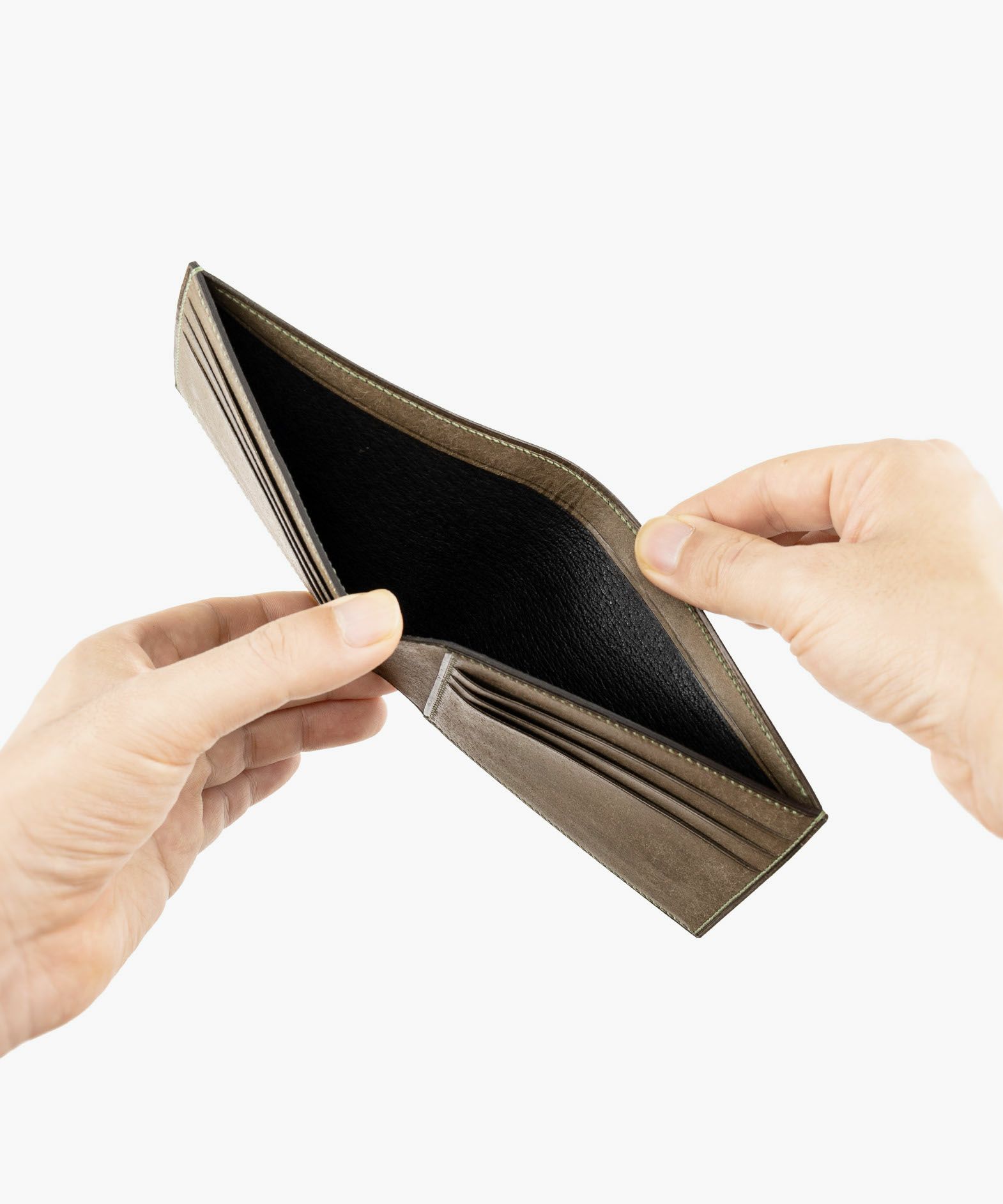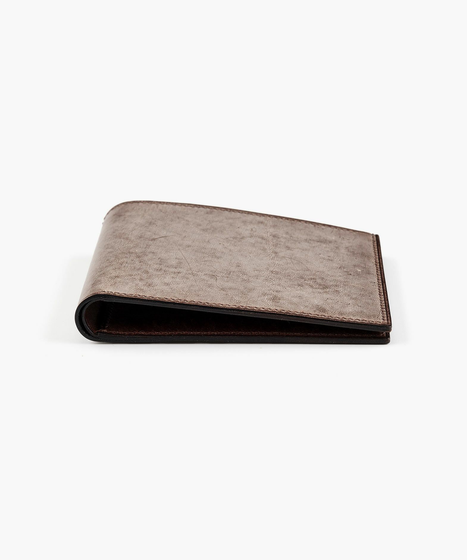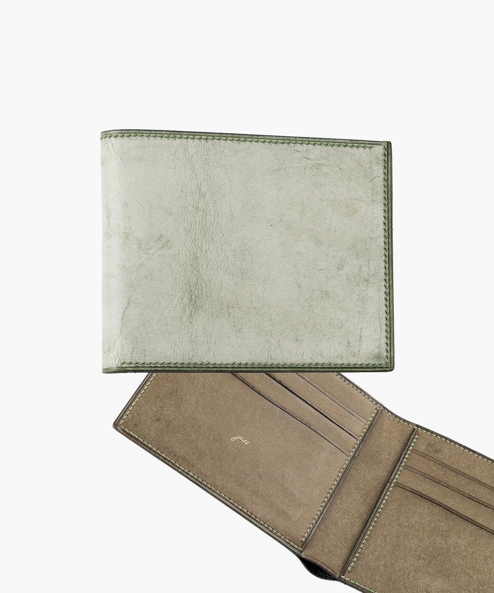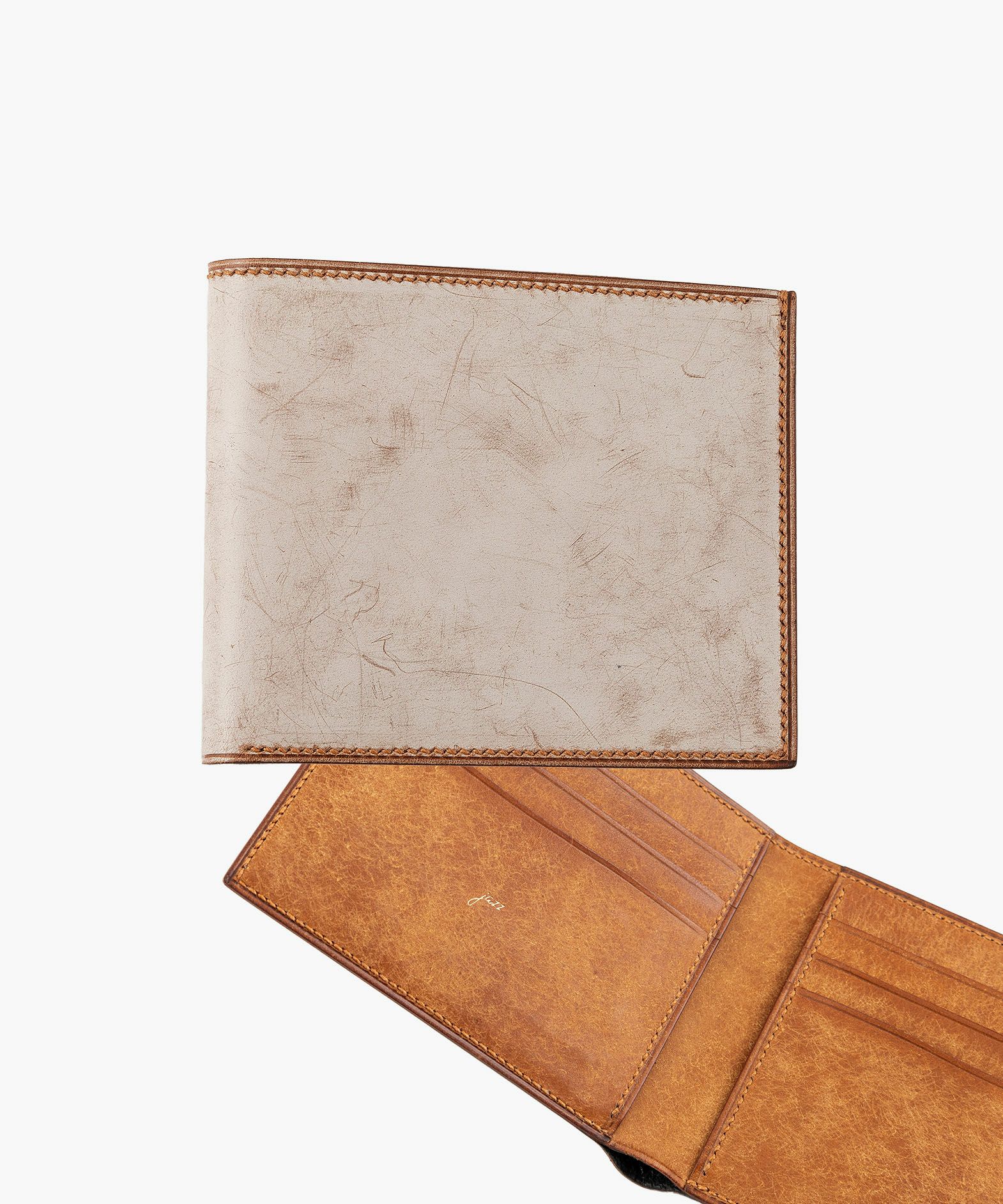 スリムでコンパクトなフォルムながら、小銭入れを排して紙幣&カード収納の機能性を追求した、二つ折り財布“モンテローザ 1.0”。外装には、表面に浮かび上がるブルームが独特の味わいを醸す、コンツェリア・ラ・ブルターニャ社製「ゴースト」を採用し、堅牢性とエイジングが期待できるのも魅力。内装には、表面がザラザラした質感で和紙のような風合いが漂う、バダラッシカルロ社製「プエブロ」を採用し、美しいツヤ肌へと育っていく経年変化の楽しみも。ハイセンスなイタリアンレザーの共演による、洒落感あふれる表裏のカラー5種からセレクトして、自分らしい個性を表現できるスタイリュシュなアイテムへ。使うほどに手に馴染んで輝きが増していき、普段使いに欠かせない存在感をもたらしてくれる。