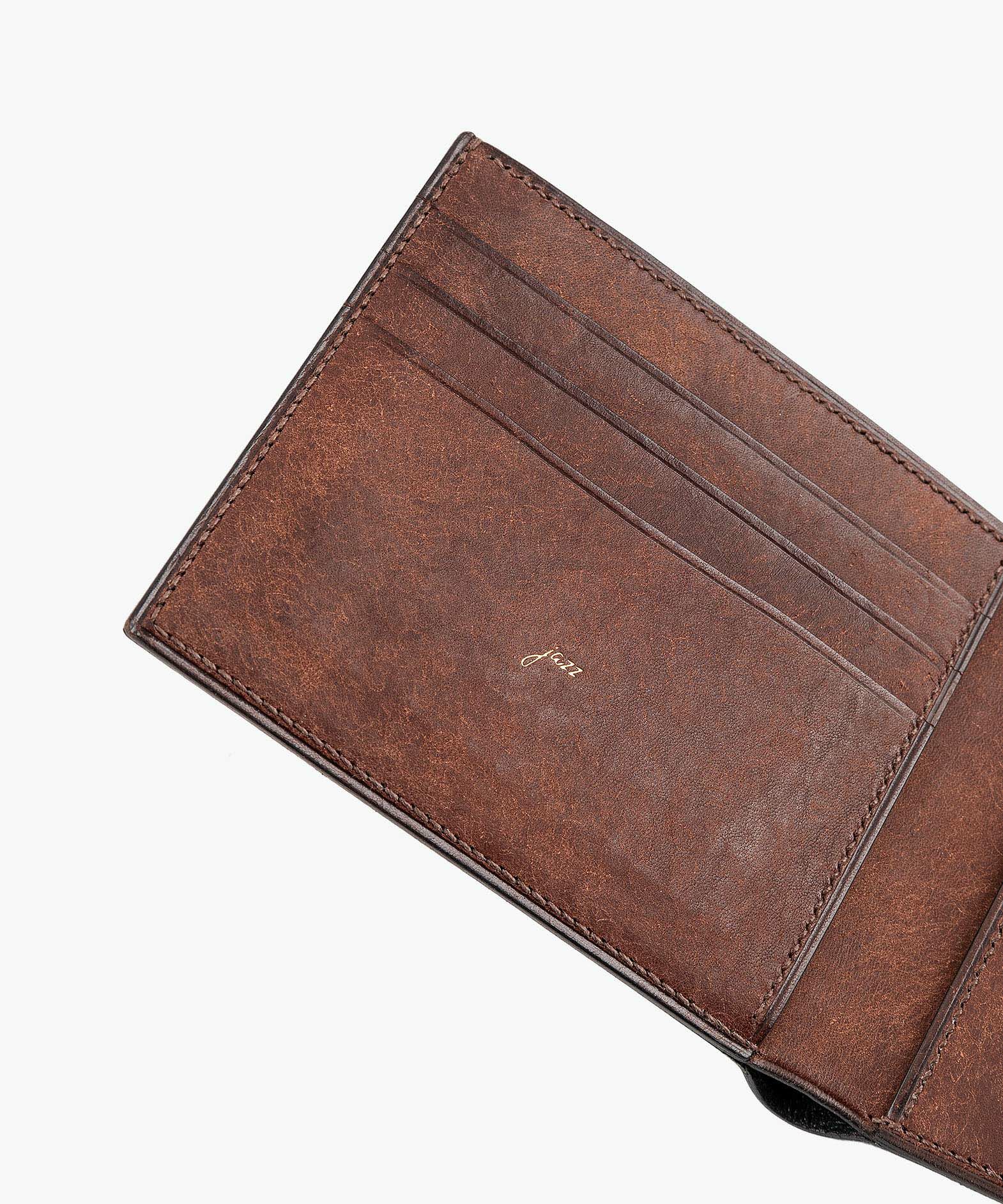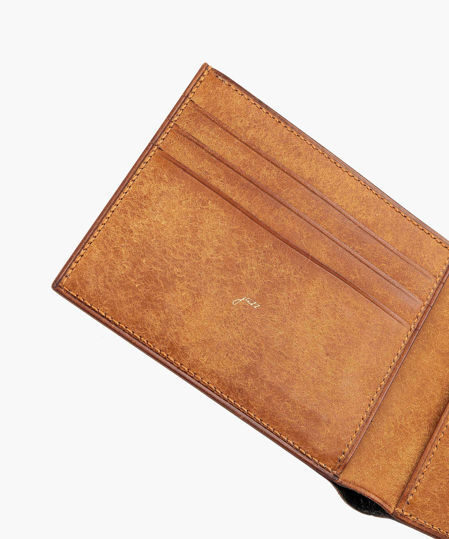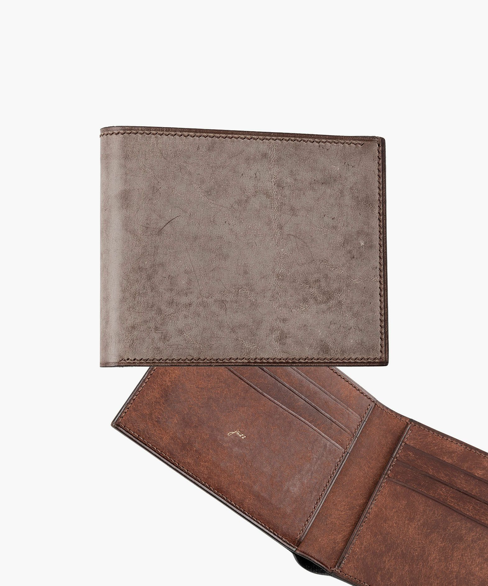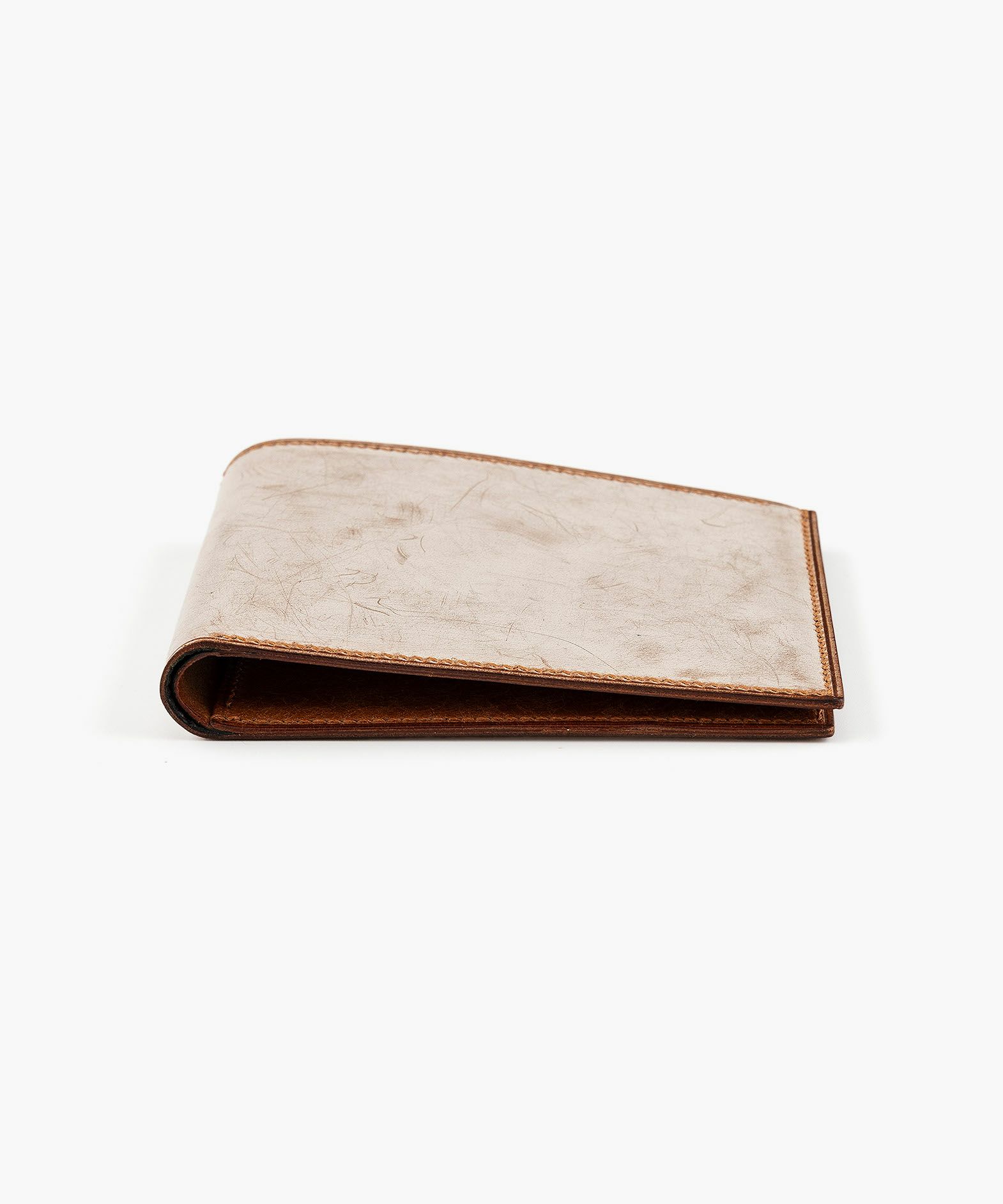 スリムでコンパクトなフォルムながら、小銭入れを排して紙幣&カード収納の機能性を追求した、二つ折り財布“モンテローザ 1.0”。外装には、表面に浮かび上がるブルームが独特の味わいを醸す、コンツェリア・ラ・ブルターニャ社製「ゴースト」を採用し、堅牢性とエイジングが期待できるのも魅力。内装には、表面がザラザラした質感で和紙のような風合いが漂う、バダラッシカルロ社製「プエブロ」を採用し、美しいツヤ肌へと育っていく経年変化の楽しみも。ハイセンスなイタリアンレザーの共演による、洒落感あふれる表裏のカラー5種からセレクトして、自分らしい個性を表現できるスタイリュシュなアイテムへ。使うほどに手に馴染んで輝きが増していき、普段使いに欠かせない存在感をもたらしてくれる。
