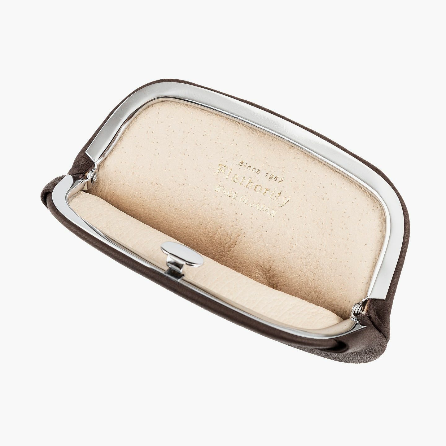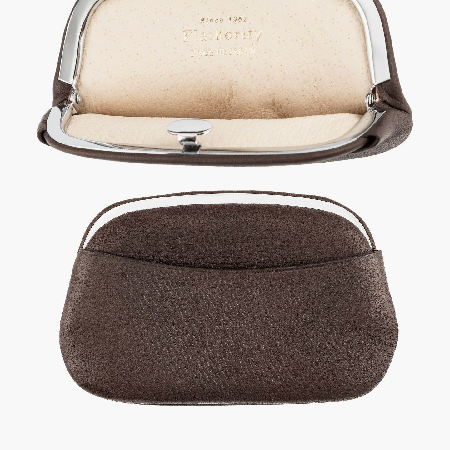 半世紀以上に渡り国内有名ブランドの鞄を製作し、数々のコンテスト受賞歴を誇る鞄メーカー猪瀬が、どこにも真似のできないレザー製品を生み出したい想いを込めた『Flathority』のコインケース(M)。内部に隠れている留め金を、ワンクリックするだけで簡単に開閉できる設計で、突起を排した高級感あふれるシンプルなデザイン性を追求。生後半年ほどの仔牛の革「キップ」による肌触りの良いキメ細やかさや、上質でソフトな風合いの軽量感、丸みを帯びた横長サイズで手のひらに収まるコンパクト感など、持ち歩きたくなる愛着感とともに、大人の洒落感も演出してくれる。