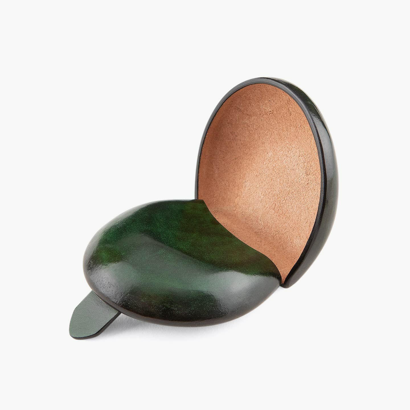 イタリア・フィレンツェの工房で修行した革小物職人・久内夕夏の手作りによる、靴のトゥ(つま先)をイメージしたコインケース。同じくフィレンツェで修行した夫の靴職人・久内淳史と『il Quadrifoglio』を展開し、女性の感性を生かした美しく繊細なアクセサリーのような革小物をクリエイト。イタリア・トスカーナ地方の伝統技法によるシームレスの風合いと、色を重ねていく手染めによるアンティークな色合いが、イタリアンな魅力を奏でてくれる。