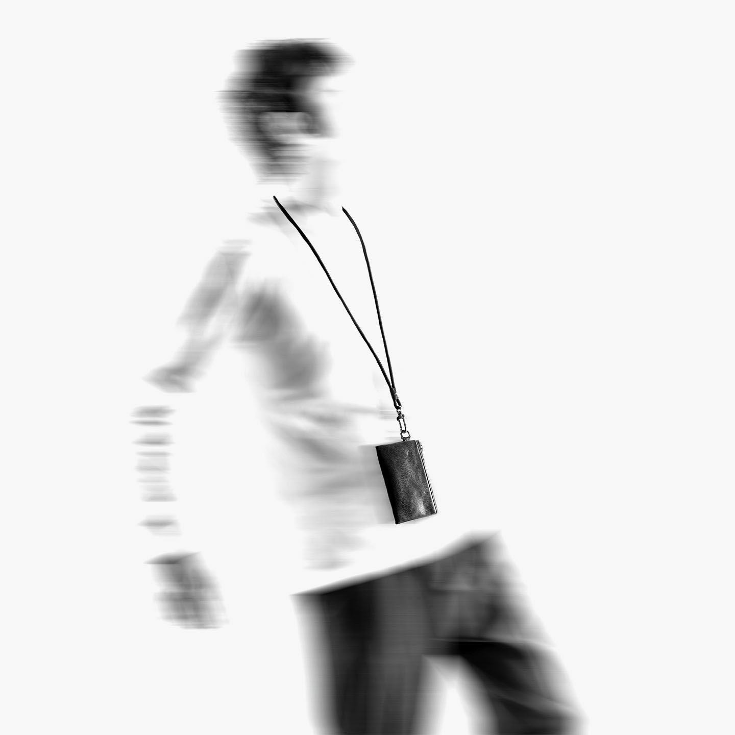 卓越したベテラン職人が、大手ブランドのOEM生産などで数多くの実績を誇る、革工房のプライベートブランド『pepeercorn』のフラグメントケース。フランスの高級皮革メーカー・アノネイ社による上質な外装「カーフ」は、しなやかな手触りとレザーとは思えないほどの軽さが魅力的で、スタイリッシュなデザインを洒落感あふれる表情で演出。取り外しができる付属の「1カラビナ ショルダーストラップ」(付属なしの購入も可)が、自分の好みやシーンに合わせた使い方を可能にしながら、ファスナー式ポケット1つ・カードポケット5つを備えた収納性と、手のひらに収まるスリムなサイズ感が、軽快な普段使いをアシストしてくれる。
