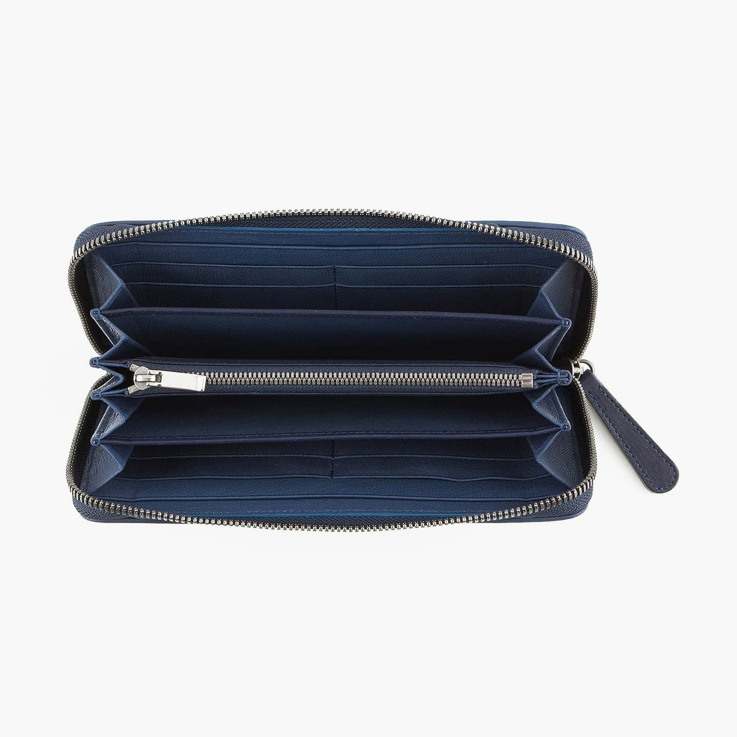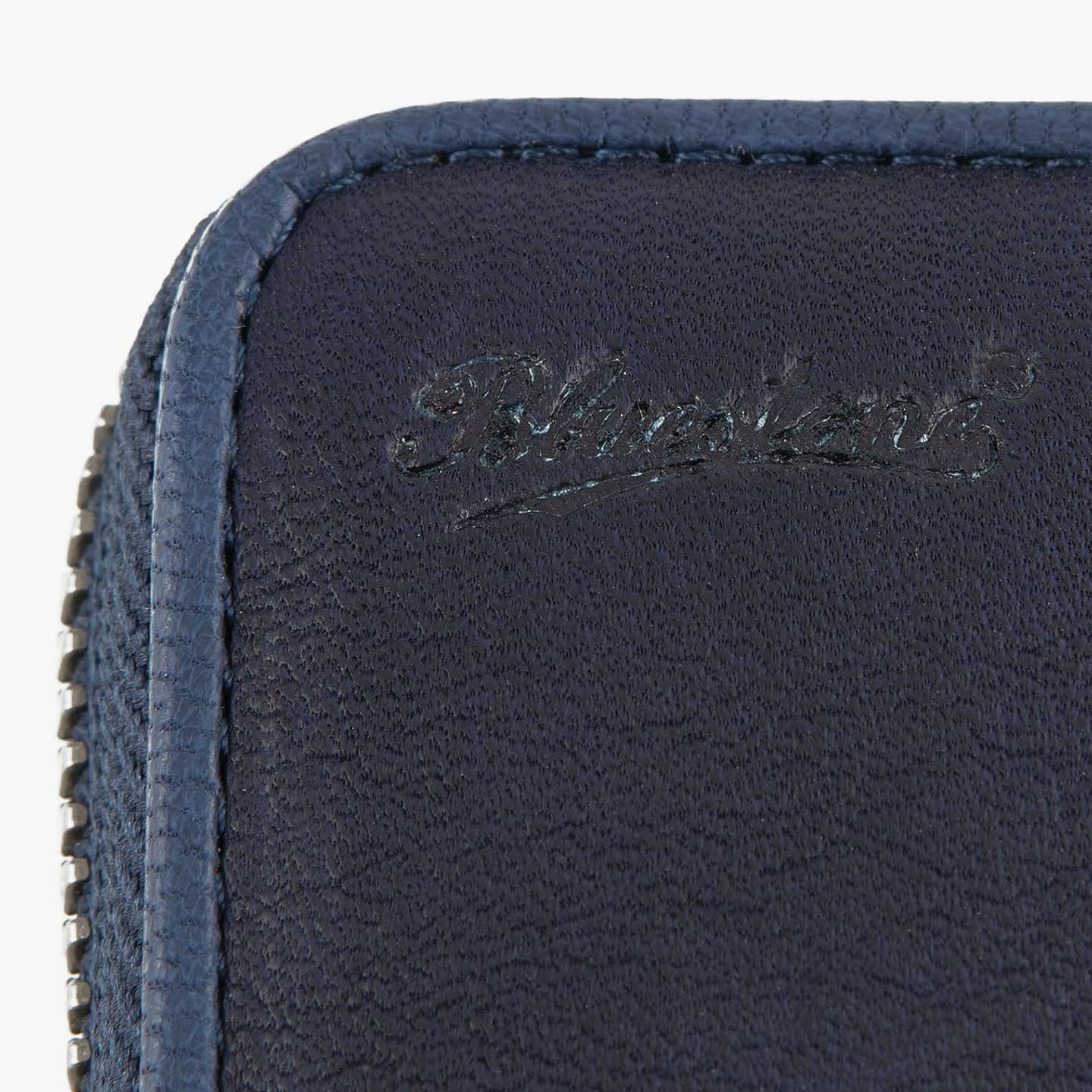 財布の内外ともに素材感があり、デザインの統一性も重視するため、あえてヌバックゴート革の銀面ではない裏面を使用。エイジングにより、手の脂などが染み込み、使うごとに自然なツヤが楽しめます。山羊革自体は、個性的な凹凸をしたシボと、独特な毛穴の形状が特長。薄くても丈夫で、型崩れしにくい特性があるため、高級レザー手袋やブランドのレザーシューズに使われることが多い素材です。また、しなやかで耐久性にも優れているので、身に付けるものやジャケットなどにも多く利用。アメリカ空軍がA-10フライトフローブ、アメリカ海軍がフライトジャケット(M-422)に使っていたことでも知られています。