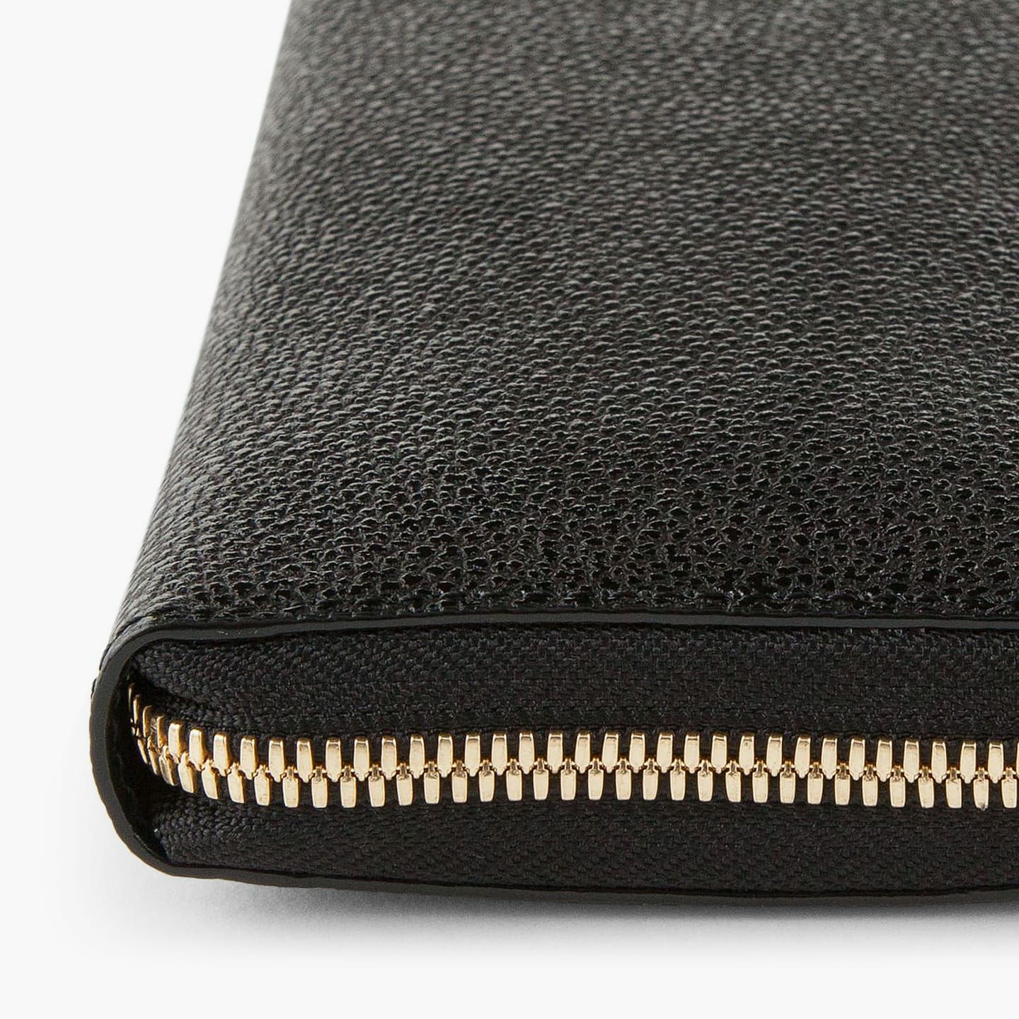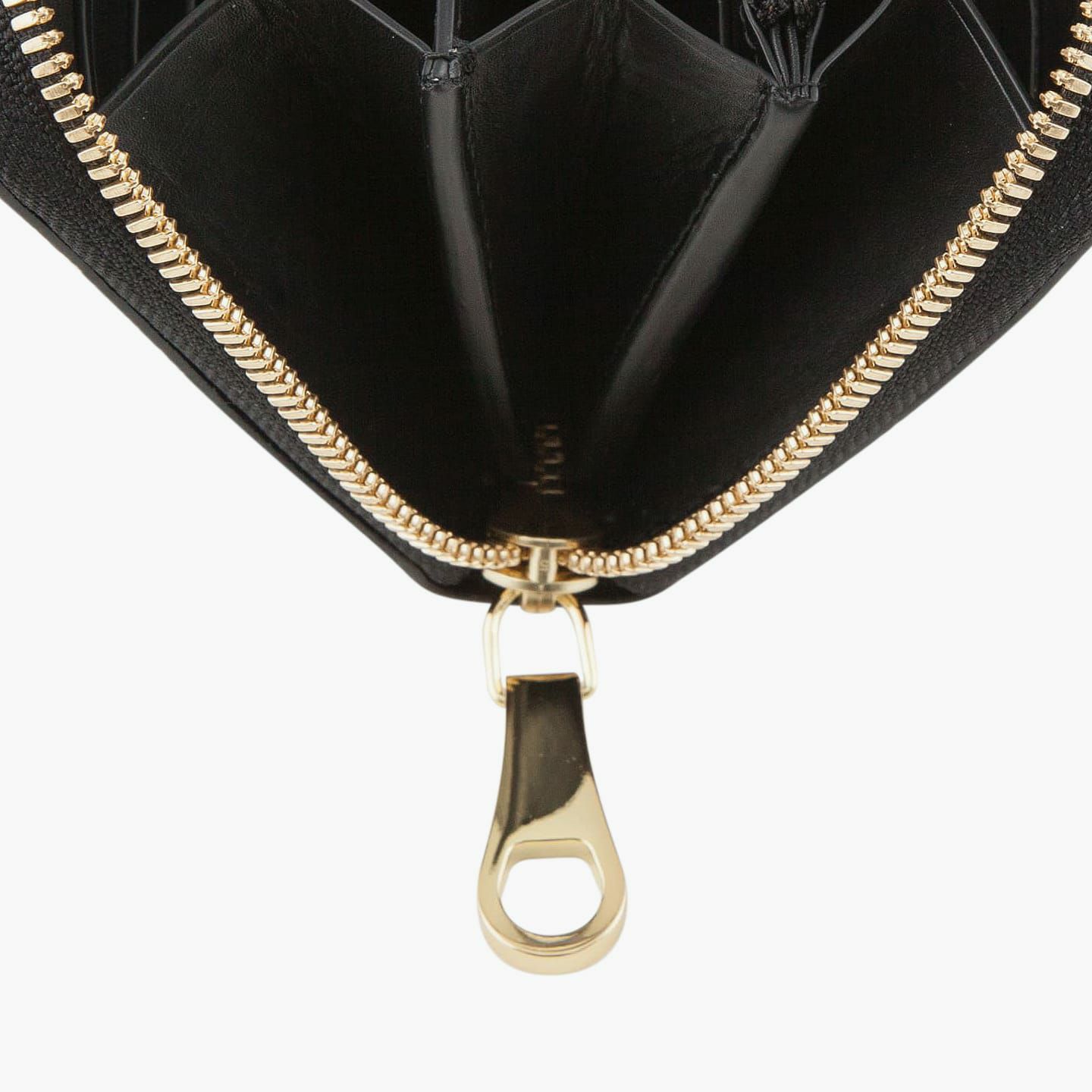 漆塗りシボ型押しレザーは、小さな黒ダイヤの粒が無数に散りばめられたような表情が魅力。また、経年変化による影響を最小限に抑えて、美しいツヤ肌を維持することが可能。本体の切れ目は角を滑らかに削ぎ落とし、漆と親和性の高い漆黒の顔料を塗装。そして、匠の職人が磨き上げたコバは、ボリューム感のある立体感とツヤを実現。