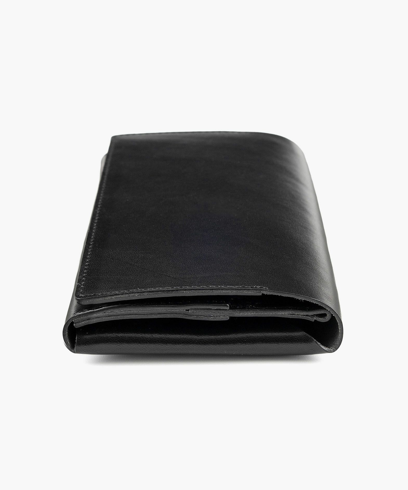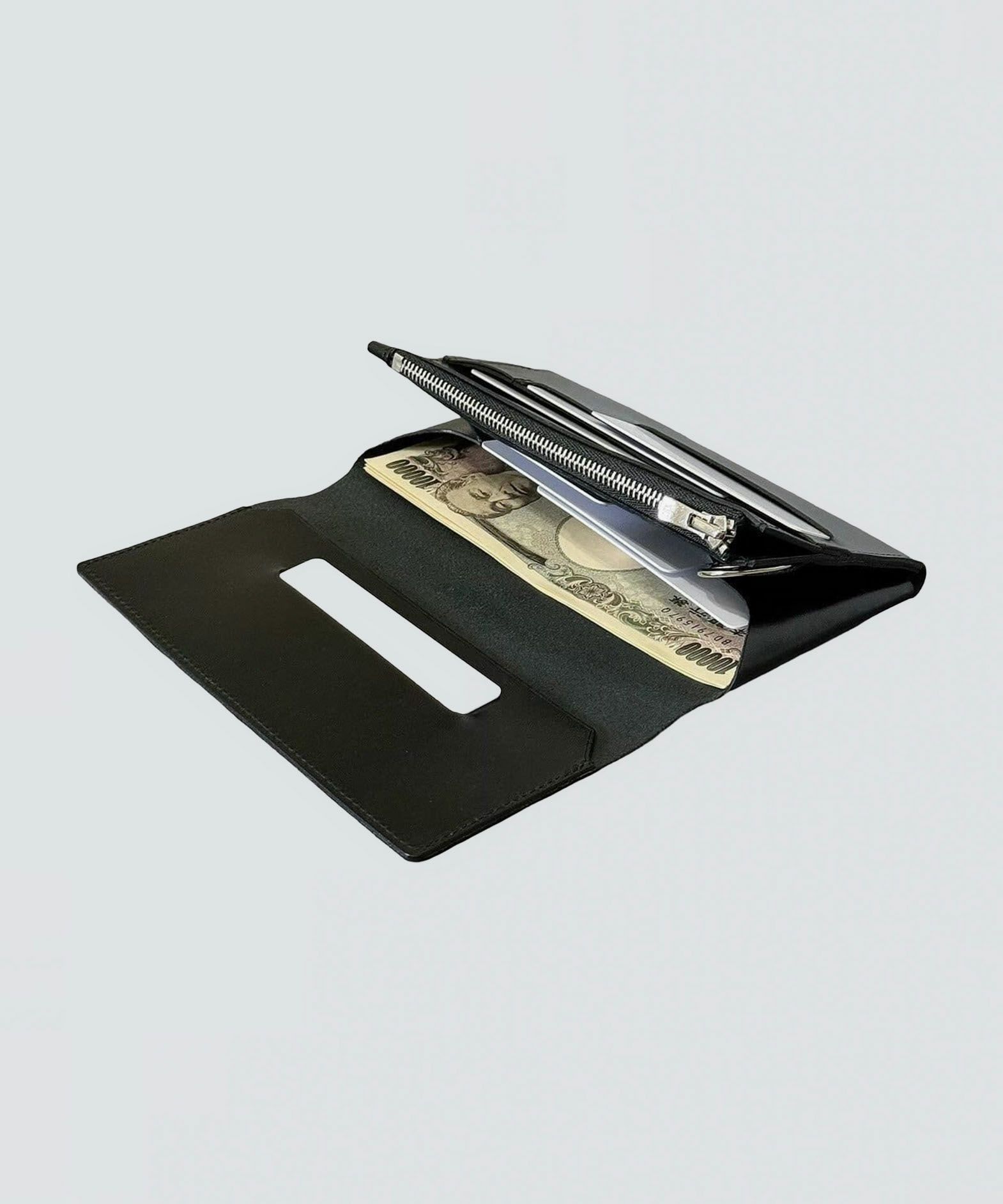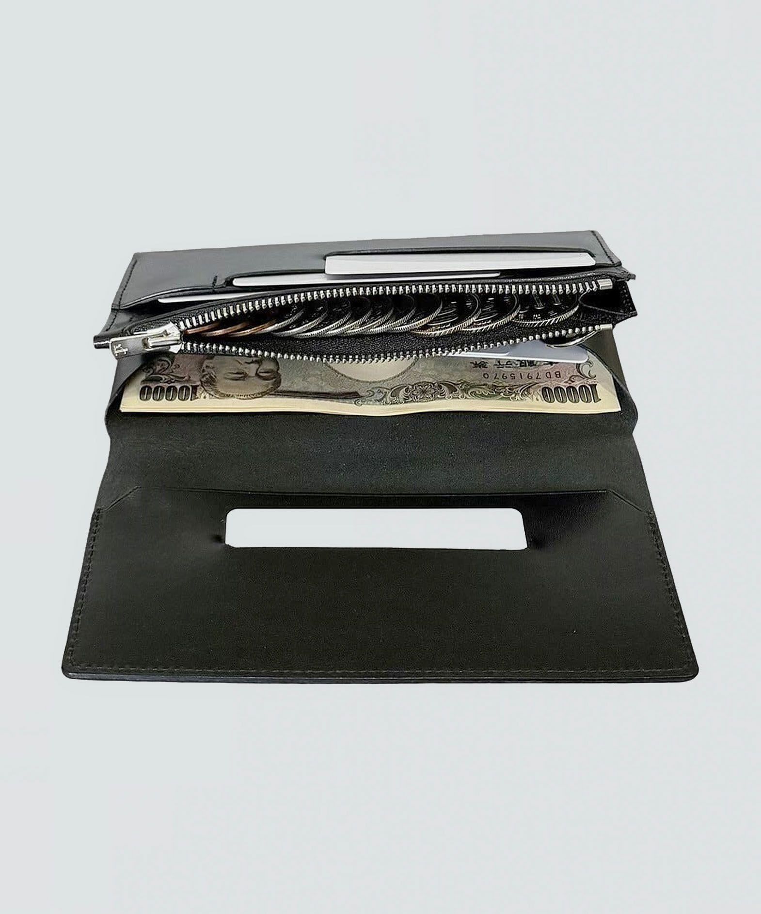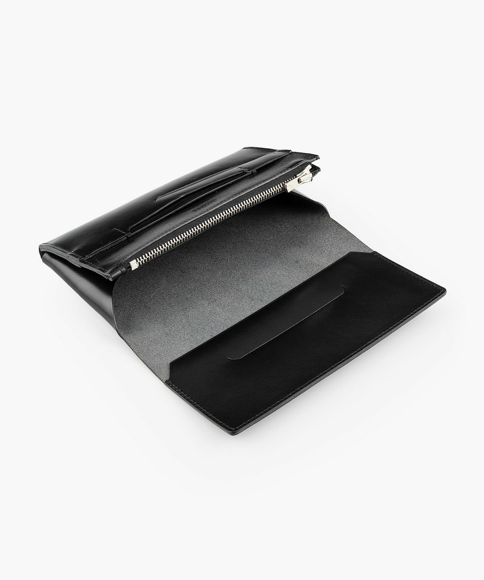 カードと硬貨が重ならない設計にすることで、約2cmというスリムさと、一万円紙幣と同じくらいのコンパクトさを実現した、薄くて小さなスリムロングウォレット。このサイズ感でありながら大容量と使いやすい構造を両立させ、カードポケット計7つ・フリーポケット1つ・鍵用ポケット1つとともに、収納時のカードを避けるように上部にレイアウトされたコインポケットは、小銭の出し入れしやすさと視認性の高さを兼ね備えているのも魅力。ツヤ感が美しいイタリア・M.P.G.社製「イングラサットLUX」は、発色の良いBlack/Camelから好みに合わせてセレクト可能。ボトムスやジャッケットのポケットに入れても、スマートに収まるスタイリッシュな佇まいが、センスあふれる大人の色気を醸し出させてくれる。