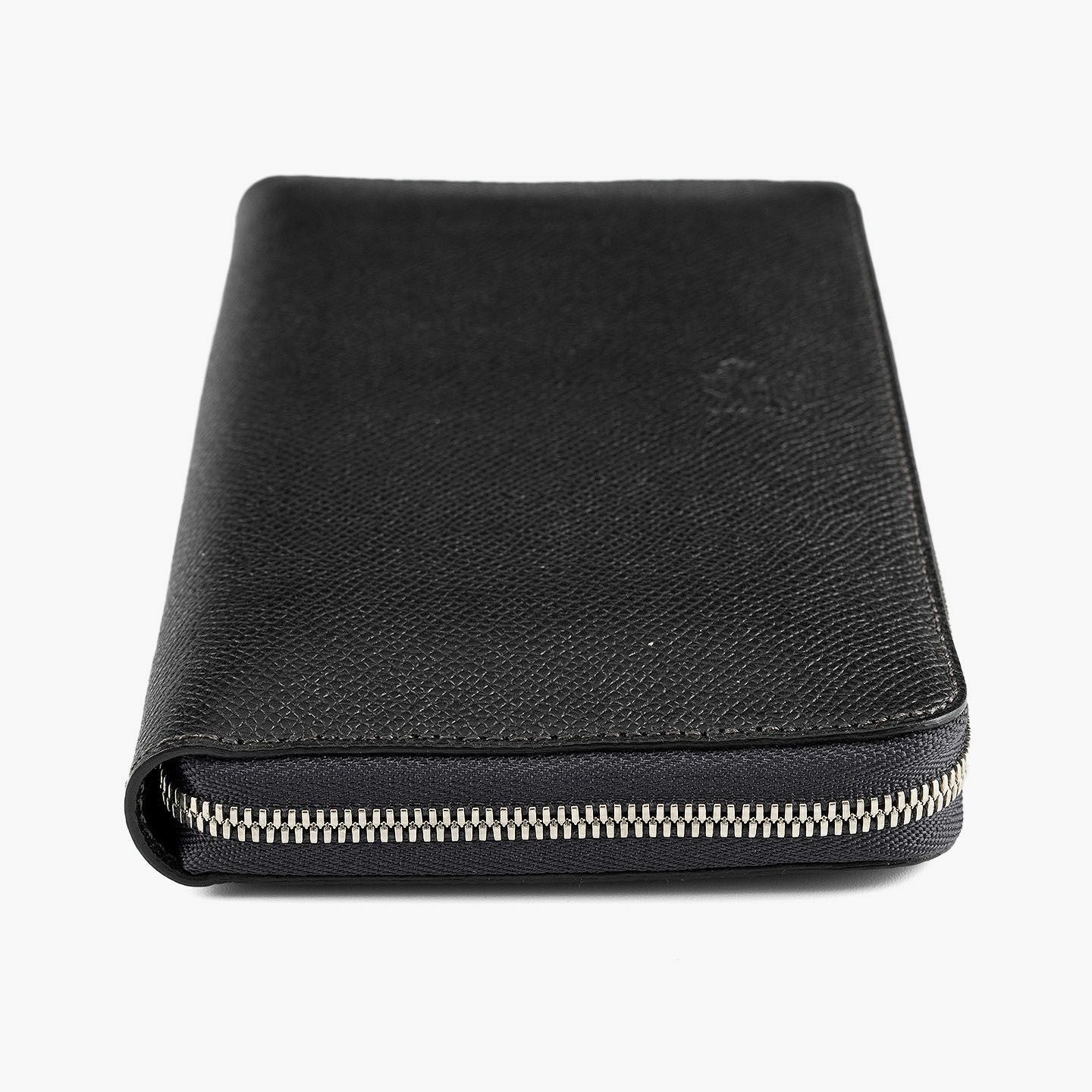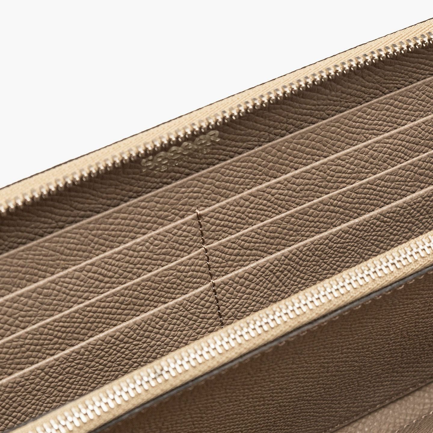 世界中のセレブリティから愛され、数多くの受賞歴を誇ってきた技術に恥じぬよう、日本の職人たちの手で現代に蘇らせたブランド『SEEGER』のラウンドジップ長財布“Kronos”。カジュアルに普段使いができる小キズに強い型押し牛革「ボーダーハード」を採用し、洗練された上質感を醸し出すとともに、非常にしなやかな触り心地で愛着感を醸成。シンメトリーデザインの内装も同じ素材で統一させながら、マチの片側だけを同色のトカゲ革「リザード」をあしらい、さりげない大人の小粋さを演出。札入れ2・ファスナー式コインポケット1・カードポケット12・フリーポケット2を備えた十分なオールインワンで、スタイリッシュな使用感へと導いてくれる。