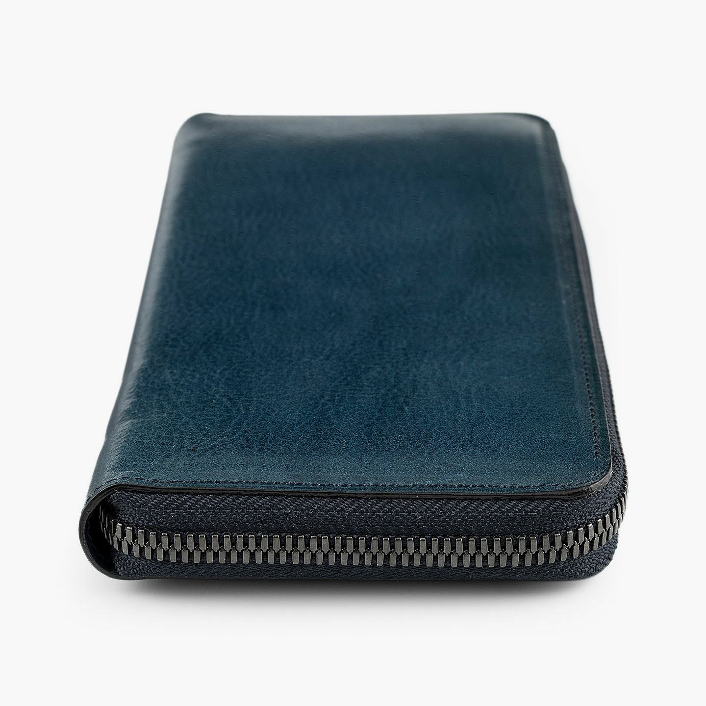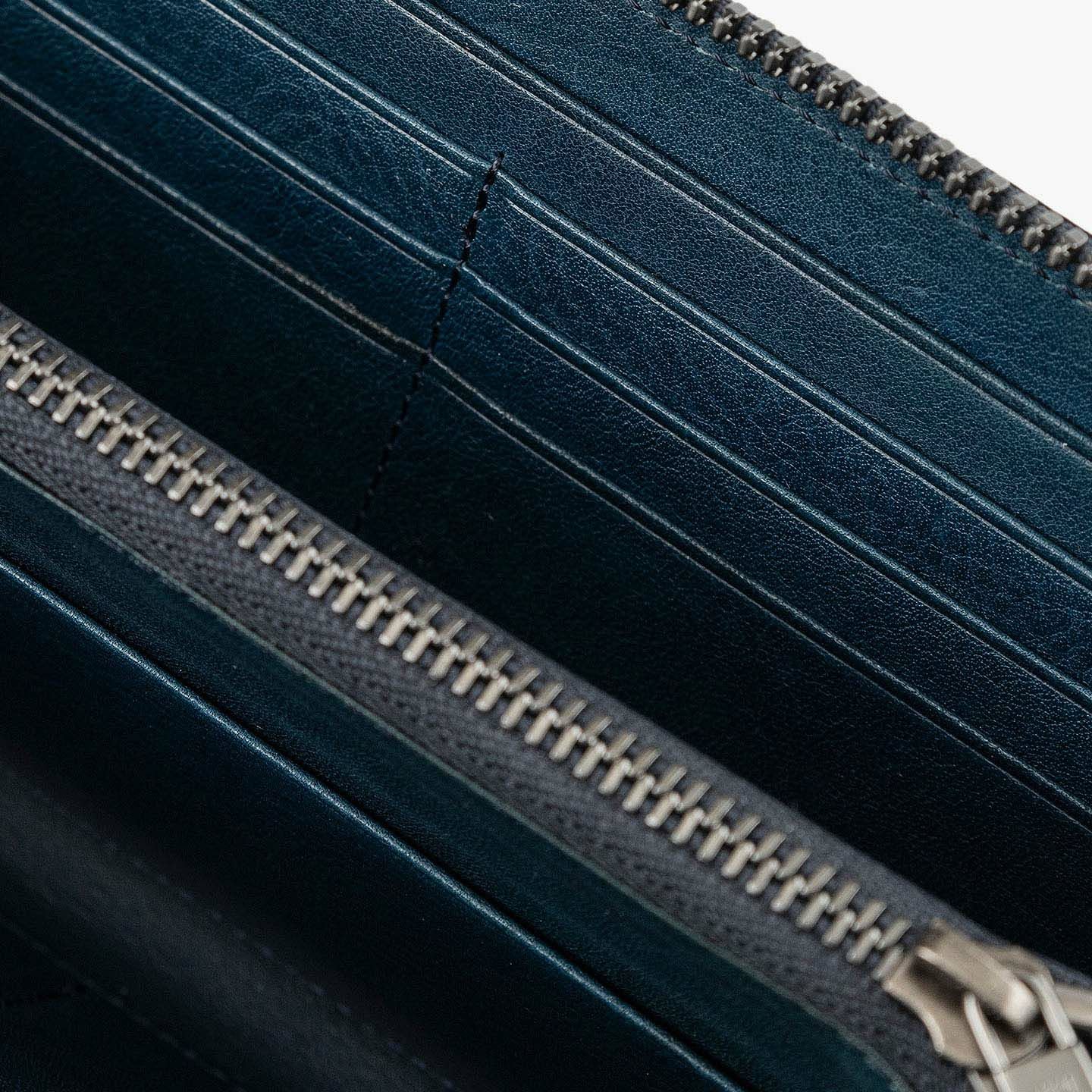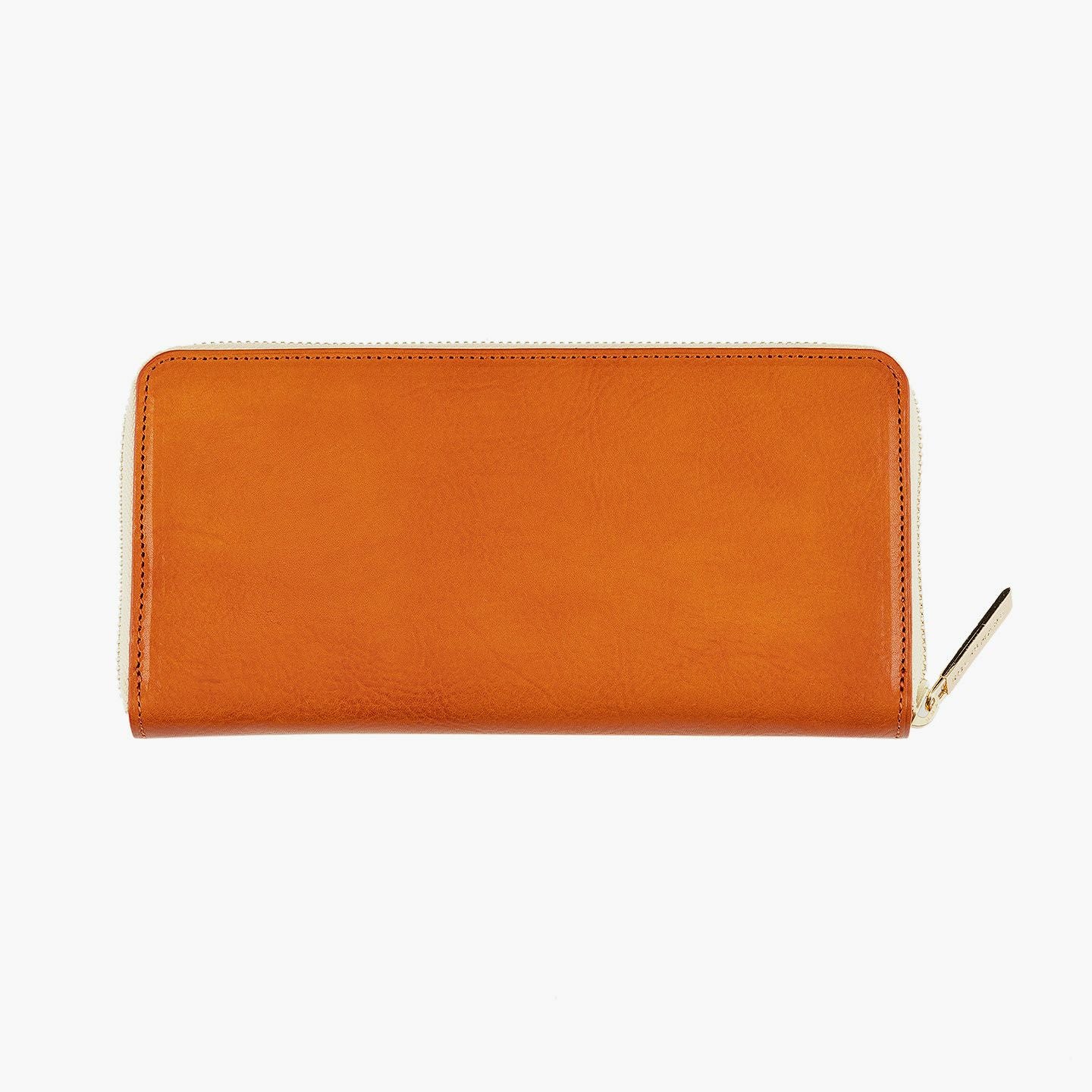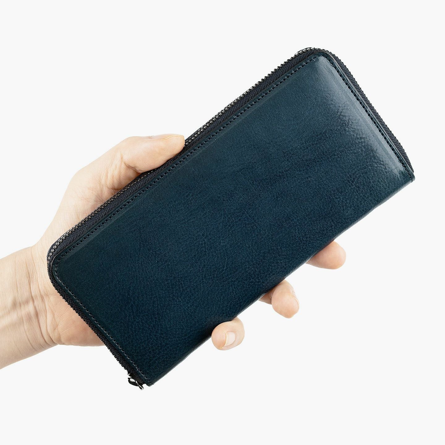 かけがえのない時間や空間へ、モノがあふれる時代のレザーアイテムとして、自然の情緒と色彩の感動を届けている、ファクトリーブランド『SOLSOMARE』のラウンドジップ長財布。深みのある落ち着いた色合いの「イタリアンショルダー」は、Orange/Navy Blueのいずれかからセレクトでき、そのカラーごとに異なる金具・ファスナーテープとの配色が洒落感を演出。丈夫で経年変化を楽しめる牛革の風合いを感じながら、大容量の収納力を併せ持つとともに、紙幣・小銭・カードなどが見やすく出し入れしやすい使い勝手の良さが、日常使いの満足感を高めてくれる。