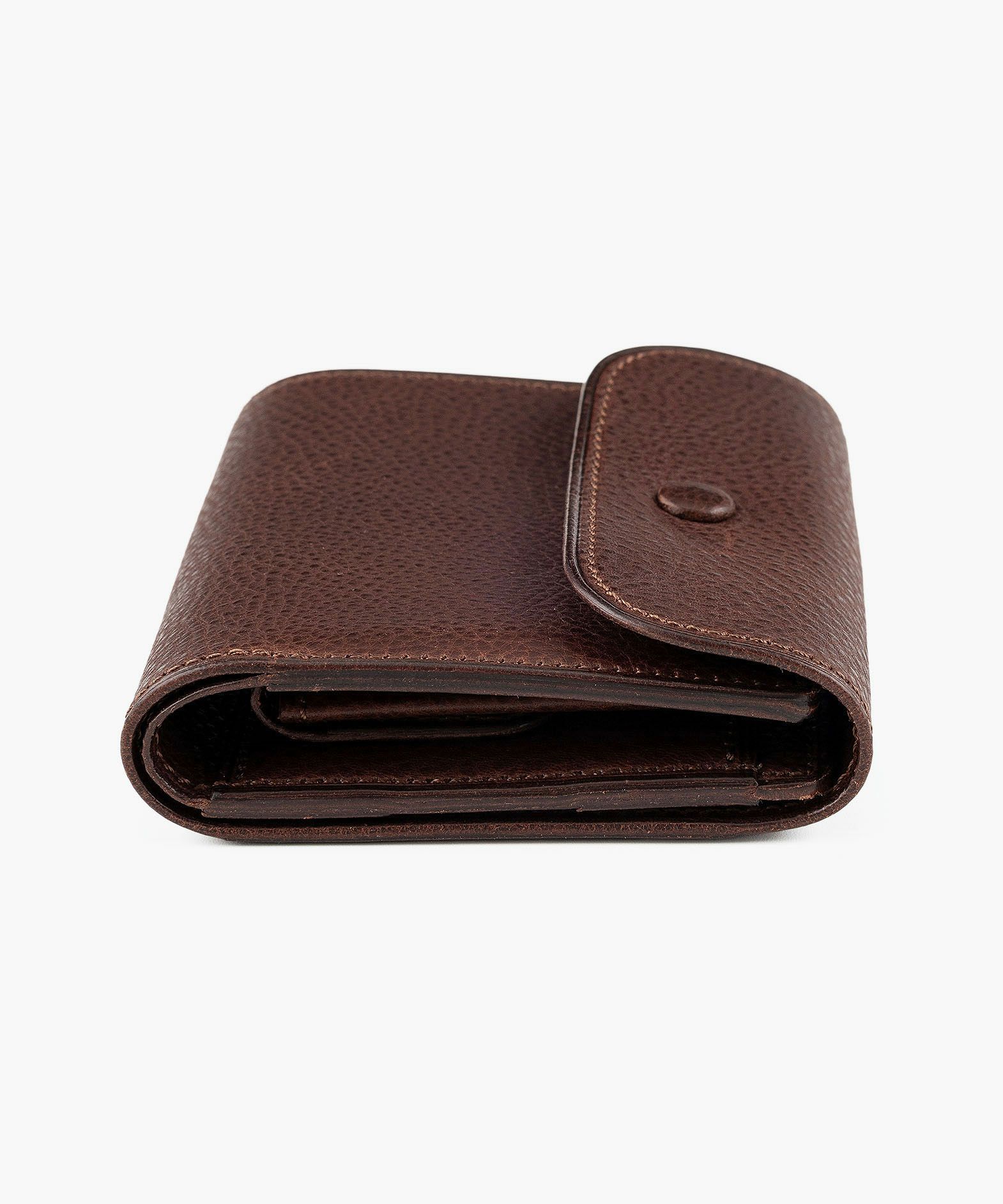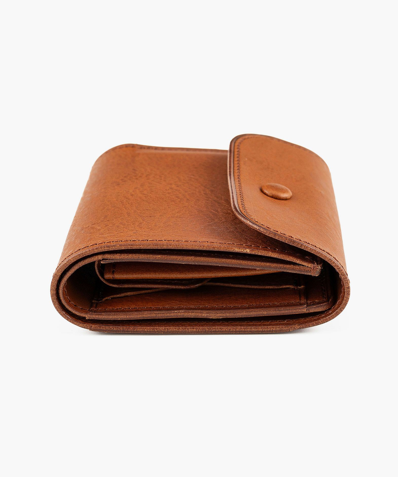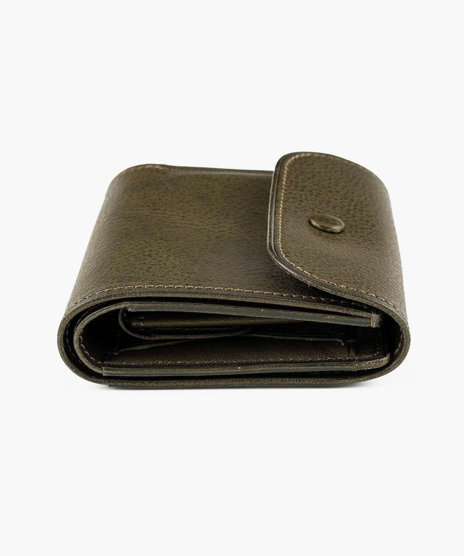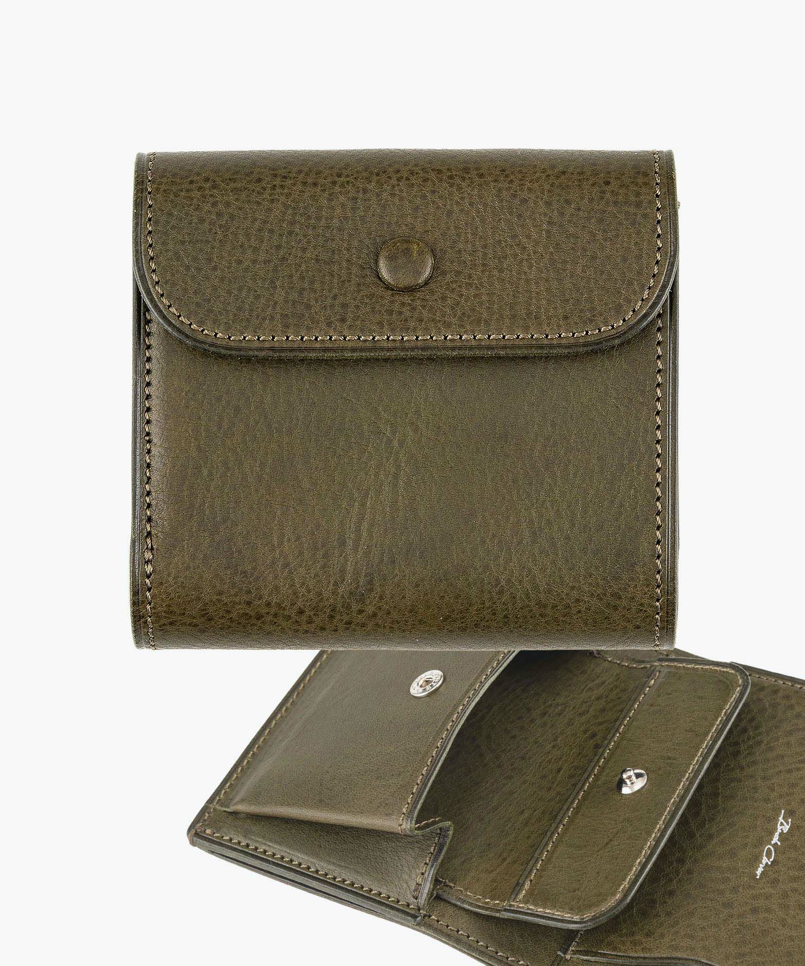 ノスタルジックな雰囲気の懐かしさと、使いやすく実用的な新しさを併せ持つ、三つ折りコンパクトウォレット“Nosta”。大き過ぎず小さ過ぎないサイズ感が、手に馴染んで扱いやすく、紙幣・小銭・カードそれぞれを出し入れしやすい機能性と、見た目以上のオールインワンの収納性も魅力。外装・内装には、古代のバケッタ製法を再現した、イタリア・バダラッシカルロ社製「ミネルバボックス」を採用し、自然なシボの風合いが、使い込むほどにツヤ感が増して、深い色合いへと育っていく経年変化を楽しむことも。くるみボタン・裏張りまで同じ高級素材であしらった総革仕立ての贅沢感と、パタパタと二段階で折り畳まれる特長的な設計が、個性的な使い心地による独自の使用感とともに、この上ない愛着感を育んでくれる。