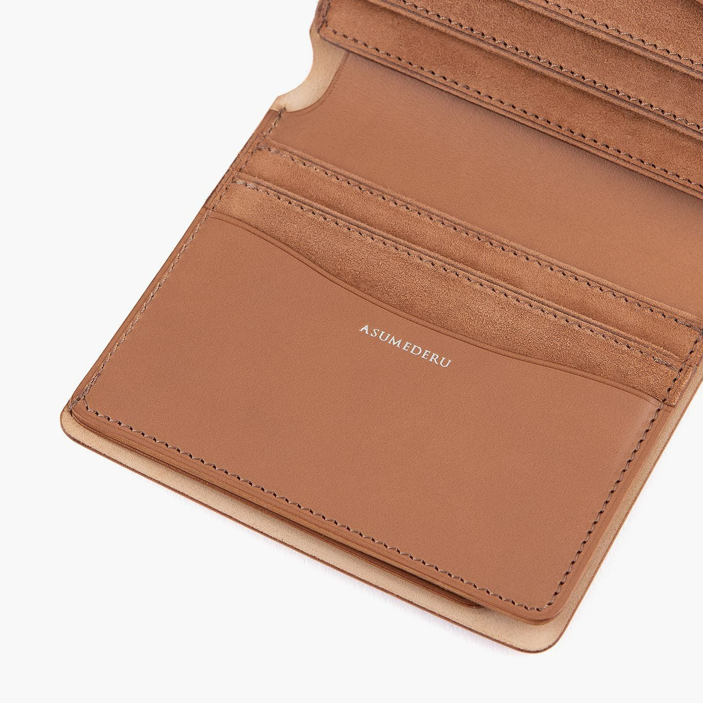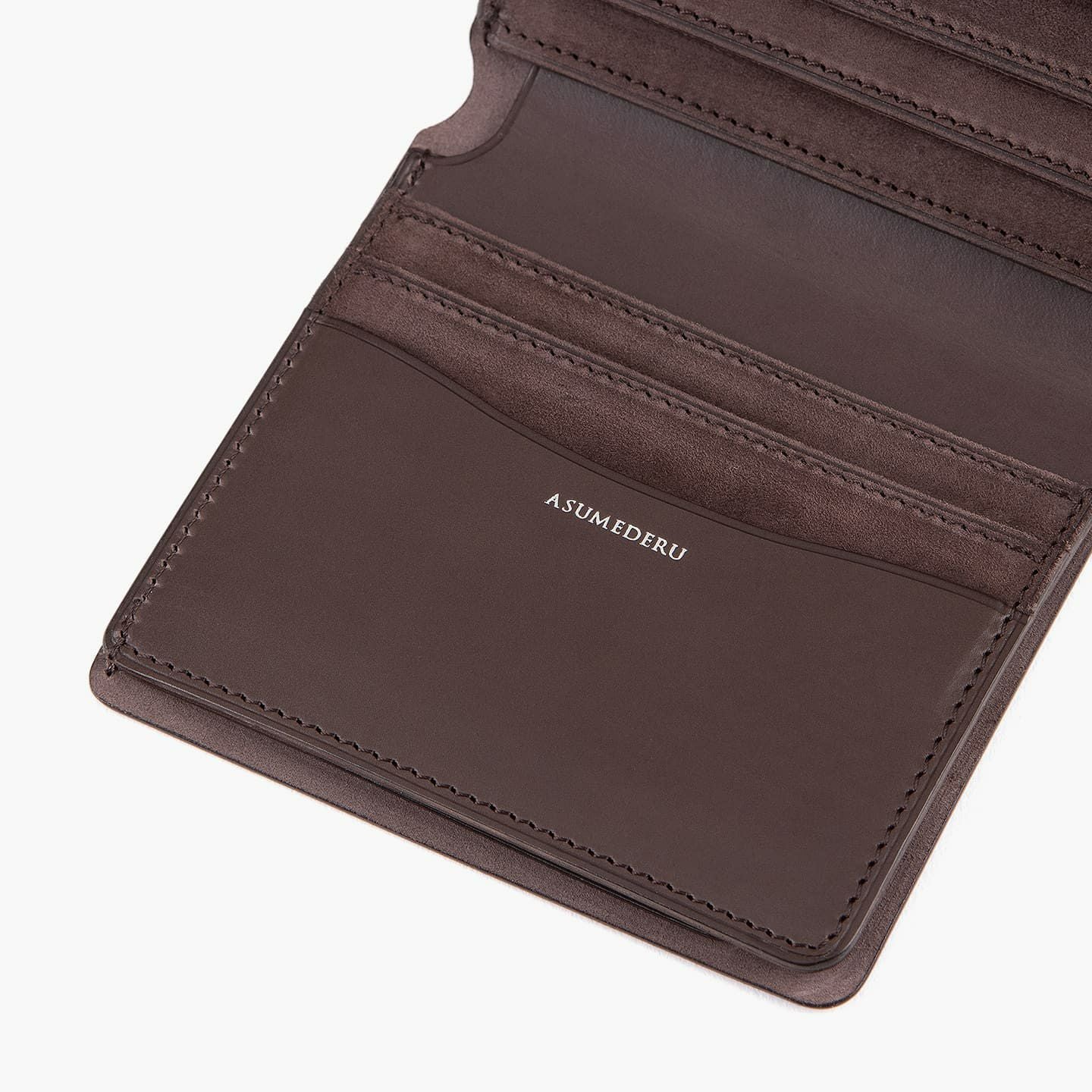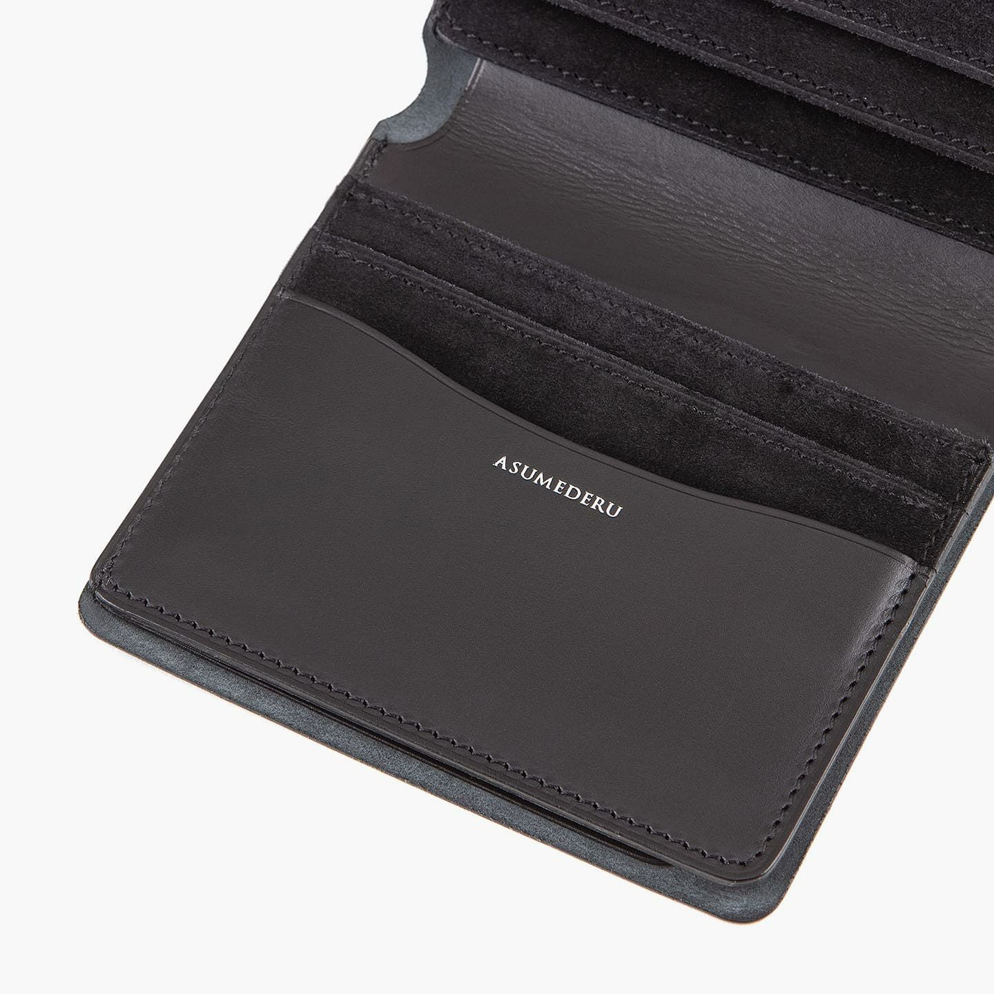 自由で独創的なアイデアを実践し、財布の常識を変えていく革製品ブランド『ASUMEDERU』の二つ折り財布(No.6)。レイヤー構造の札入れが特長的で、デザイン的にも機能的にもカード使用をメインにしたキャッシュレス時代を象徴。“キングオブレザー”である「カーフレザー」の最高級「ベビーカーフ」を贅沢に使用しながら、ユニセックスな5色をラインアップしているこだわりも、大人の感性を刺激してくれる。