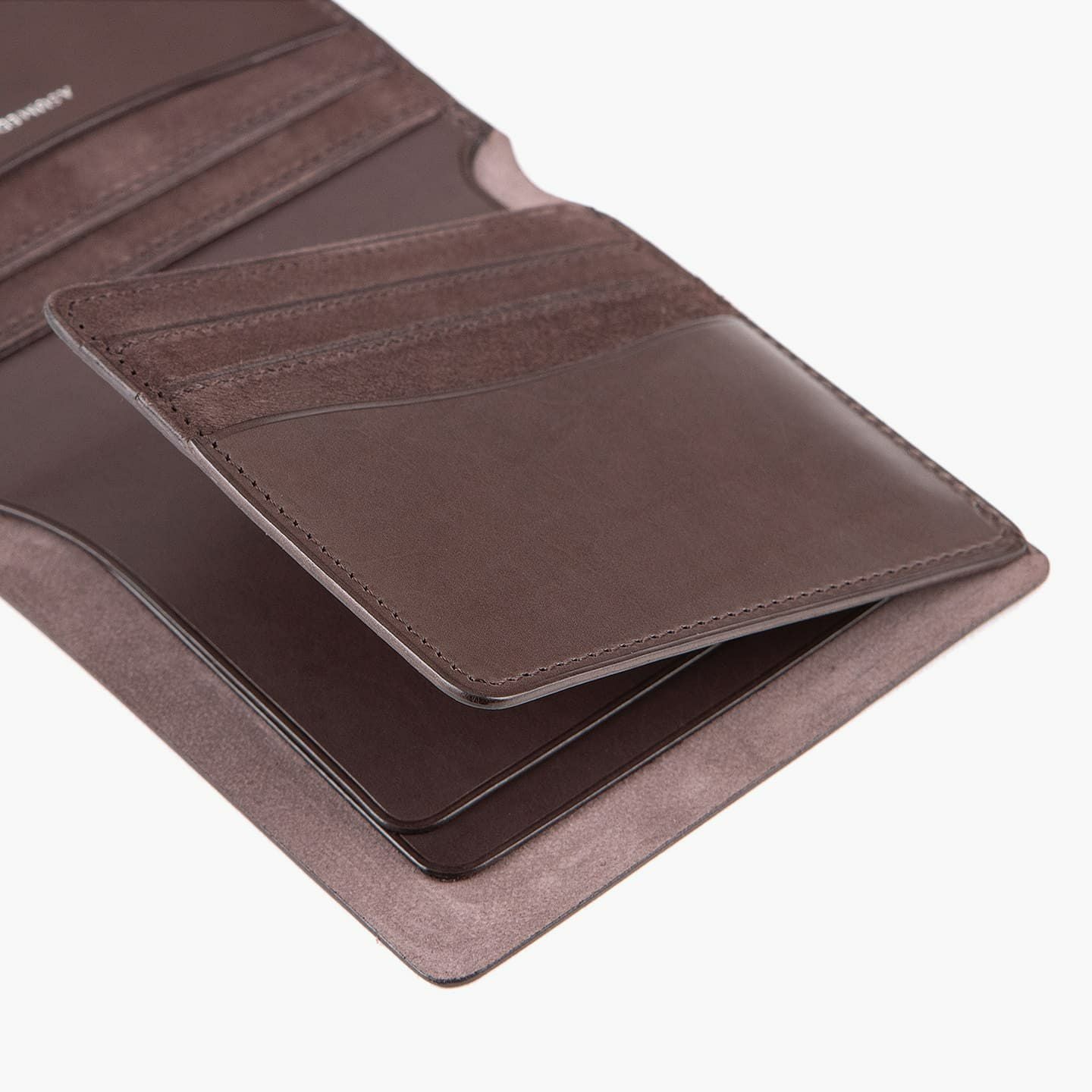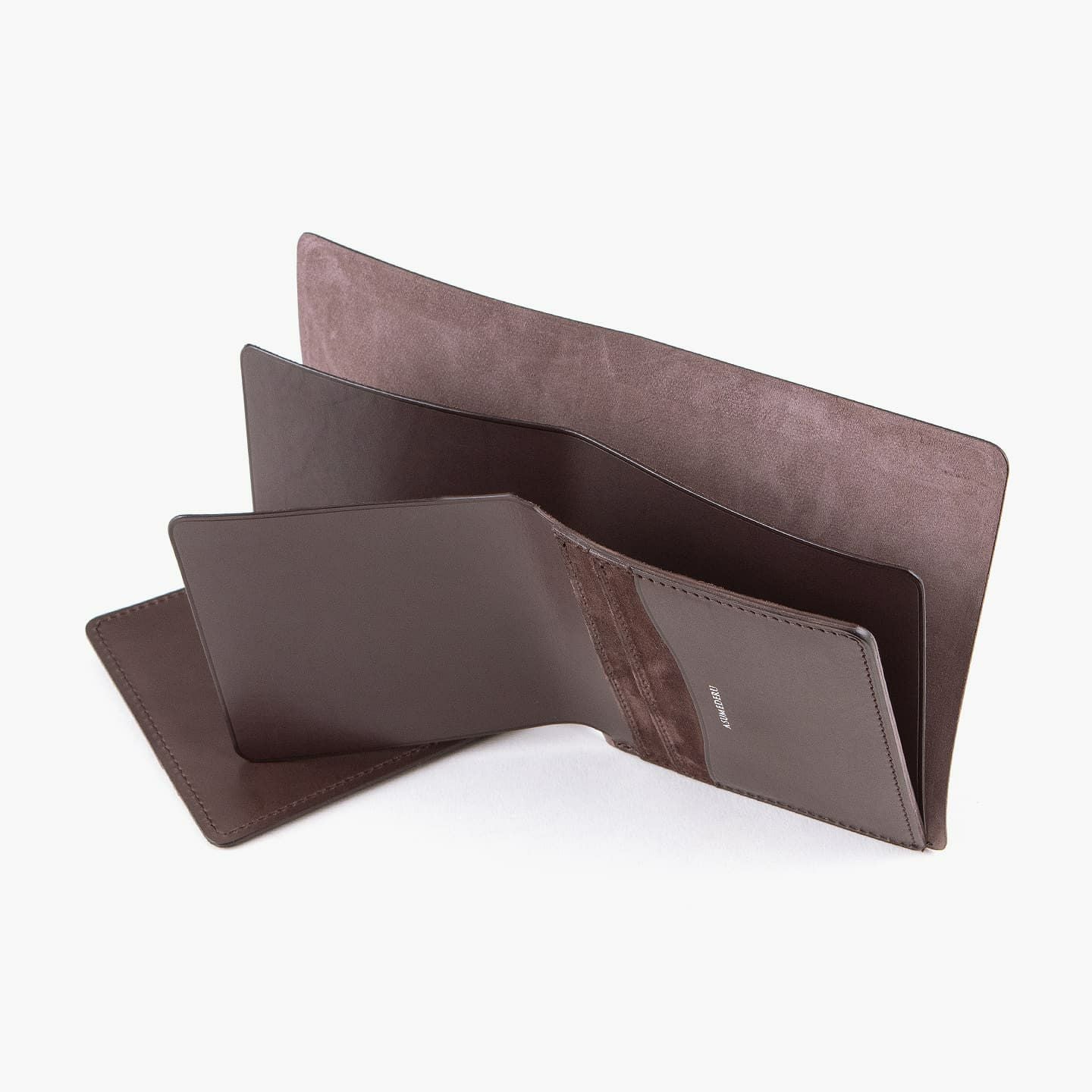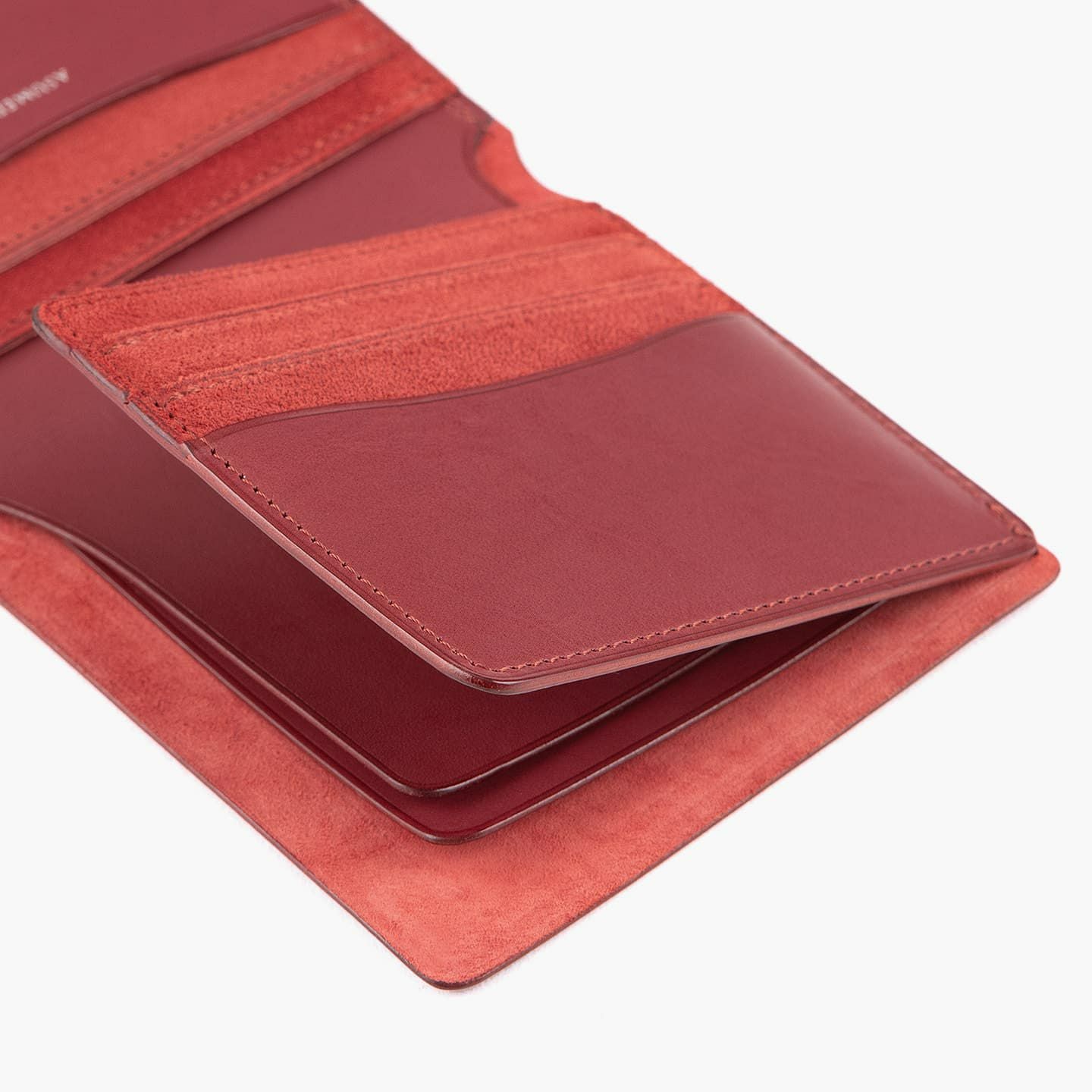 自由で独創的なアイデアを実践し、財布の常識を変えていく革製品ブランド『ASUMEDERU』の二つ折り財布(No.6)。レイヤー構造の札入れが特長的で、デザイン的にも機能的にもカード使用をメインにしたキャッシュレス時代を象徴。“キングオブレザー”である「カーフレザー」の最高級「ベビーカーフ」を贅沢に使用しながら、ユニセックスな5色をラインアップしているこだわりも、大人の感性を刺激してくれる。