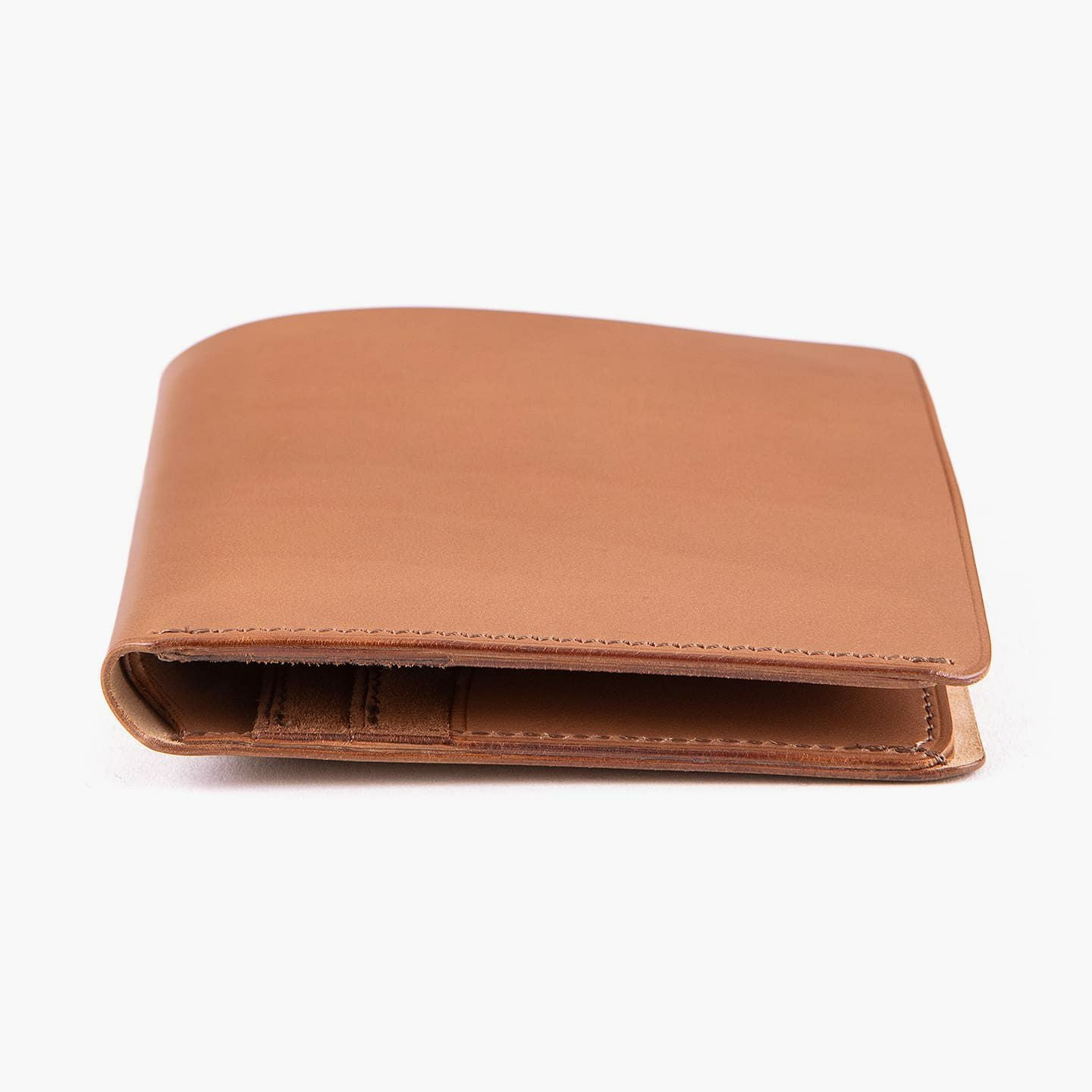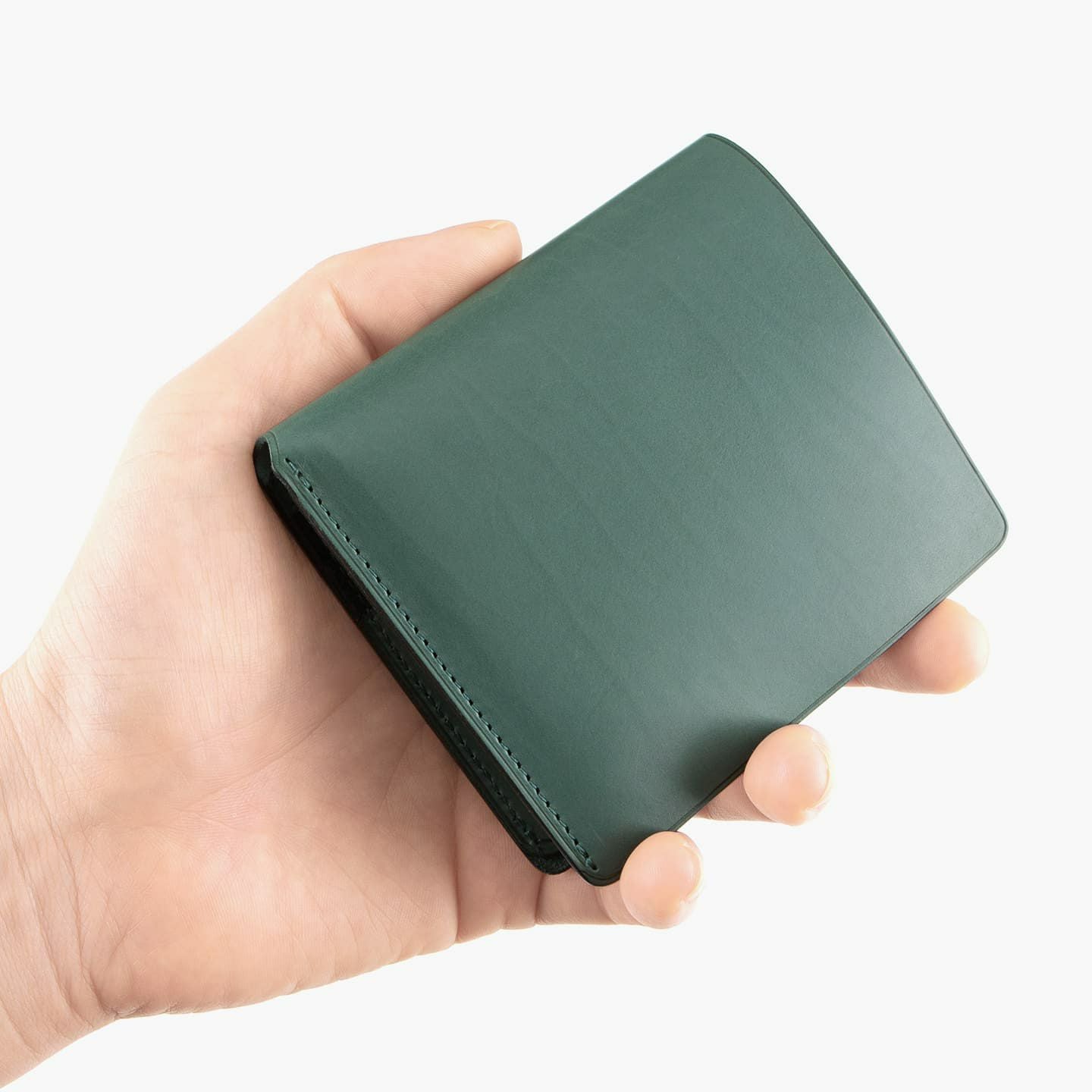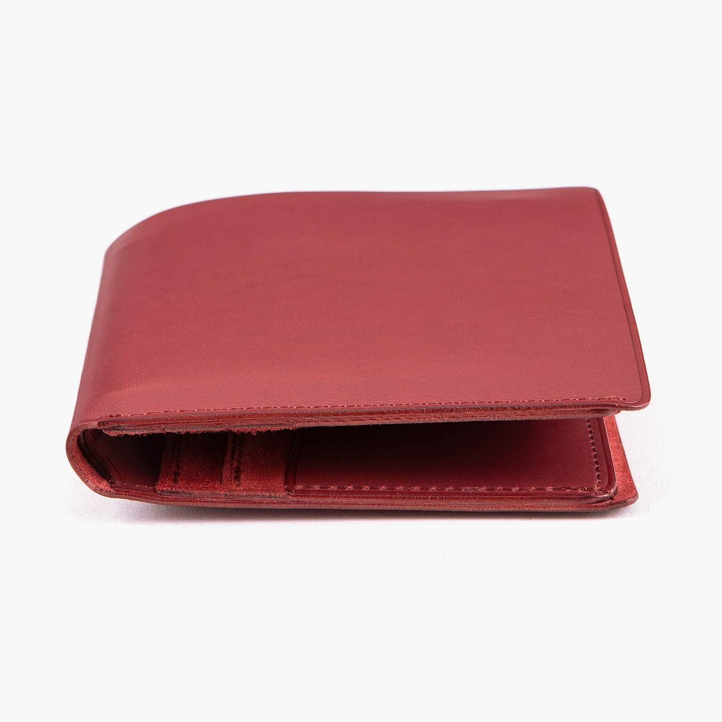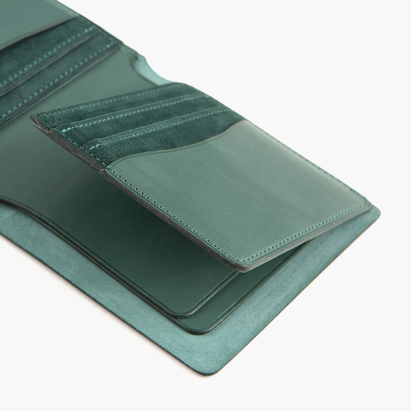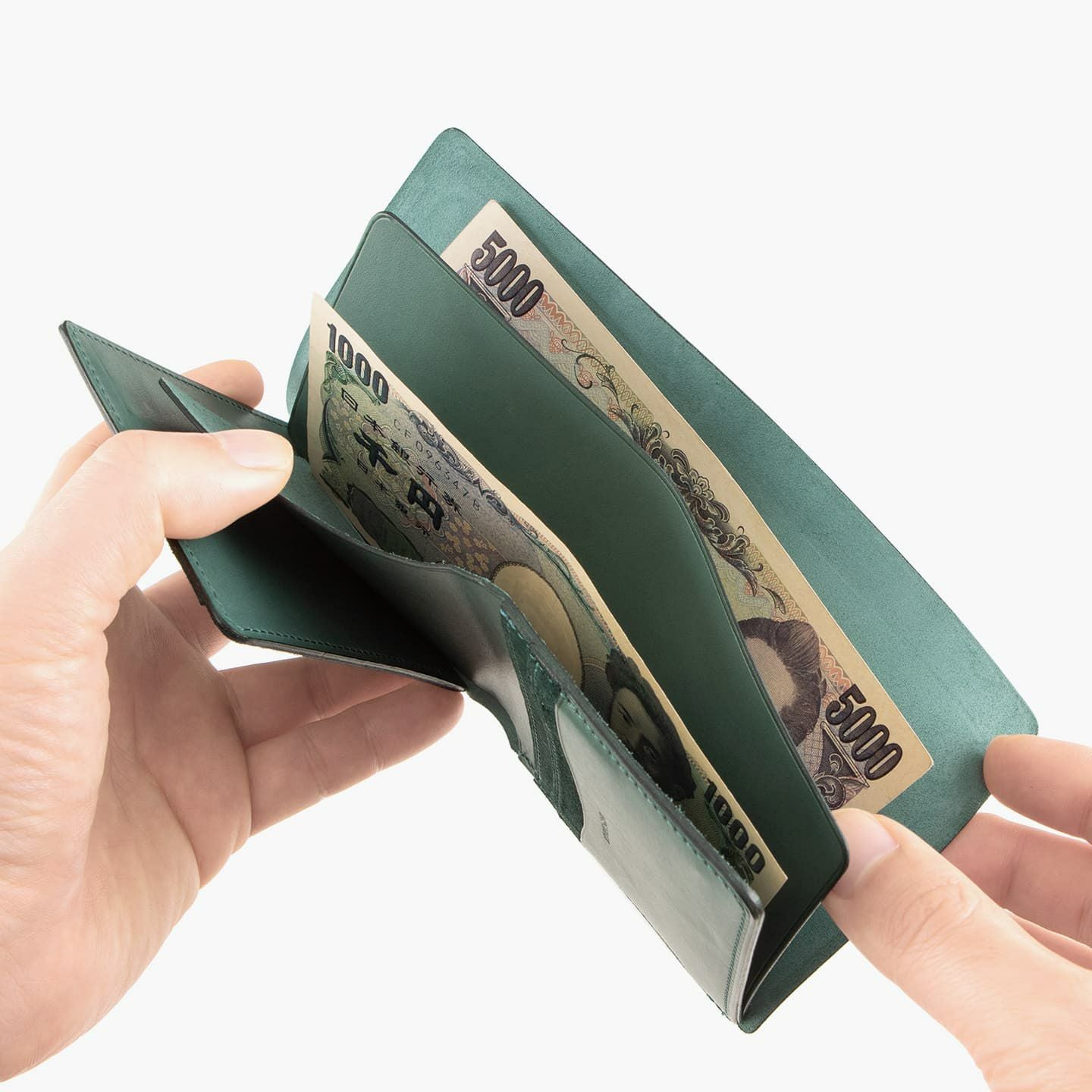縫製は、カードポケット周りにのみ施され、札入れ周りは厚くしない工夫から排除。また、カードポケットと札入れのスペースは、「ベビーカーフ」の床面を使用することで、デザインに立体感を与えるとともに、カードや紙幣が滑り落ちにくい摩擦性も兼ね備えています。
