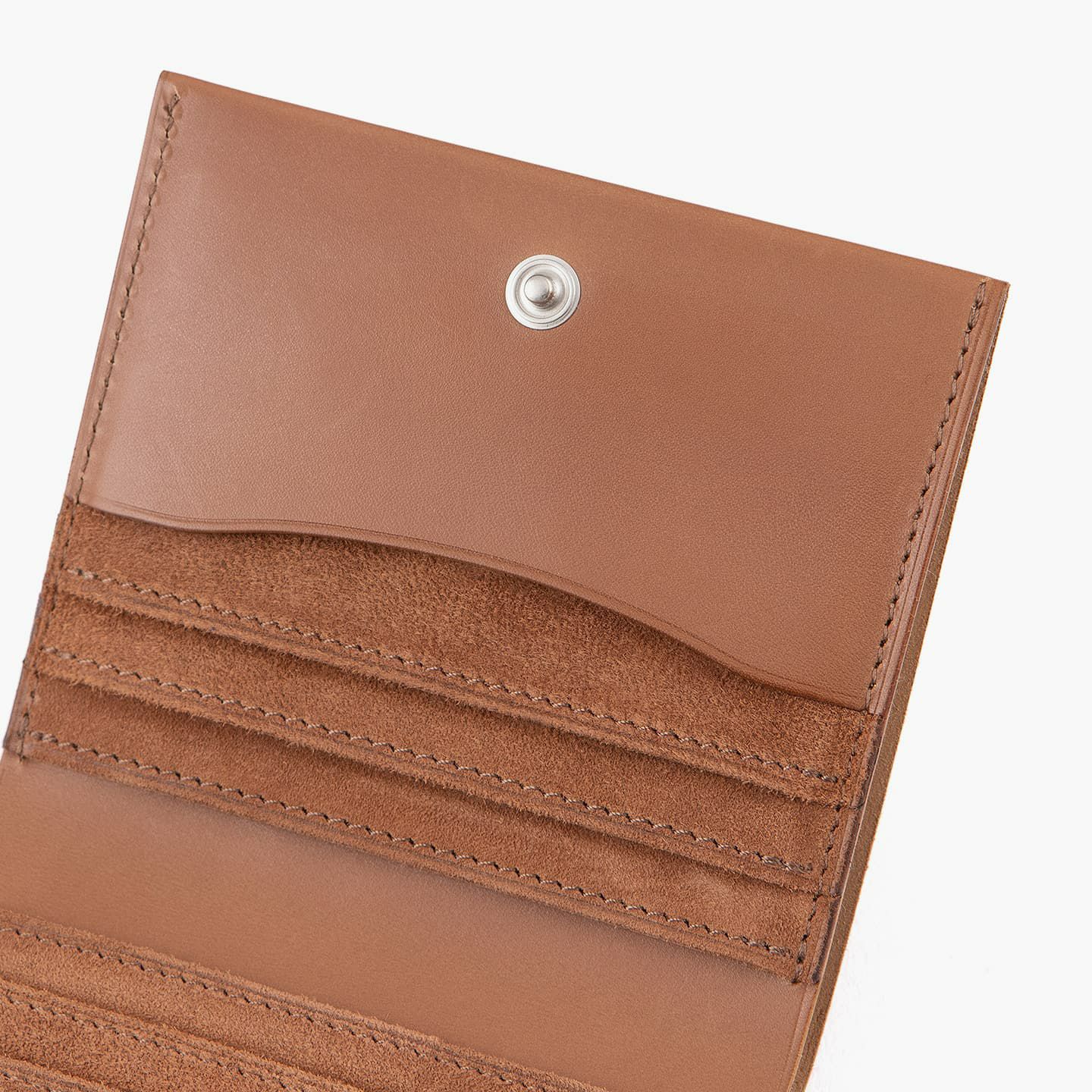 斜塔で有名なイタリア・トスカーナ州ピサにあり、上質なカーフで知られている名門タンナー・インカス社のベビーカーフ「パルマ」。生後3ヶ月以内の仔牛を原皮としているので、1頭あたり約70〜90デシメートルしか取ることができない希少な皮革で、床面のきめ細かさが特長です。伝統のベジタブルタンニン鞣しと、コガシと呼ばれるバーニッシュ仕上げにより、美しい光沢があるツヤやかな表面と、しっとりとしなやかで柔らかい質感が魅力。天然素材ならではの血スジやトラ模様があり、均一に塗り固められていない色味のムラ感と透明感も漂わせています。ヨーロッパの高級メゾンの靴素材として長年選ばれ続けているカーフレザーで、使い込むことと次第に立体感が現れ、この革が本来備えている独特の美しさを醸成。さらに、クリームなどで定期的に磨くことで、自分好みのツヤ感に仕上げることができます。