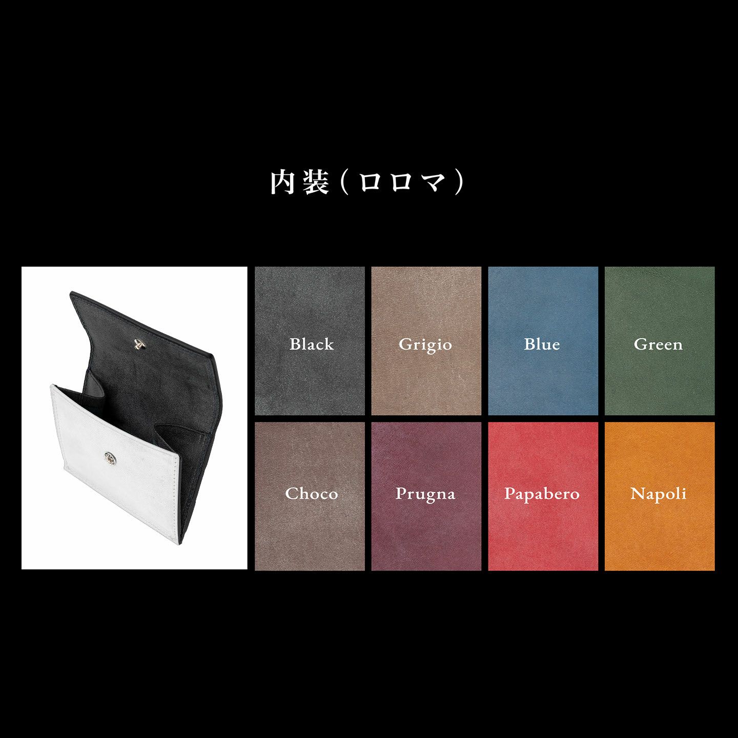 外装と内装に採用されている「ロロマ」は、それぞれ8色から選べるMLS限定のセレクトオーダーを実現。糸色も同じ8カラーをラインナップしているので、すべてを同じカラーで統一させることも、バイカラーやステッチを差し色にすることも、好みに合わせたカラーリングに仕立てられます。また、裏地(豚革)は4色から、ホックはSilver/Goldのいずれから、ロゴ刻印は有り・無しから、それぞれのセレクトが可能。自分用としてカラーセレクトできるのはもちろん、プレゼント用として贈る相手に似合うカラーコーディネートをしてあげることも楽しめるアイテムです。
