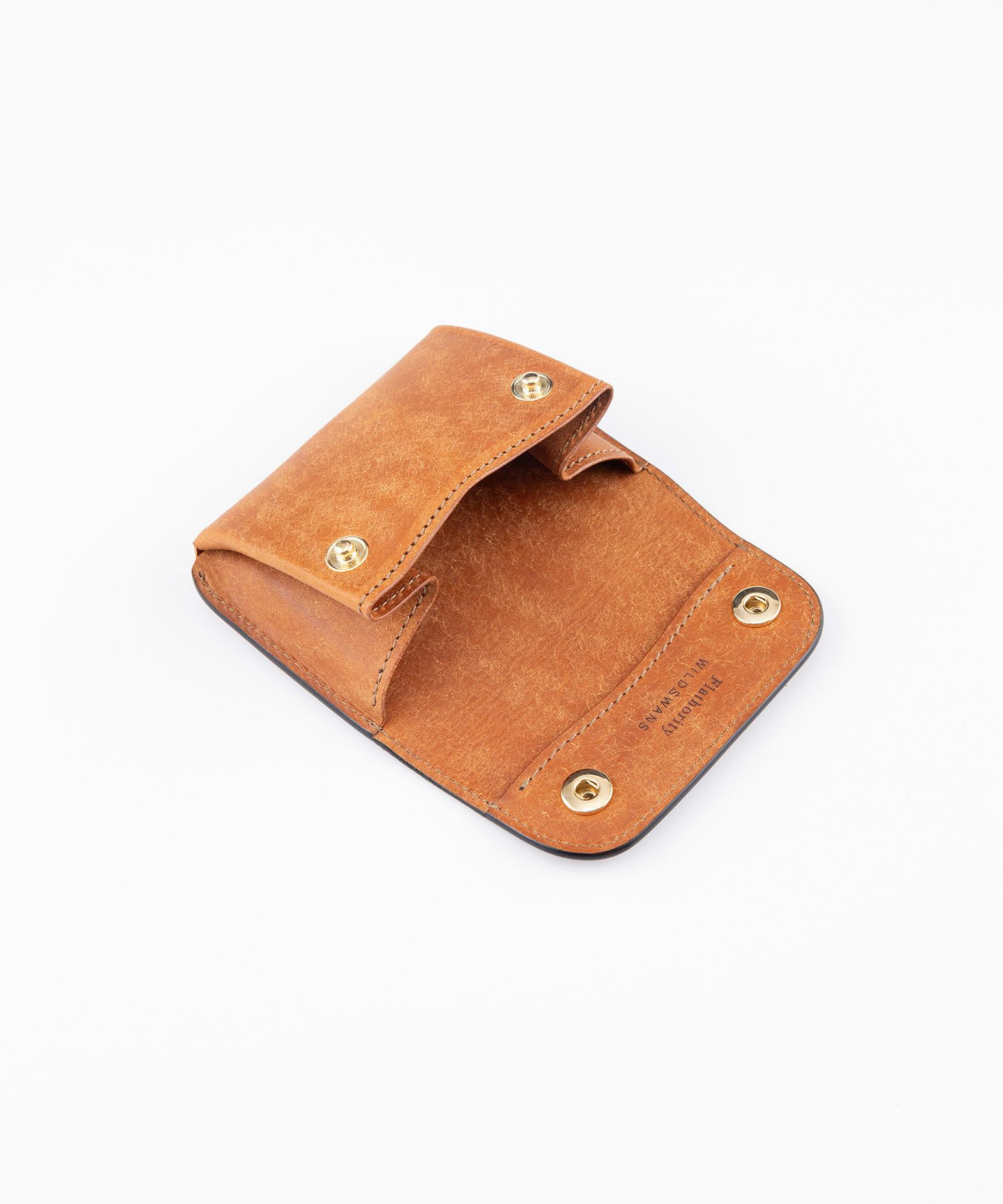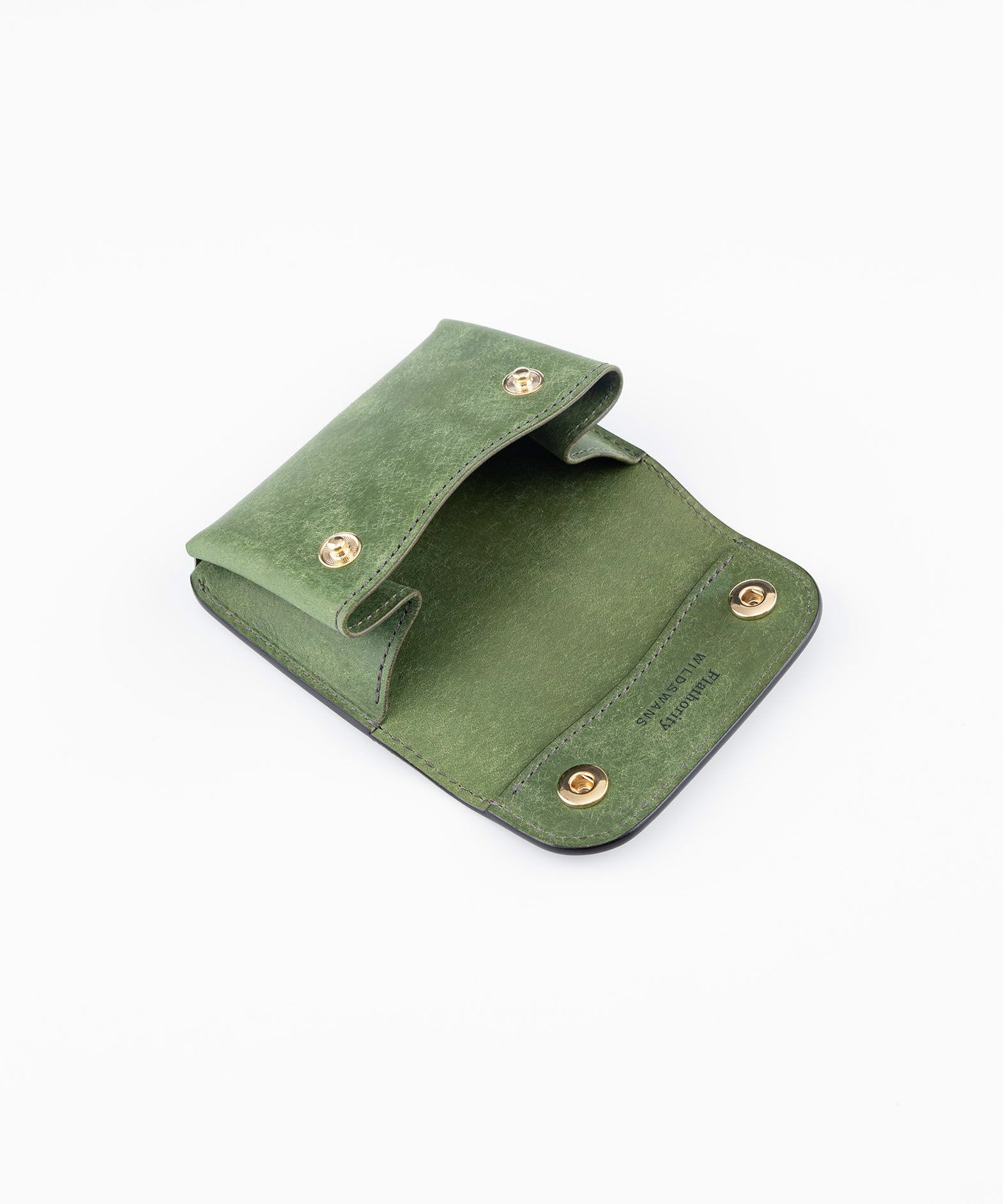 FlathorityとWILD SWANSの手によって生まれたフラップ付きコンパクトケースは、ミニマルな見た目ながら、日常使いにちょうどいい実用性を備えたレザーアイテムです。メインのフラップポケットにはカードや折り畳んだ紙幣、小銭をまとめて収納でき、背面にはカード専用ポケットを装備。極小財布としても活躍するつくりで、他のアイテムと組み合わせても無理のないサイズ感に仕上げられています。素材には、イタリア・バダラッシィ・カルロ社による高級レザー「プエブロ」を採用。和紙のように起毛された独特の風合いは使い始めはざらつきがありながら、使い込むうちにオイルが馴染み、自然な艶と深みが現れる豊かな経年変化を楽しめます。Gray、Green、Ortensia、Camelの4色展開。飾りすぎず、それでいて革の魅力を確かに感じさせてくれる佇まいは、コンパクトであることを忘れるような存在感を放ちます。毎日の所作の中で静かに寄り添う、手のひらサイズの機能美です。