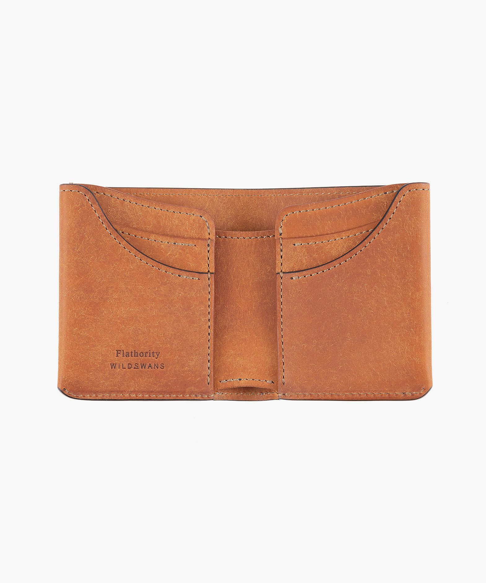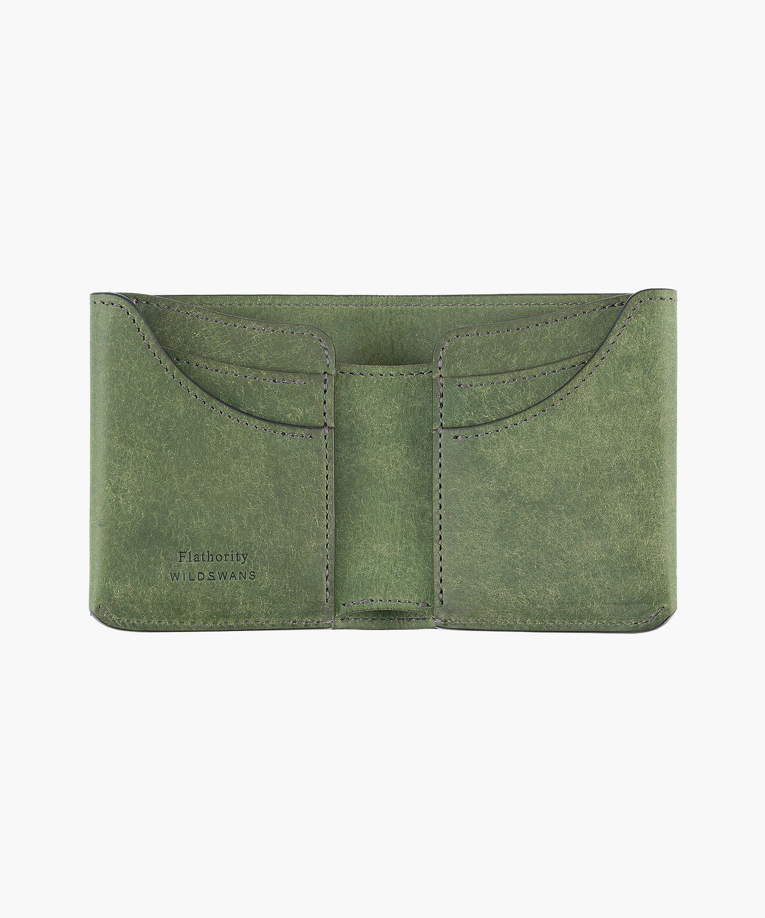 FlathorityとWILD SWANSの技術と哲学を融合させたホールドウォレットは、コンパクトながら美しさと機能性を併せ持つ二つ折り財布。外装には一枚革を贅沢に用い、手にすっと馴染む丸みのあるフォルムと、開いた瞬間に現れる左右対称の美しいカーブを描くカードポケットが印象的です。札入れ、4つのカードポケット、2ヶ所のあおりポケットを備えながらも厚みを抑えた設計で、日常使いに十分な収納力を確保しつつ、ジャケットやパンツのポケットにもスマートに収まるサイズ感を実現。無駄を削ぎ落とした設計に加え、繊細な漉きと一針一針丁寧に施された縫製、そしてWILD SWANSの代名詞でもある美しいコバの仕上がりが、革小物としての完成度を高めています。素材には、イタリア・バダラッシィ・カルロ社のプエブロレザーを使用。起毛された表面は使い込むほどにオイルが馴染み、しっとりとした艶と味わい深い表情へと変化。Gray、Green、Ortensia、Camelの4色展開で、革の風合いと発色の良さを最大限に引き出したカラーラインナップ。使うほどに深まる魅力と、手にするたびに感じる上質さが、日々の所作を豊かにしてくれる一品です。