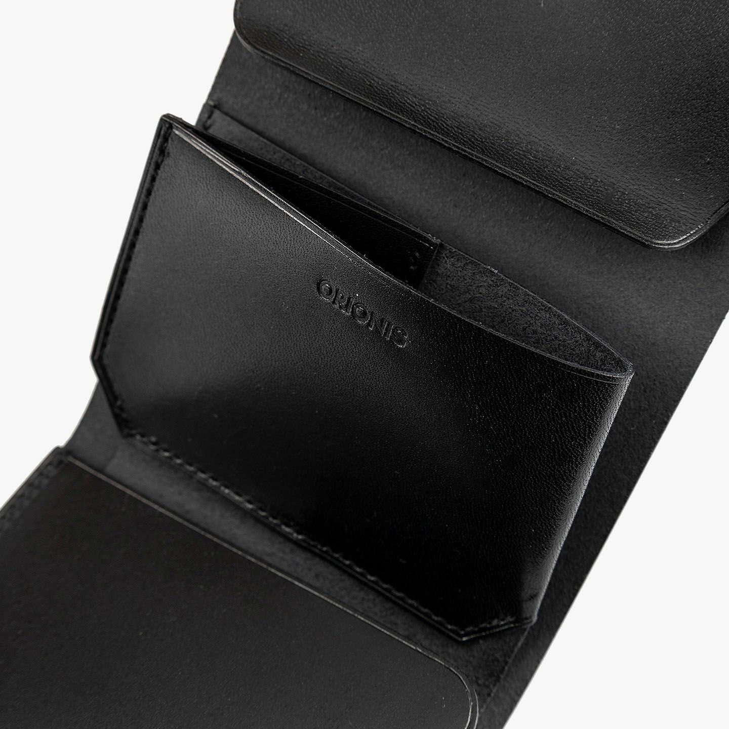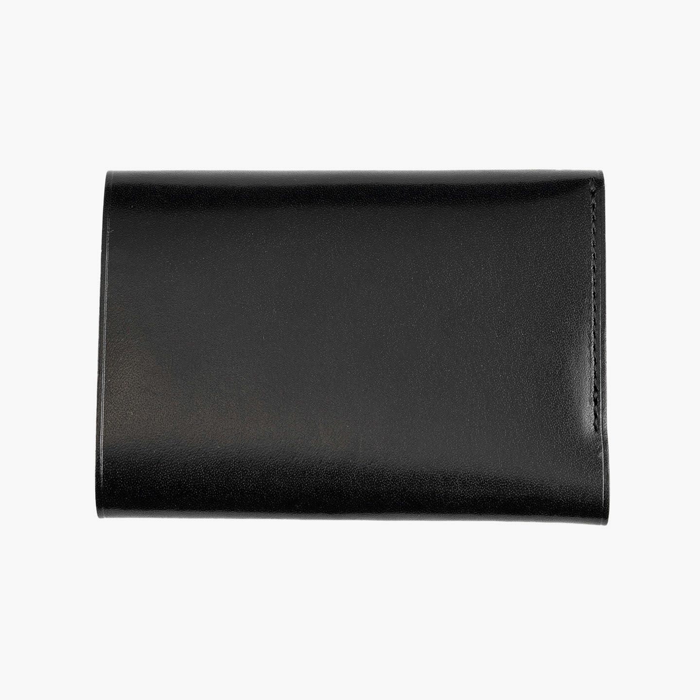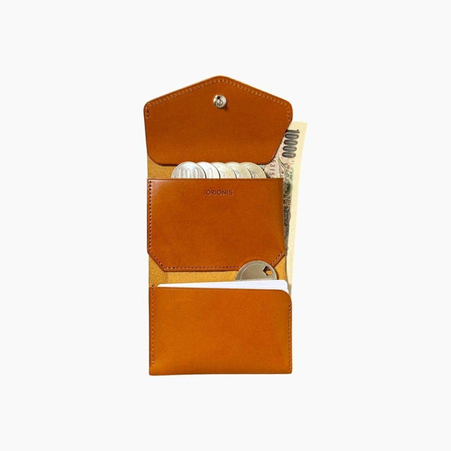 カードくらいのサイズ感ながら、使い込むと10枚ほどまで収納できる大容量カードスペースを備えた、コンパクト3つ折りウォレット。少ない枚数でもタイトに収まるフレキシブルさも特長で、間口が広くて出し入れしやすいコインケースや、紙幣を折らずに収納できる札スペース、カードスペース裏のキーポケットも含め、すべて縦にレイアウトすることで、ミニ財布の向きを変えずに使いこなせるのも魅力。イタリア・M.P.G.社製「イングラサットLUX」のツヤ感を引き立てる、発色の良いBlack/Camelからセレクトでき、内装の革タブに同ブランドのネックストラップ(4種・別売)を装着すれば、ファッションの一部のように演出させてくれる。