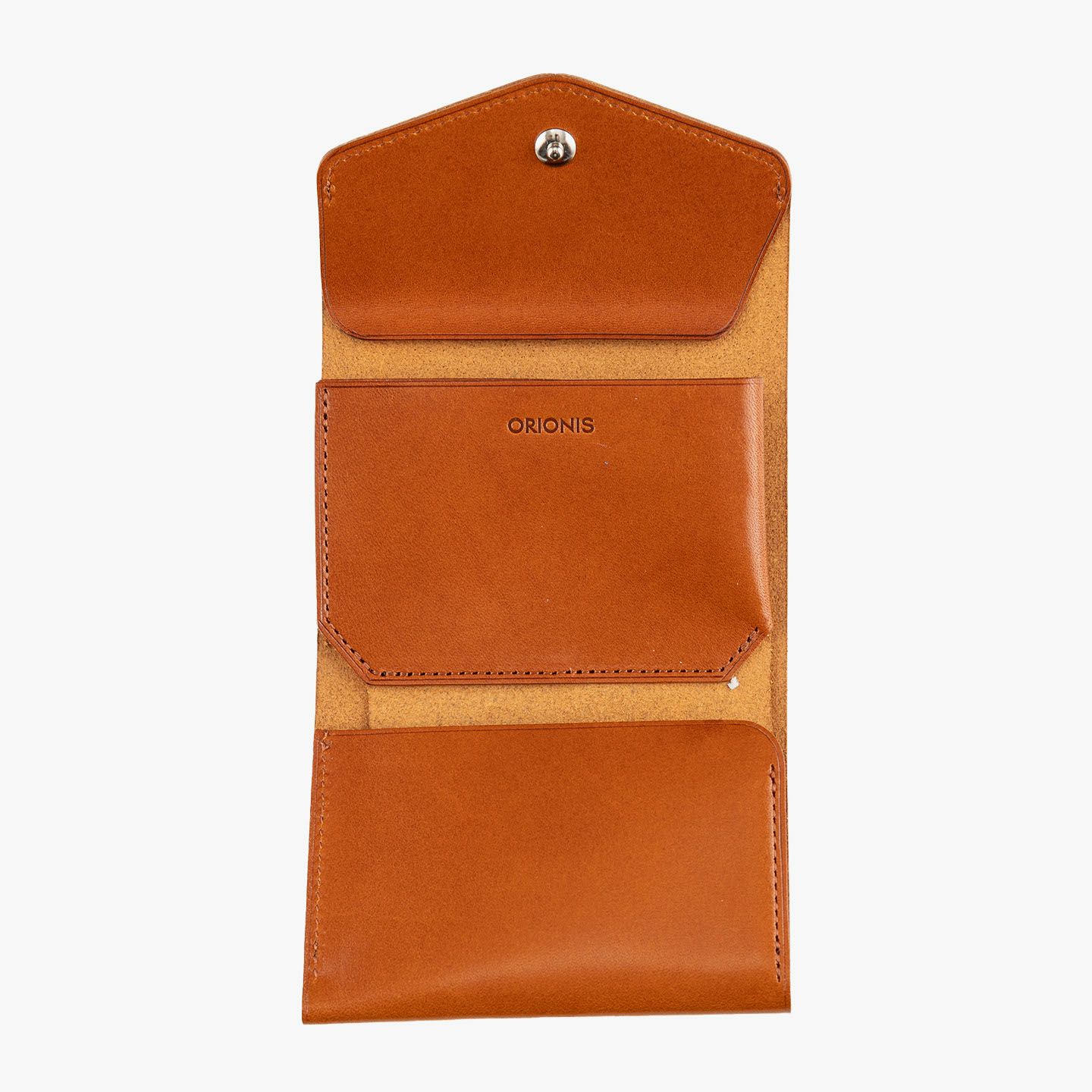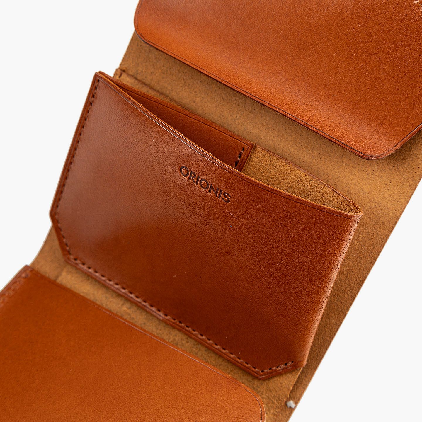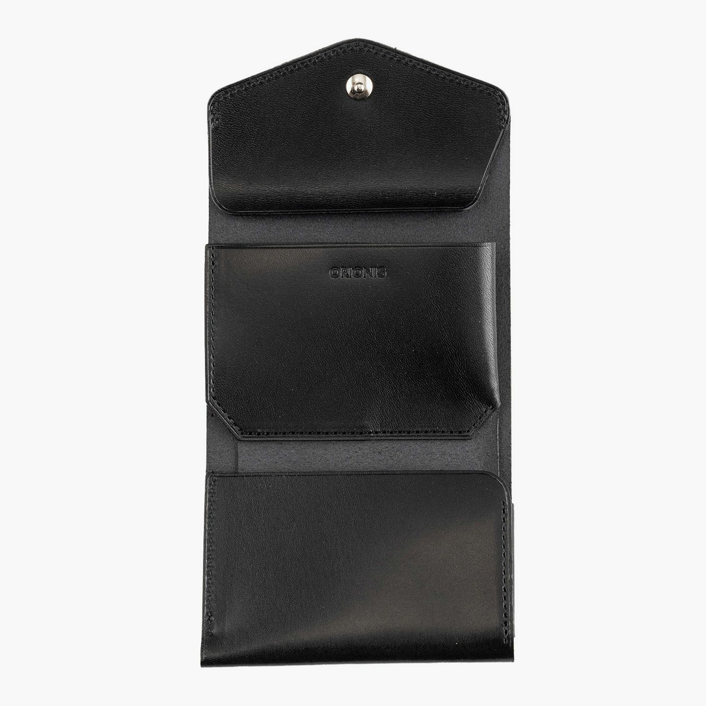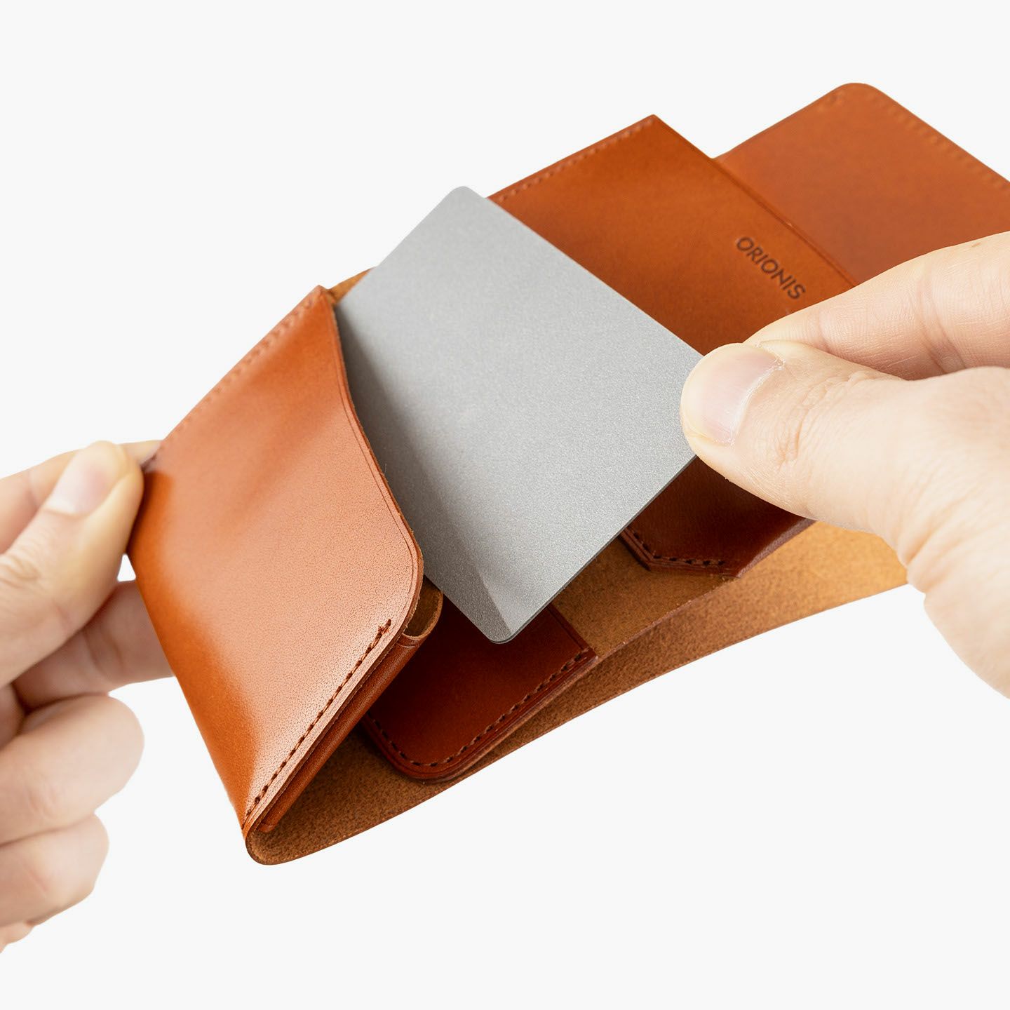 カードくらいのサイズ感ながら、使い込むと10枚ほどまで収納できる大容量カードスペースを備えた、コンパクト3つ折りウォレット。少ない枚数でもタイトに収まるフレキシブルさも特長で、間口が広くて出し入れしやすいコインケースや、紙幣を折らずに収納できる札スペース、カードスペース裏のキーポケットも含め、すべて縦にレイアウトすることで、ミニ財布の向きを変えずに使いこなせるのも魅力。イタリア・M.P.G.社製「イングラサットLUX」のツヤ感を引き立てる、発色の良いBlack/Camelからセレクトでき、内装の革タブに同ブランドのネックストラップ(4種・別売)を装着すれば、ファッションの一部のように演出させてくれる。