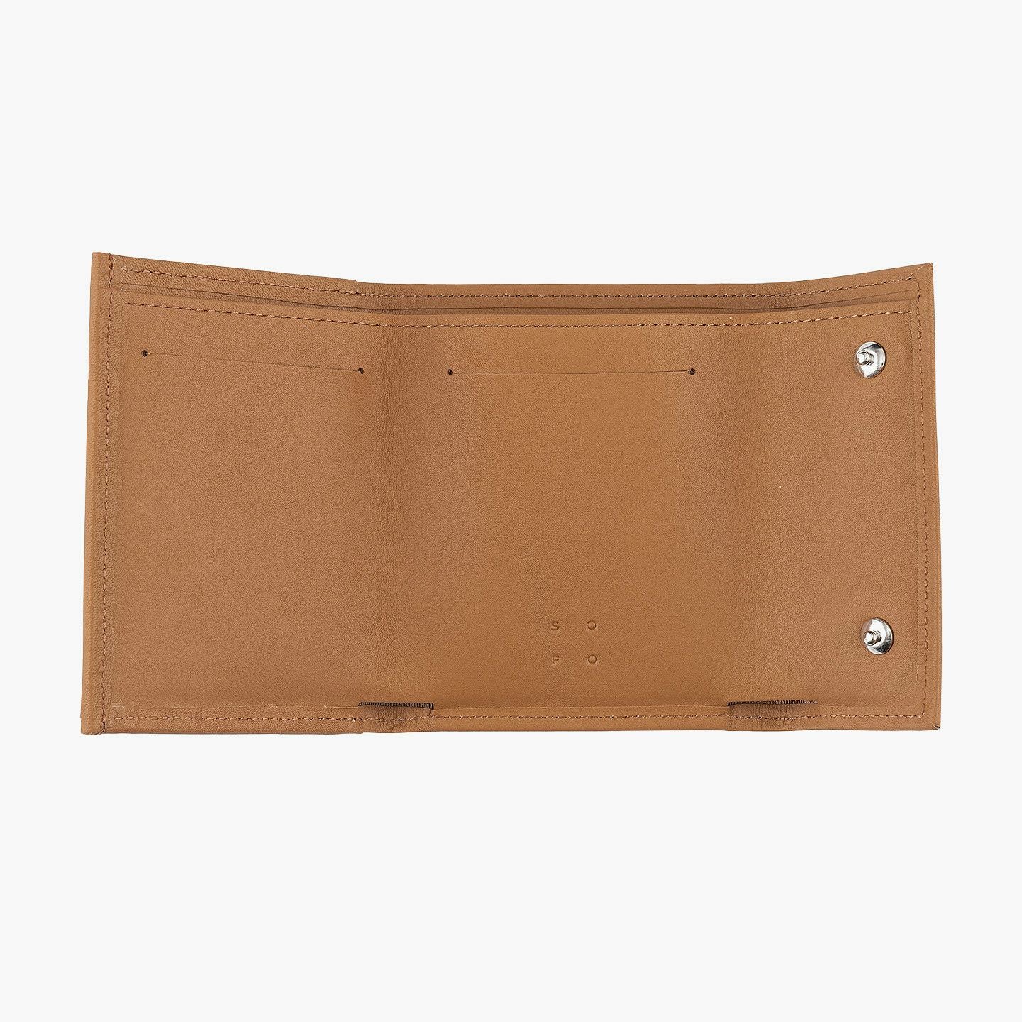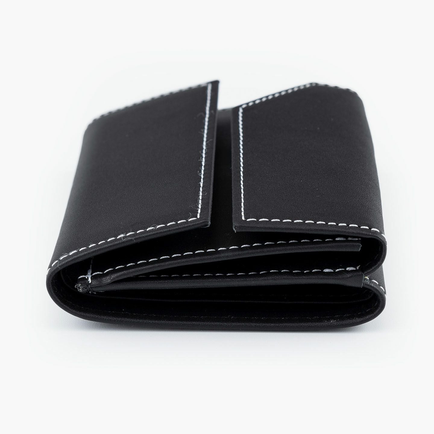 独自のデザイン性を取り入れながら、現代のトレンドを未来のスタンダードとして届けている、ユニークなファクトリーブランド『SOPO』のミニウォレット。手触りが良く滑らかな質感の最高級カーフ「ツェルマット」に映える白ステッチが、変則的な三つ折りを象徴するアシンメトリーデザインを際立たせながら、洗練されたスタイリッシュさを演出。角を落としているサイドを開けると、コインポケットとその内部にカードポケット1つ、角が落ちていな逆サイドを開けると、札入れとそれを挟むようにカードポケット2つずつ(計4つ)を備え、視覚的な利便性とともに収納力も叶えてくれている。
