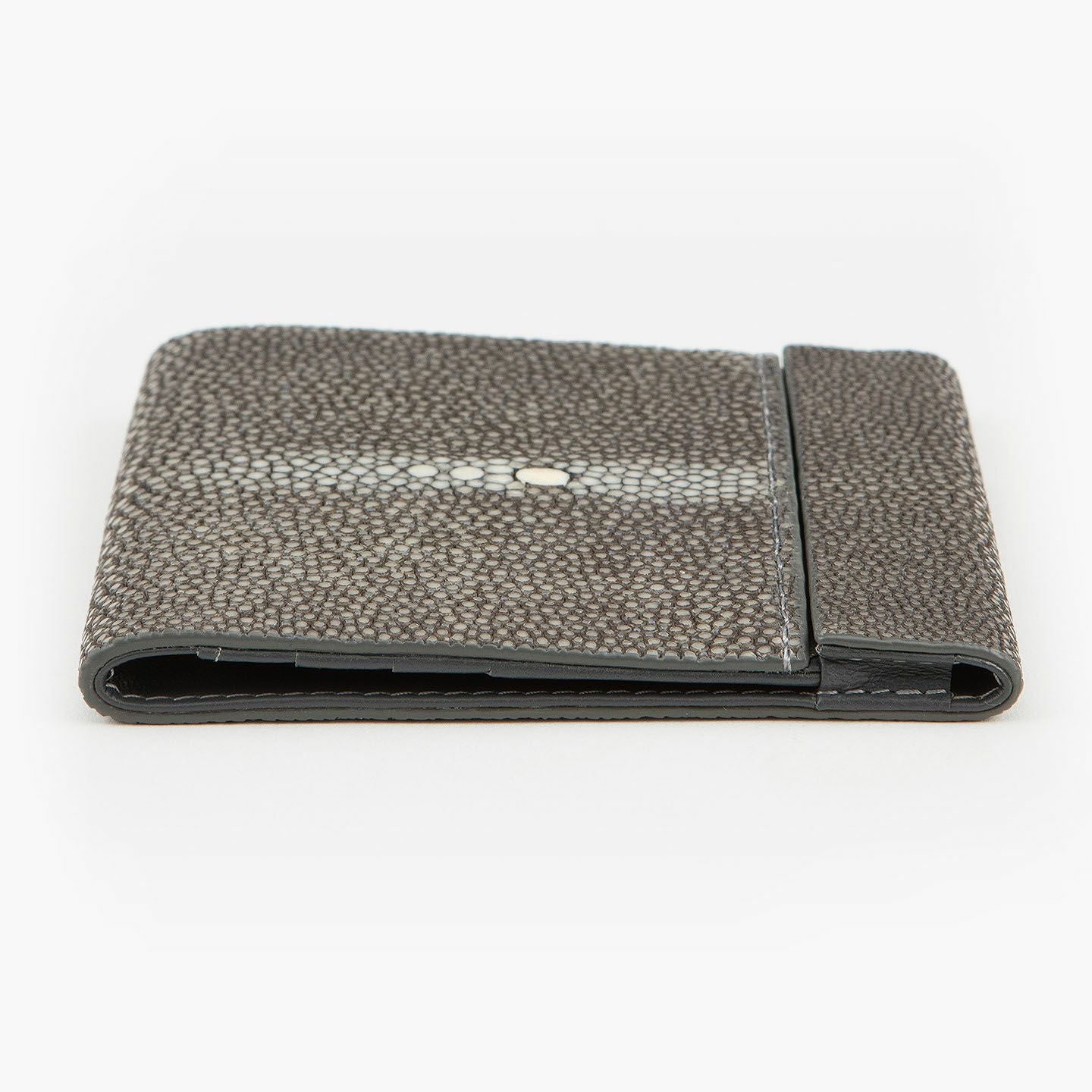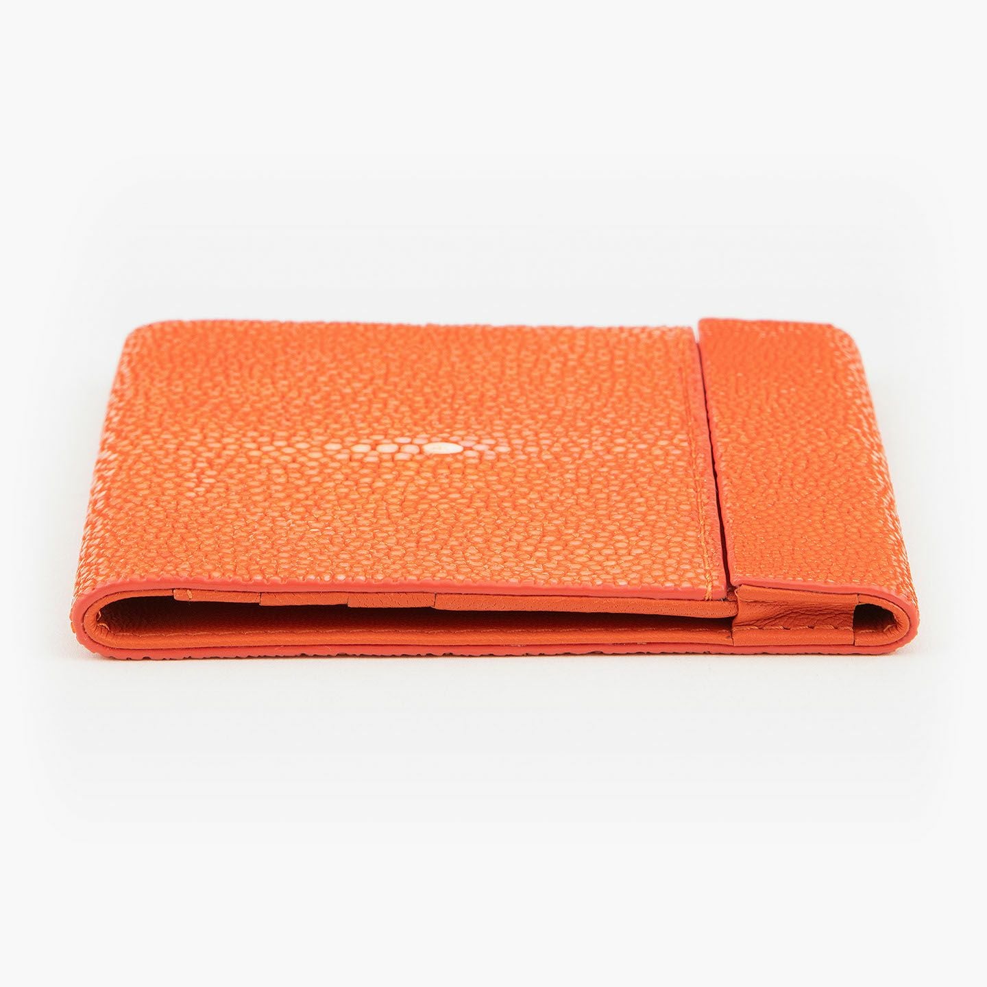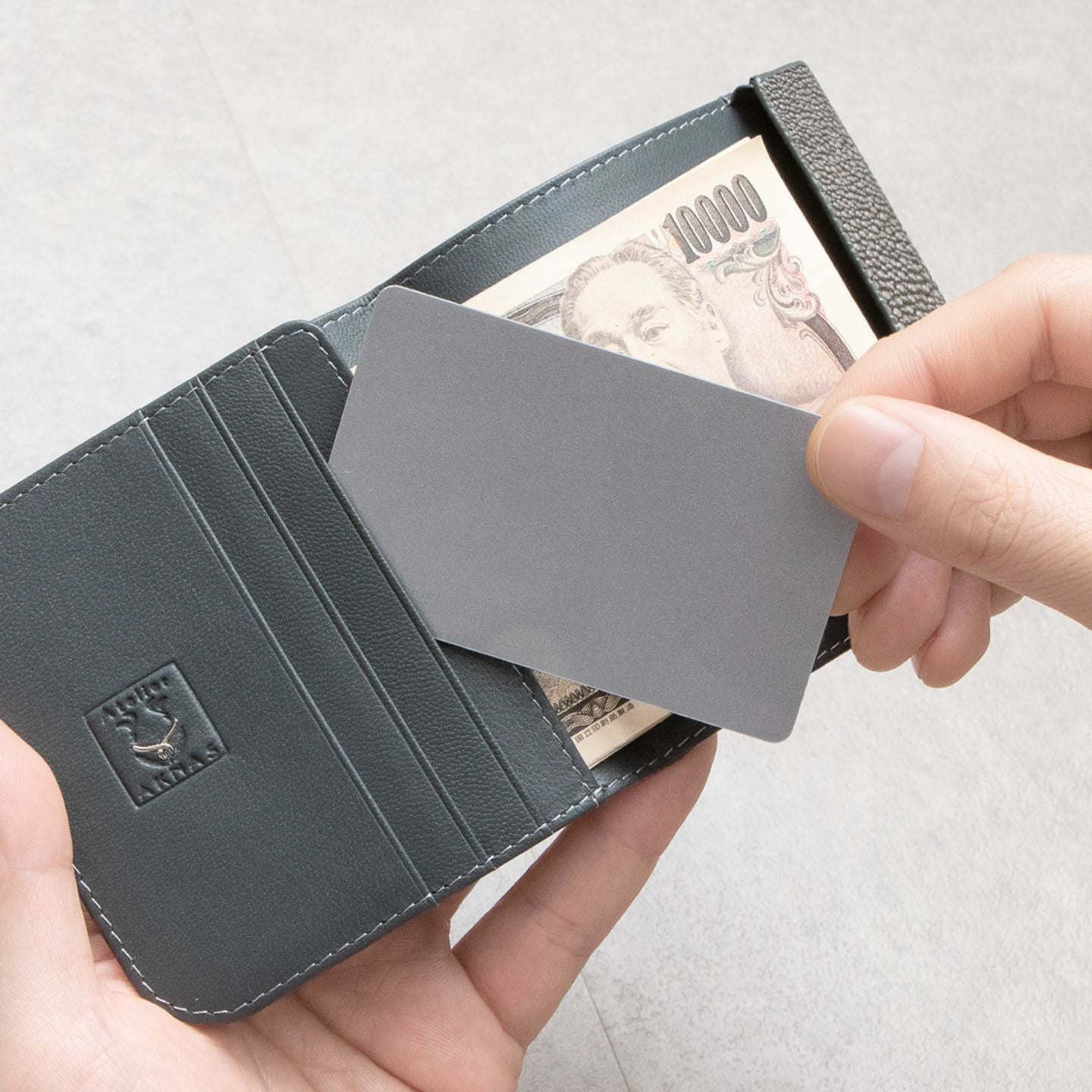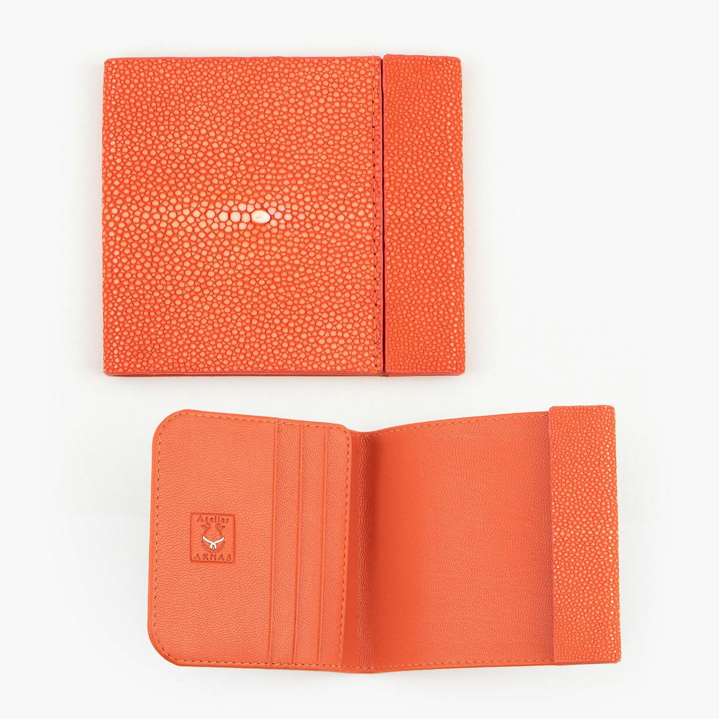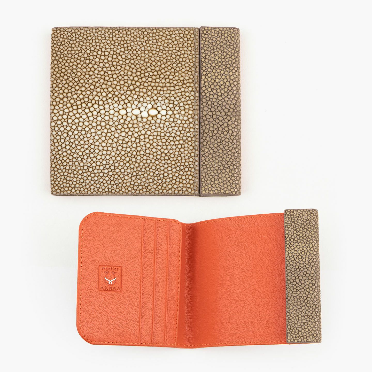使いやすく永く愛されるフレンチならではの美しいデザインとともに、革製品としての最高のパフォーマンスへと導いているブランド『Atelier AKNAS』のスリムコンパクトウォレット。アカエイの小さな鱗模様で魅せる、ガラスビーズを散りばめたように美しい海の宝石「ガルーシャ」が、この上ない高級感を外装として輝かせながら、唯一無二の魅惑的な味わいを創出。その佇まいを印象づけているシンプルな意匠は、ボタンなどの金具パーツを使わずに、フラットに閉じる独自設計のカブセにより実現。カラフルで豊富なカラーバリエーションをラインナップし、いまの時代性に相応しいジェンダーレスなアイテムとして魅力を高めてくれる。