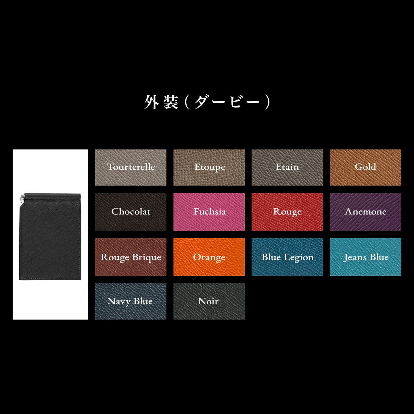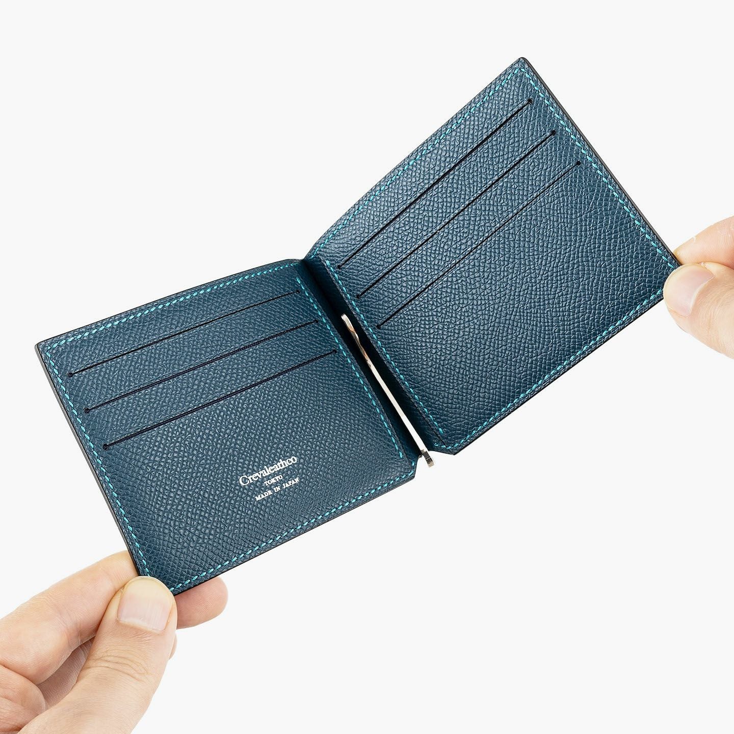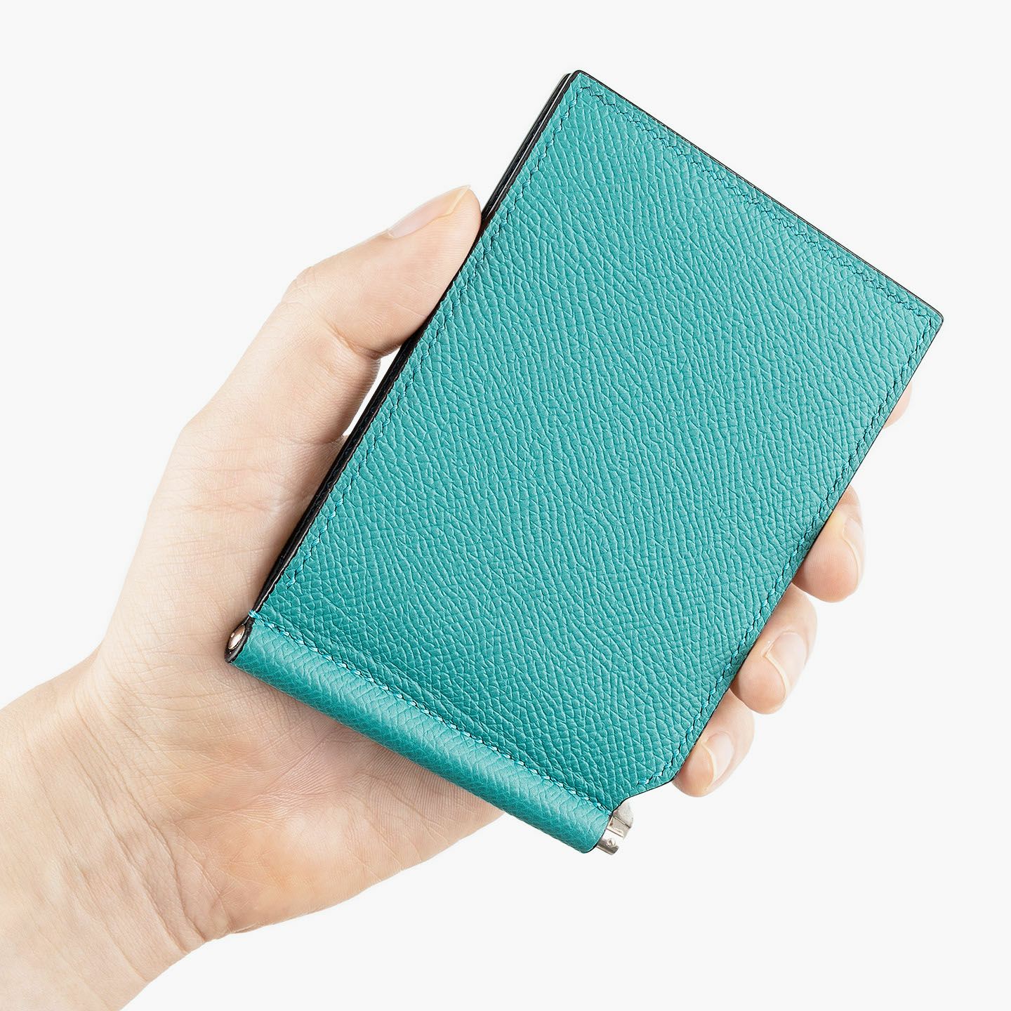ヨーロッパの老舗メゾンでも採用されている、マットな型押しの表情が美しい「ダービー」を、外装・内装ともに纏わせたマネークリップ。軽いうえに小キズ・水分にも強く、スリムなフォルムとともにスマートな印象を創出。エッジを残した端正で普遍的なスクエアと、潔いまでに自信あふれるシンプルなデザインが、総手縫いの緻密なステッチなど、細部にまでこだわり抜いた極上感を漂わせながら、カジュアルにもフォーマルにも使いこなせる魅力へ。そして、高品位なイタリア製クリップの音色や質感が、使うたびに歓びを満たす愛着感へと昇華。大人の所有欲を刺激する比類なき色気を醸した佇まいが、普段使いをプレミアムなステージへと引き上げてくれる。