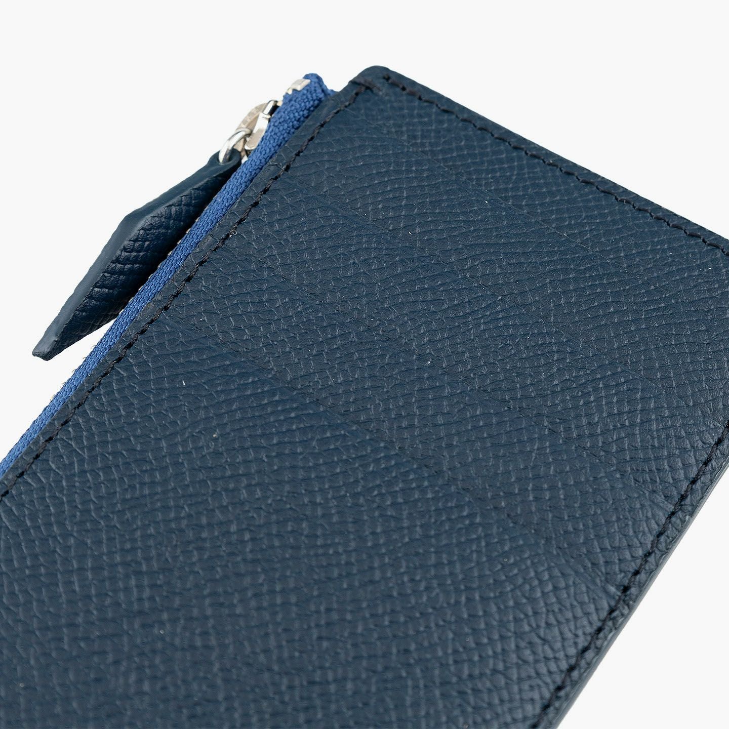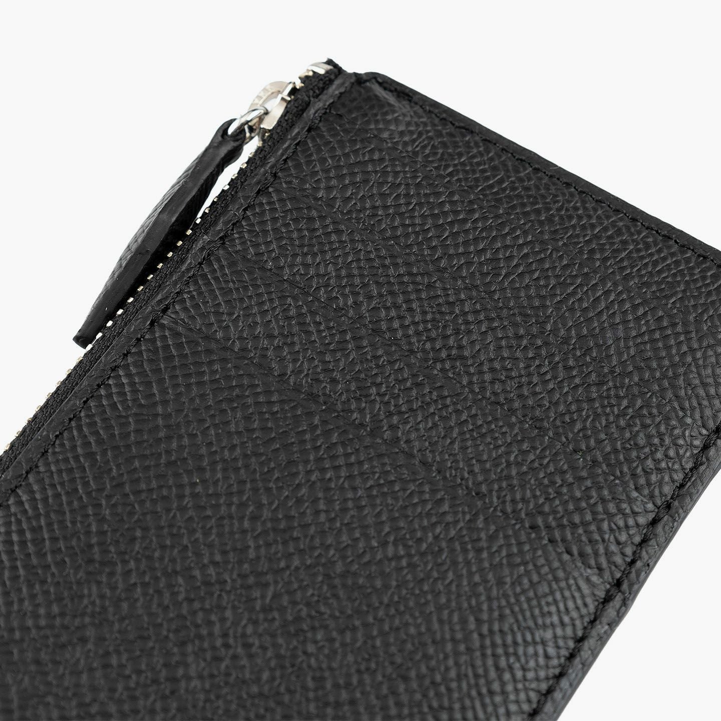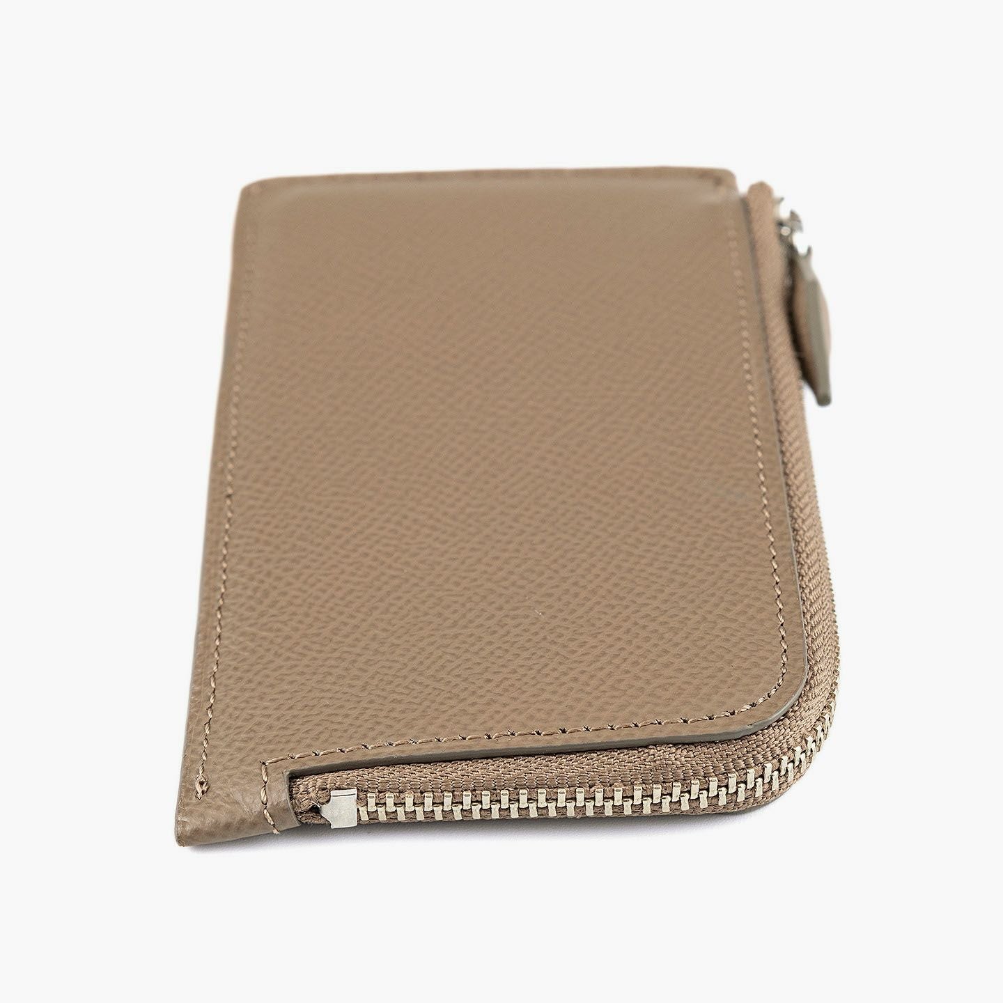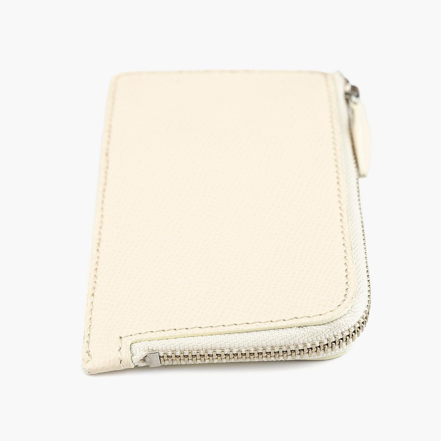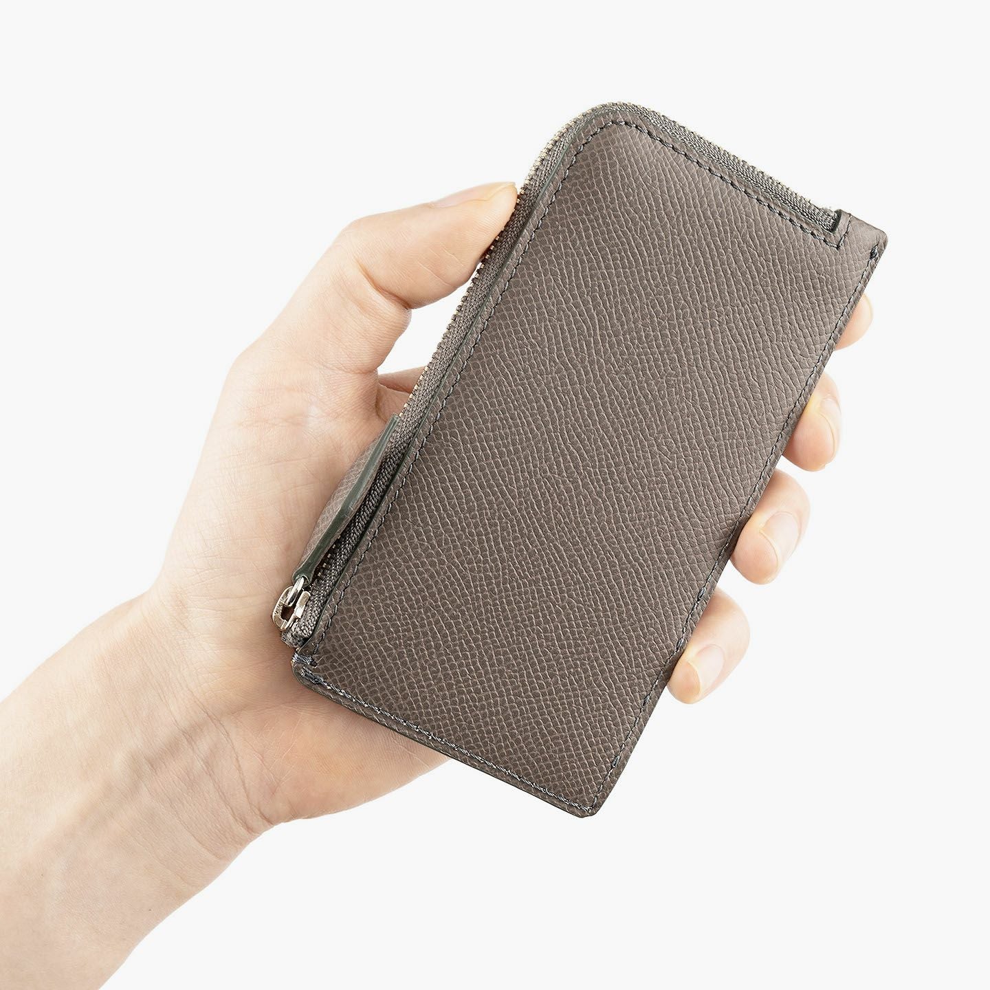 ヨーロッパの有名老舗メゾンにも人気がある、フランス・アース社製の「ダービー」を、外装として纏ったフラグメントケース。宝石のロゼンジカットを模した引き手にも、同じマテリアルを象徴的にあしらい小粋なアクセントに。細かな型押しのマットな表情が、小石模様の陰影を想わせる美しさとともに、小キズ・水分への強さと堅牢さで、ラフに扱える気楽さも魅力。スーツのポケットやバッグのなかに入れてもかさばらないスリムなフォルムと、カード・小銭・紙幣(三つ折り)を収納できる使いやすいサイズ感が、普段使いを楽しくしてくれるアイテムへ。気持ちを上げてくれるスタイリッシュな佇まいが、心に彩りをもたしてくれる。