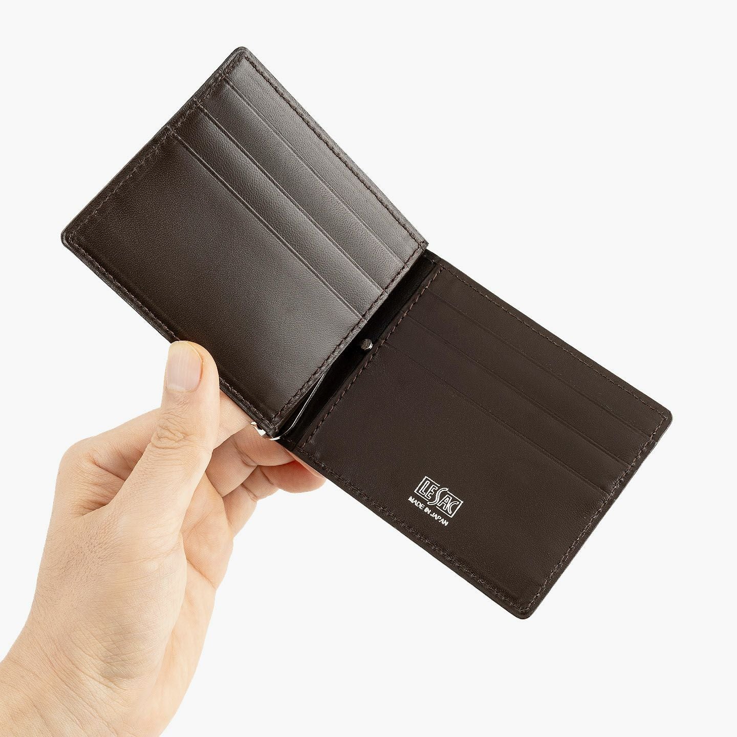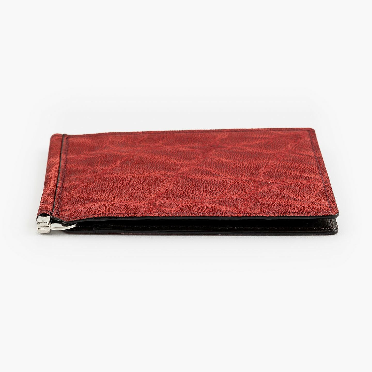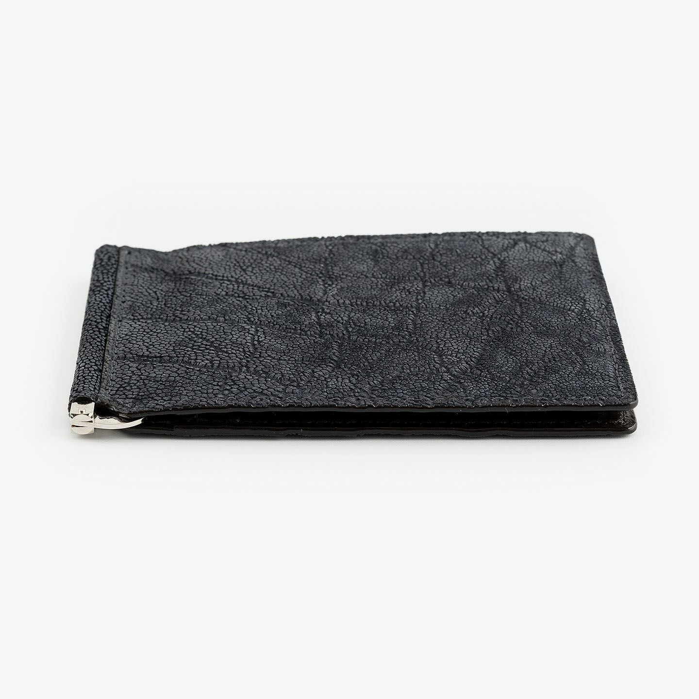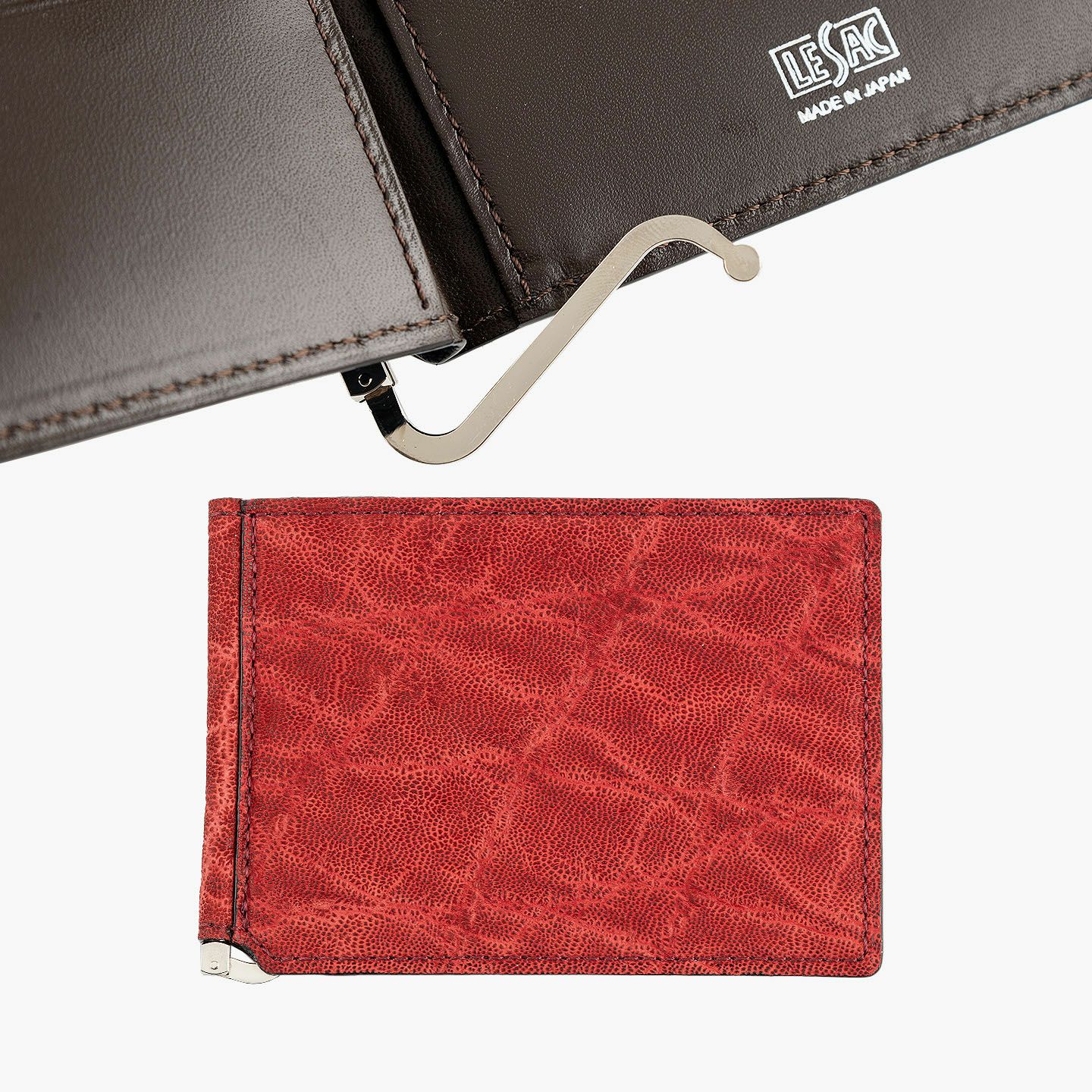 すべてにおいて独自の価値基準を設けることで、希少価値の高い最高級の革を用いるなど、真の絶対価値を追求している、エキゾチックレザー専業ブランド『LE’SAC』のマネークリップ。紙幣とカード類のみを収納するスリムなフォルムや、手軽に使いこなせるスマートなデザインと相反するように、希少で特別なゾウ革の外装「オイルエレファント」が、自然なシワ・凹凸模様による独特の存在感を放つとともに、しっとり感とザラザラ感による味わいのある質感も魅力。4色ラインナップした外装との相性も良いシルバーの金具と、落ち着いたマットな風合いで大人感のあるダークブラウンの牛革による内装が、大人の小粋さを引き立ててくれる。