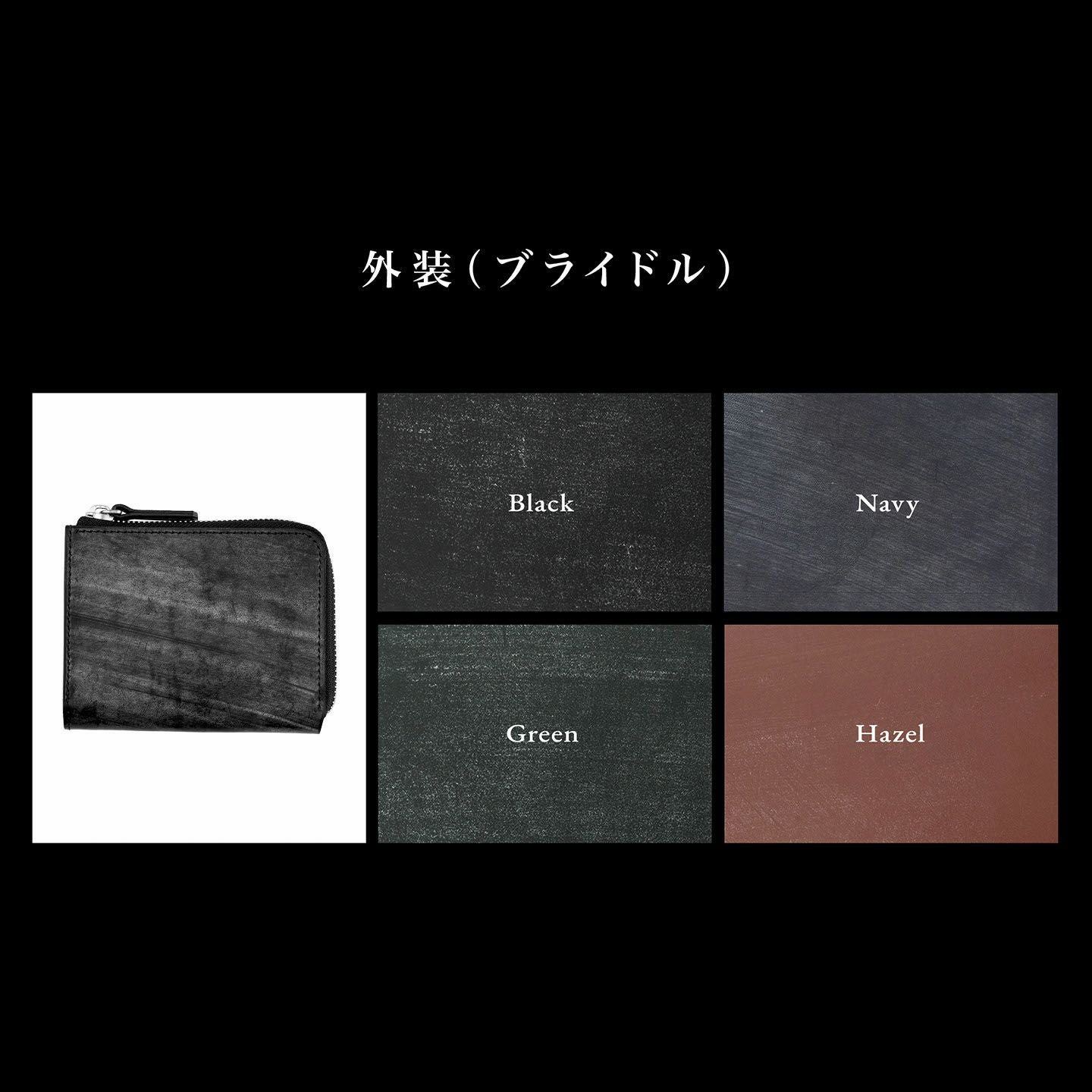 スマートなキャッシュレス化を実現するコンパクト財布の導入モデルを目指し、商品名を“導きの神様”と言われている“カラス=Corvus(コルバス)”にした、L字ジップハーフウォレット“Corvus”。程よくゆとりのあるコンパクト過ぎないサイズ感と、蛇腹に大きく開く機能的なWマチによる視認性・収納性を追求。イギリス・トーマスウェア&サンズ社製「ブライドル」“ダイドスルー”の外装は、スムーズで美しい銀面とワイルドな刷毛目のブルームが魅力。内装は、和紙のような味わいで経年変化を楽しめる「マルゴー」と、オプションとして外装と同じ「ブライドル」のいずれかをセレクト可能。フルレザー仕様の贅沢さが、普段使いに高級感を奏でてくる。