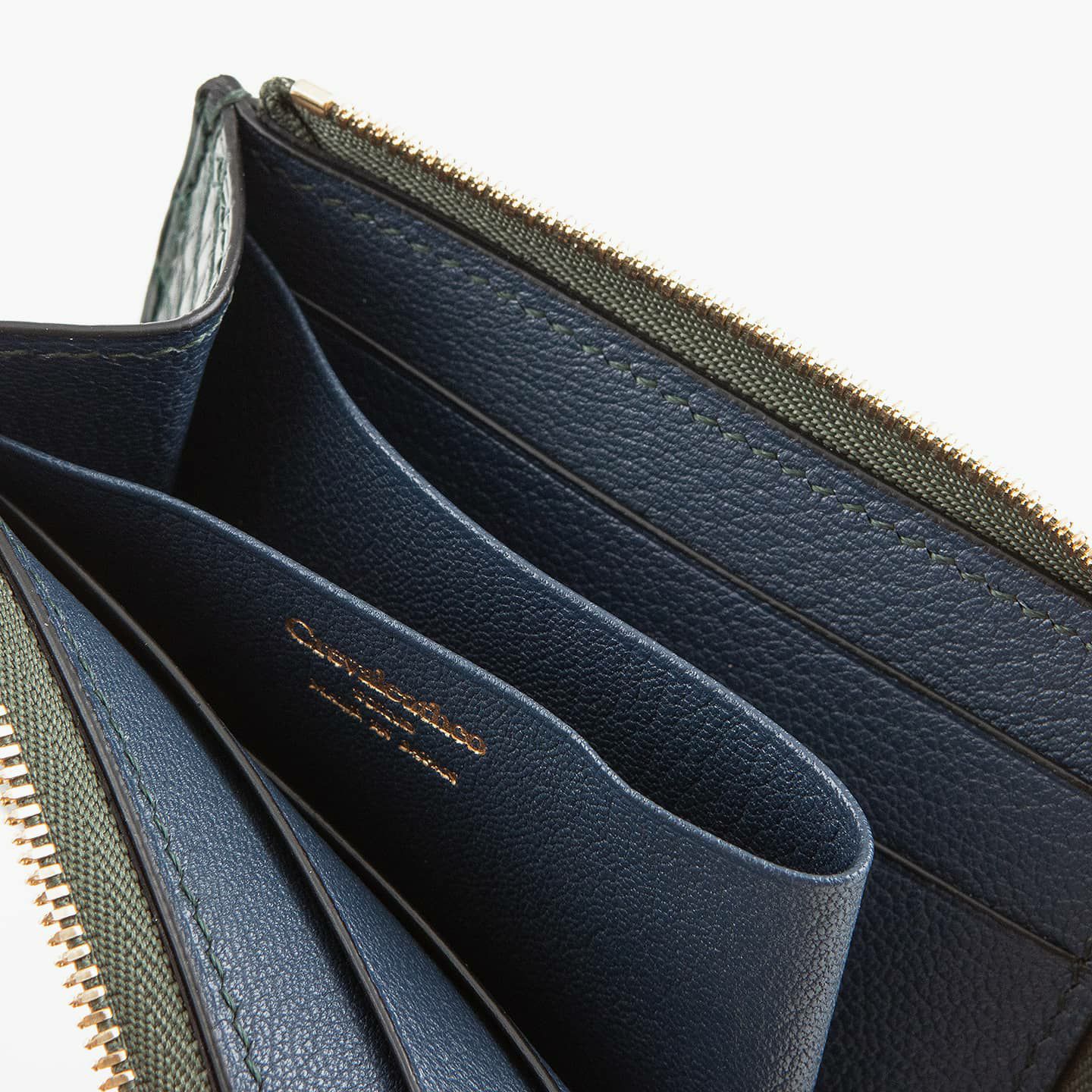 柔らかなアールが印象的な、手に収まるコンパクトなデザイン。YKKエクセラを採用したファスナーの開きを、L字から少し下に回り込ませた設計にすることで、紙幣の出し入れしやすさにも配慮しています。剣先デザインの引き手は、小ぶりな肉盛り仕様で使いやすく、さらなる高級感も演出。さらに、「ナイルクロコダイル」が重厚感を醸し出しながらも、見た目以上の軽さも魅力になっています。