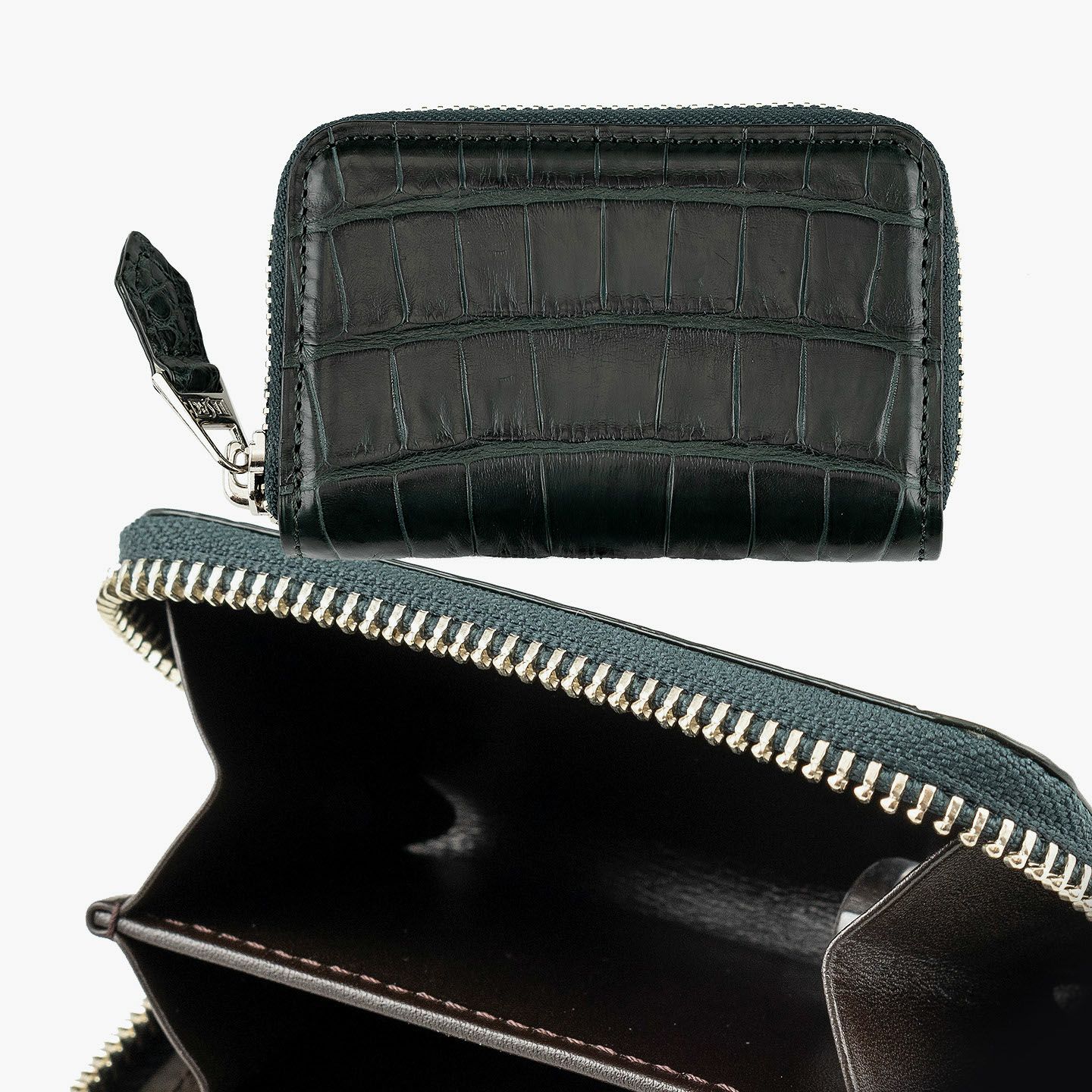 原価・サイズ・等級・鞣し・染色・デザイン・仕立てのすべてにおいて、独自の価値基準を設けている、エキゾチックレザー専業ブランド『LE’SAC』のミニラウンドジップ財布。高級皮革のワニ革「アリゲーター」を贅沢に纏った外装による、美しく連なった斑模様と人気カラーのGreen・Navyとのバランスが、使うほどに光沢感を漂わせながら味わい深くなっていき、唯一無二の存在感へと昇華。全体のアクセントとして引き立てているシルバーのファスナー&オリジナル引き手に、同じ「アリゲーター」による剣先の引き手をあしらった洒落感と、内装の牛革による落ち着いた色合いと実用的な使用感が、上質な大人感を高めてくれる。