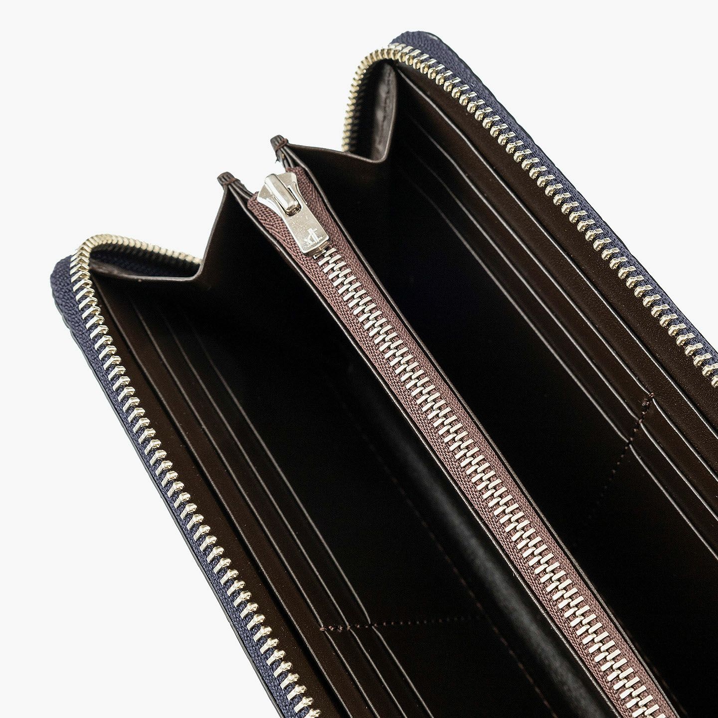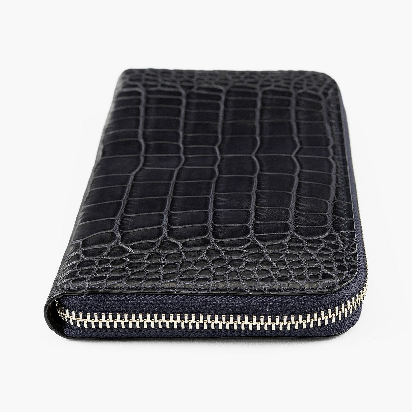 真の絶対価値を追求するために、すべてのパーツ・工程に独自の価値基準を設け、唯一無二のモノづくりにこだわっている、エキゾチックレザー専業ブランド『LE’SAC』のラウンドジップ長財布。上質な斑のバランスが美しいワニ革「アリゲーター」の人気色Navyを、外装として纏わせた比類なき高級感が、それを引き立てるファスナーのシルバーとともに、独特の贅沢感と満足感を醸成。ファスナー式小銭入れをセンターにしたシンメトリーデザインの内装は、札入れ2・カードポケット12・フリーポケット2の優れた収納力を装備するとともに、ダークブラウンの上質な牛革が、落ち着きのあるマットな風合いで、大人の上品さを奏でてくれます。