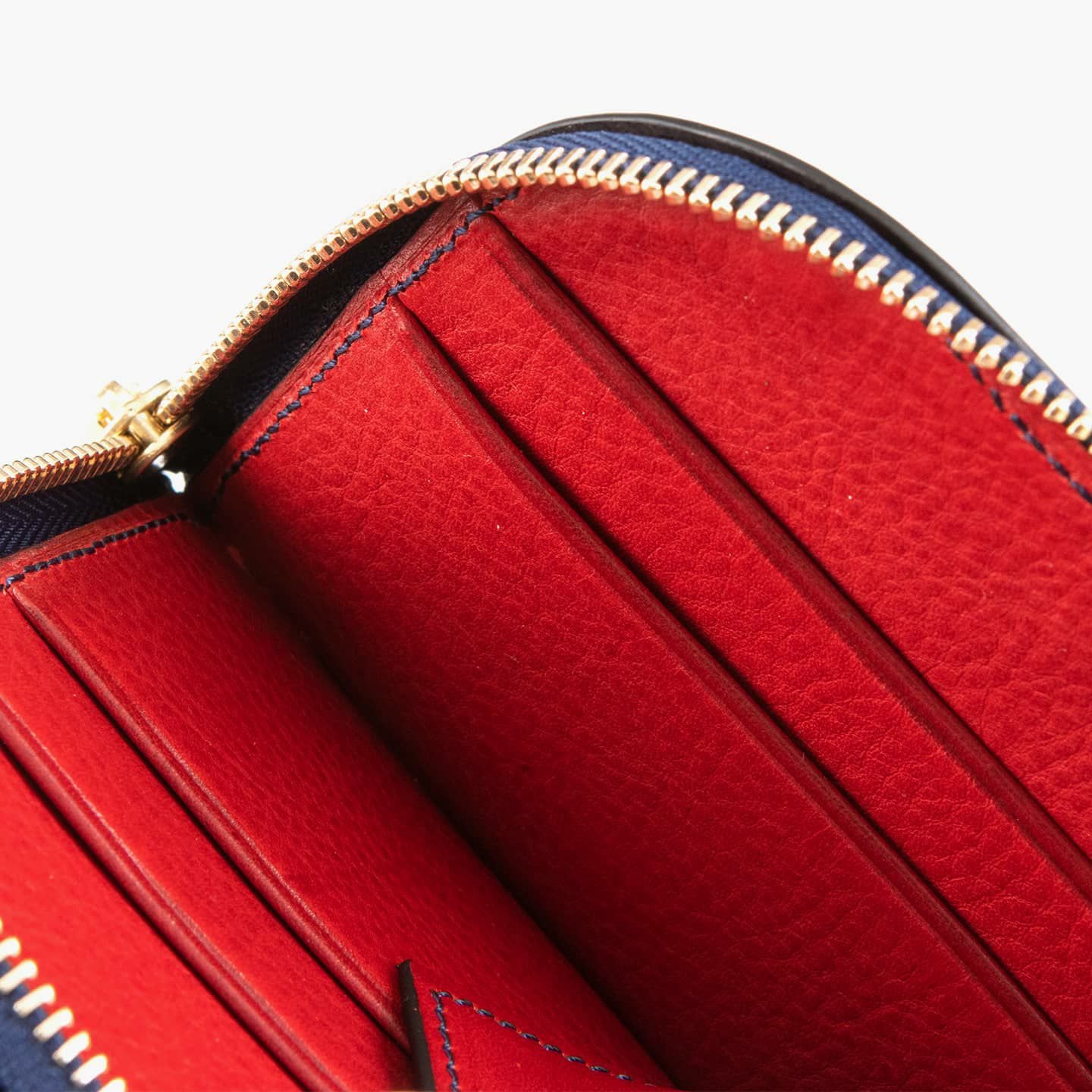 ファスナーを開いた瞬間に、すべての収納物をひと目で見渡せ、特に小銭の取り出しやすさに優れた設計。多くを収納している状態でも、財布としての美しさを保てることを追求し、小銭入れの底が中央付近になるようにデザインされています。YKKエクセラを採用したファスナーの引き手には、ヨーロピアン的な雰囲気を醸すエレガントな形状を採用。サイズ的には小さいながらも、摘みやすさを兼ね備えています。