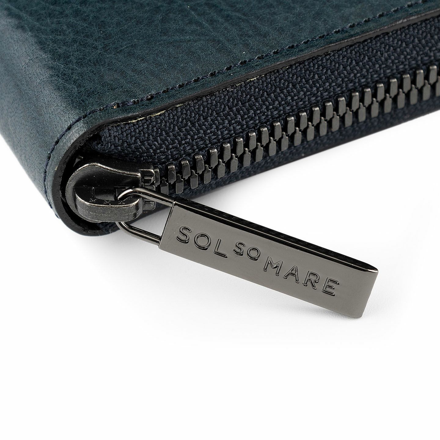 かけがえのない時間や空間へ、モノがあふれる時代のレザーアイテムとして、自然の情緒と色彩の感動を届けている、ファクトリーブランド『SOLSOMARE』のラウンドジップ長財布。深みのある落ち着いた色合いの「イタリアンショルダー」は、Orange/Navy Blueのいずれかからセレクトでき、そのカラーごとに異なる金具・ファスナーテープとの配色が洒落感を演出。丈夫で経年変化を楽しめる牛革の風合いを感じながら、大容量の収納力を併せ持つとともに、紙幣・小銭・カードなどが見やすく出し入れしやすい使い勝手の良さが、日常使いの満足感を高めてくれる。