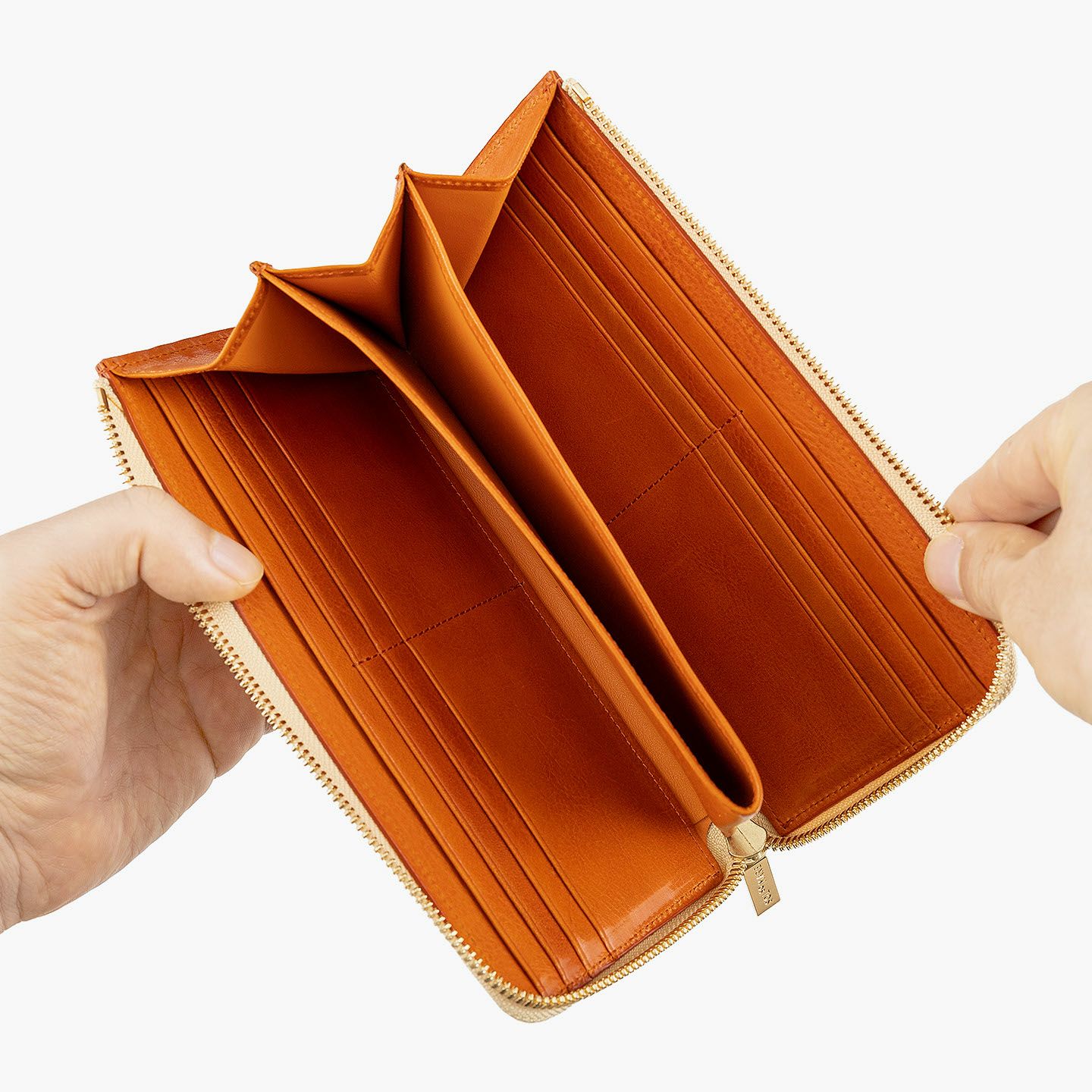 太陽や海などをデザインのモチーフにすることで、自然を感じられる情緒と色彩が織りなす感動を美しく綴っている、ファクトリーブランド『SOLSOMARE』のLFラウンド長財布。厳選された良質な「イタリアンショルダー」を採用し、セレクトできるOrange/Navy Blueごとに異なる金具・ファスナーテープとのカラーコーディネイトが、連れて行きたくなる気分をアップ。オープン式コインポケット・カードポケット12・フリーポケット2・札入れマチ付きポケット2による抜群の収納力が、スマートなL字ファスナーのデザインとともに、普段使いの歓びをもたらしてくれる。