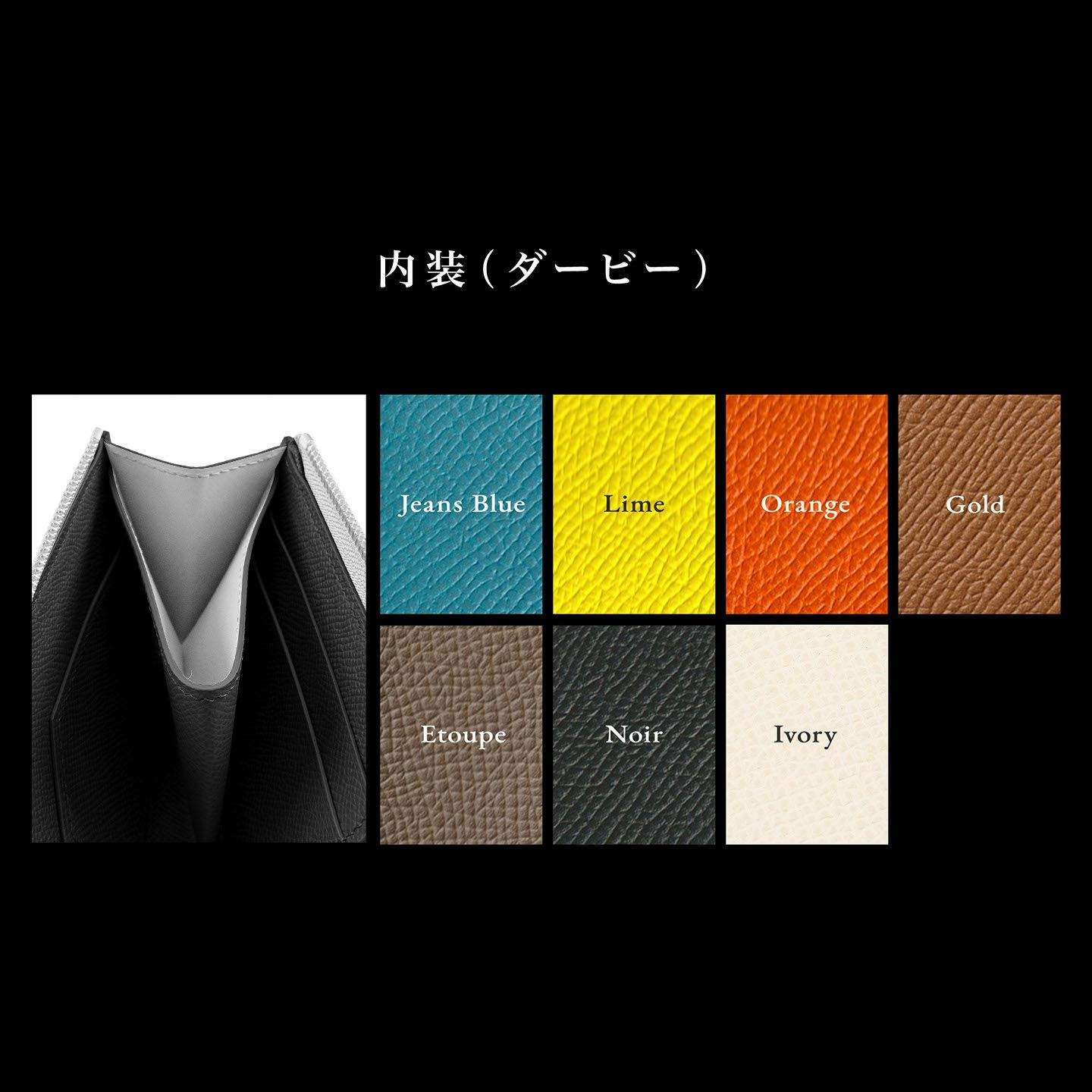 外装・内装それぞれの「ダービー」は6色から、コインポケット裏は「牛革(スムースレザー)」の3色もしくは、内装色と同じダービーからセレクトすることが可能。豊富な25色をラインナップしている高級麻糸「MeiSi Superfine Linen Thread」も、外装と内装でセレクトしたそれぞれのカラーとの組み合わせを考慮したカラーリングが楽しめます。また、ファスナー「YKKエクセラ」はSilver・Goldのいずれかから選べ、テープカラーは外装と同系色のカラーで統一。引き手は剣型(オリジナルデザイン)・雫型(オリジナルデザイン)・純正デザインの3種類から、ロゴ刻印も箔押し(ファスナーと同色)・素押し・無しから選べるなど、自分好みのカラー・仕様でセレクトオーダーできるのも魅力です。