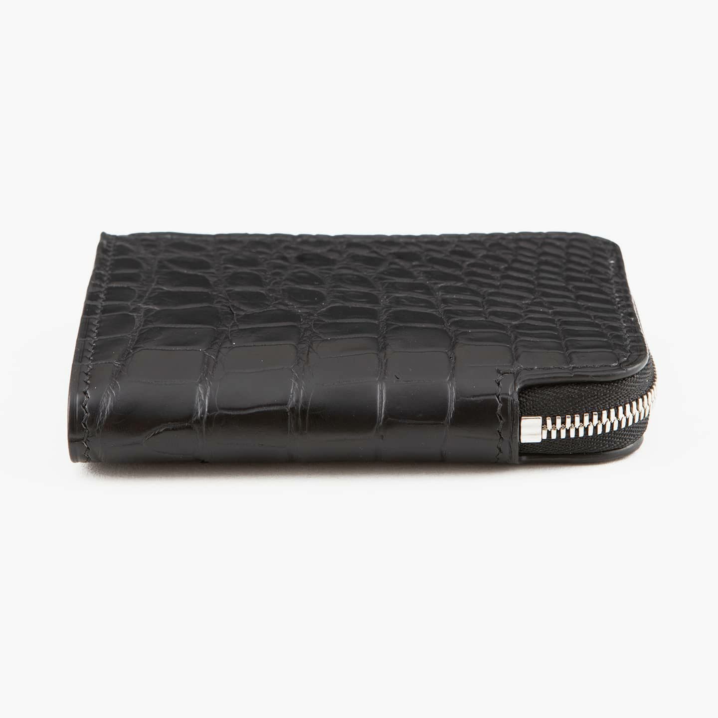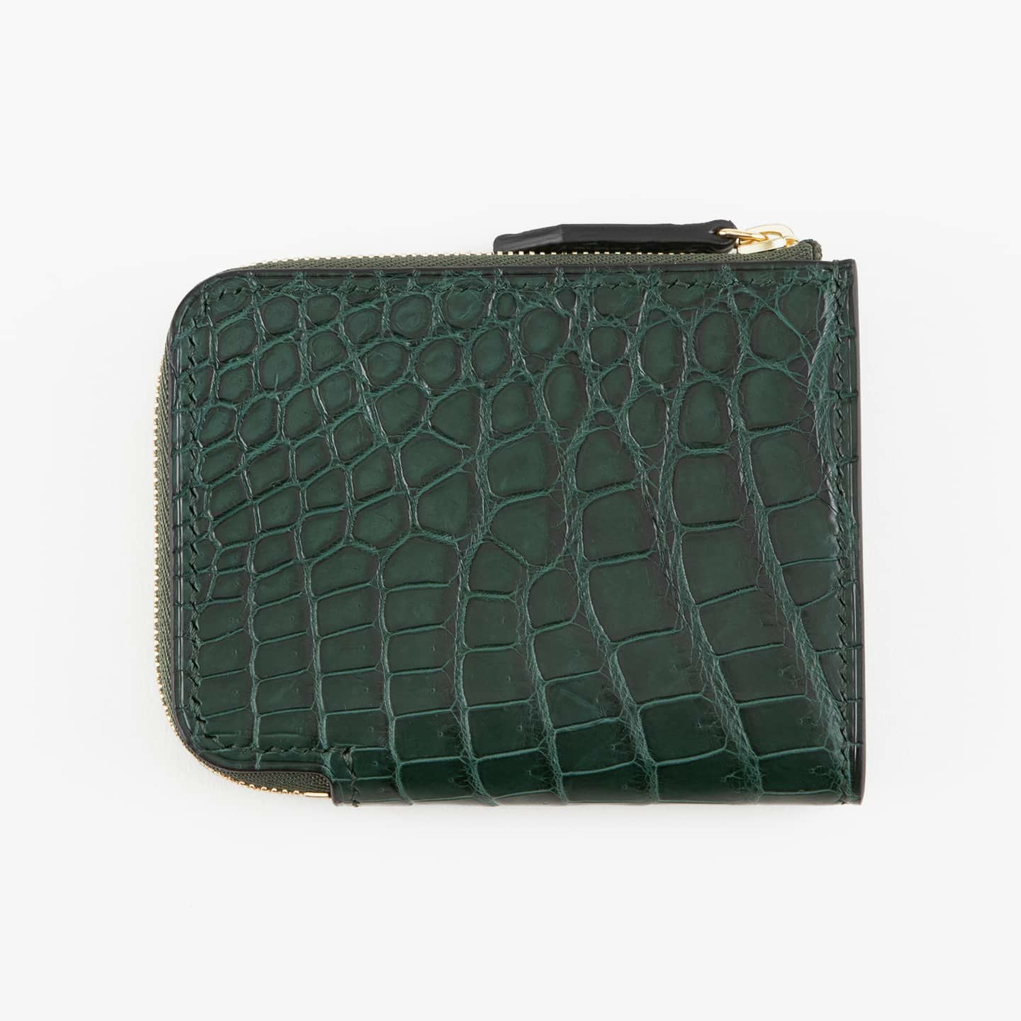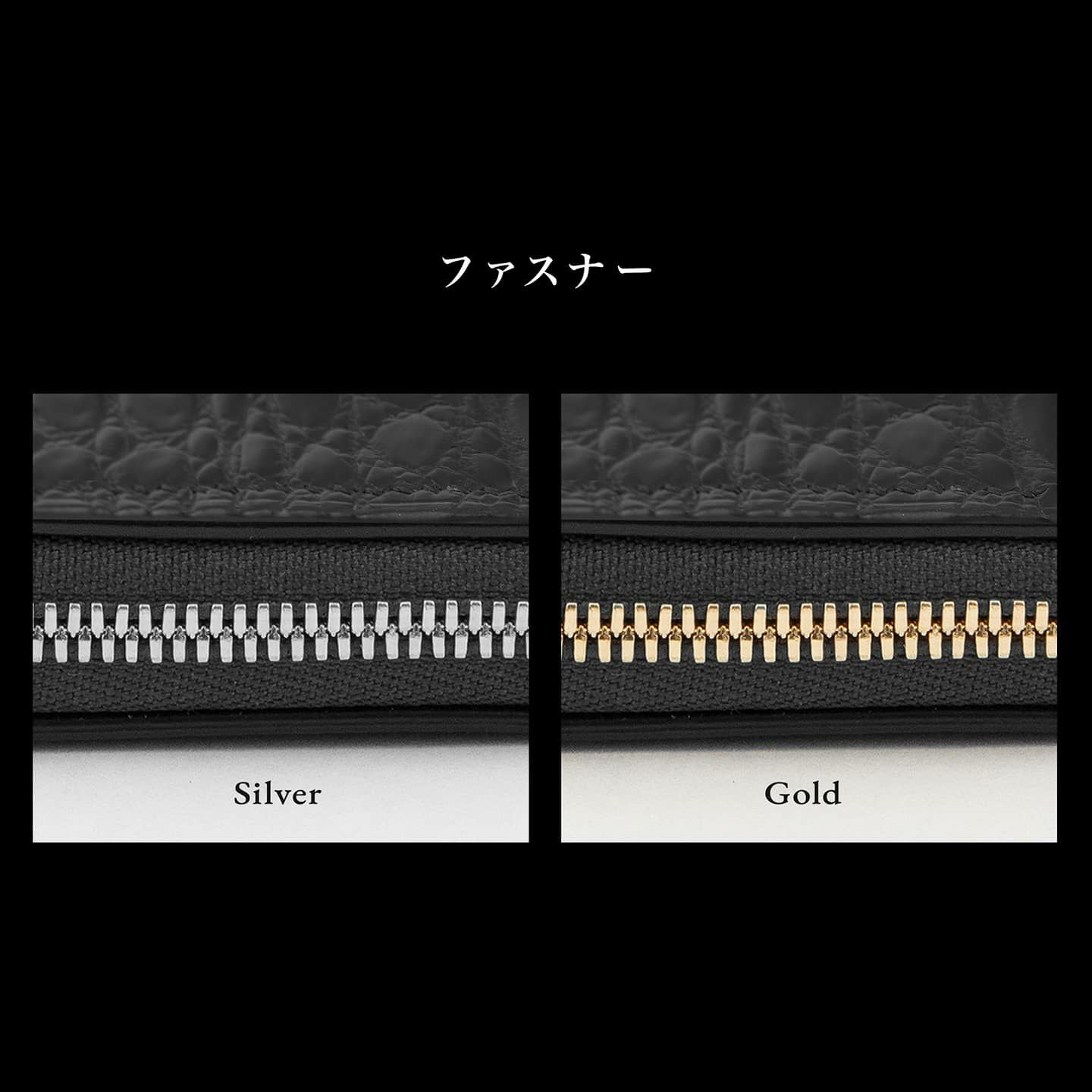 ポロサス/スモールクロコダイル(イリエワニ)・ラージクロコダイル(ニューギニアワニ)・シャムクロコダイル(シャムワニ)の他の3種類のクロコダイルに比べ、「ナイルクロコダイル(ナイルワニ)」は鱗が細かく、長方形の鱗板が腹部全体に整然と並んでいて、横腹の鱗は丸みのある長方形をしており、その幅は他の種類より狭いのが特長。鱗のバランスとしては、ポロサスとラージクロコダイルの中間くらいのイメージです。また、「ナイルクロコダイル」は、アフリカが原産で、一匹のナイルワニから採れる革の面積が小さいうえに、ヨーロッパの高級メゾンを中心に非常に需要が高く、とても希少価値が高い素材です。染色・質感・風合いの3つのこだわりを追求するために、鞣しや仕上げに至るまで日本国内のタンナーで行っています。