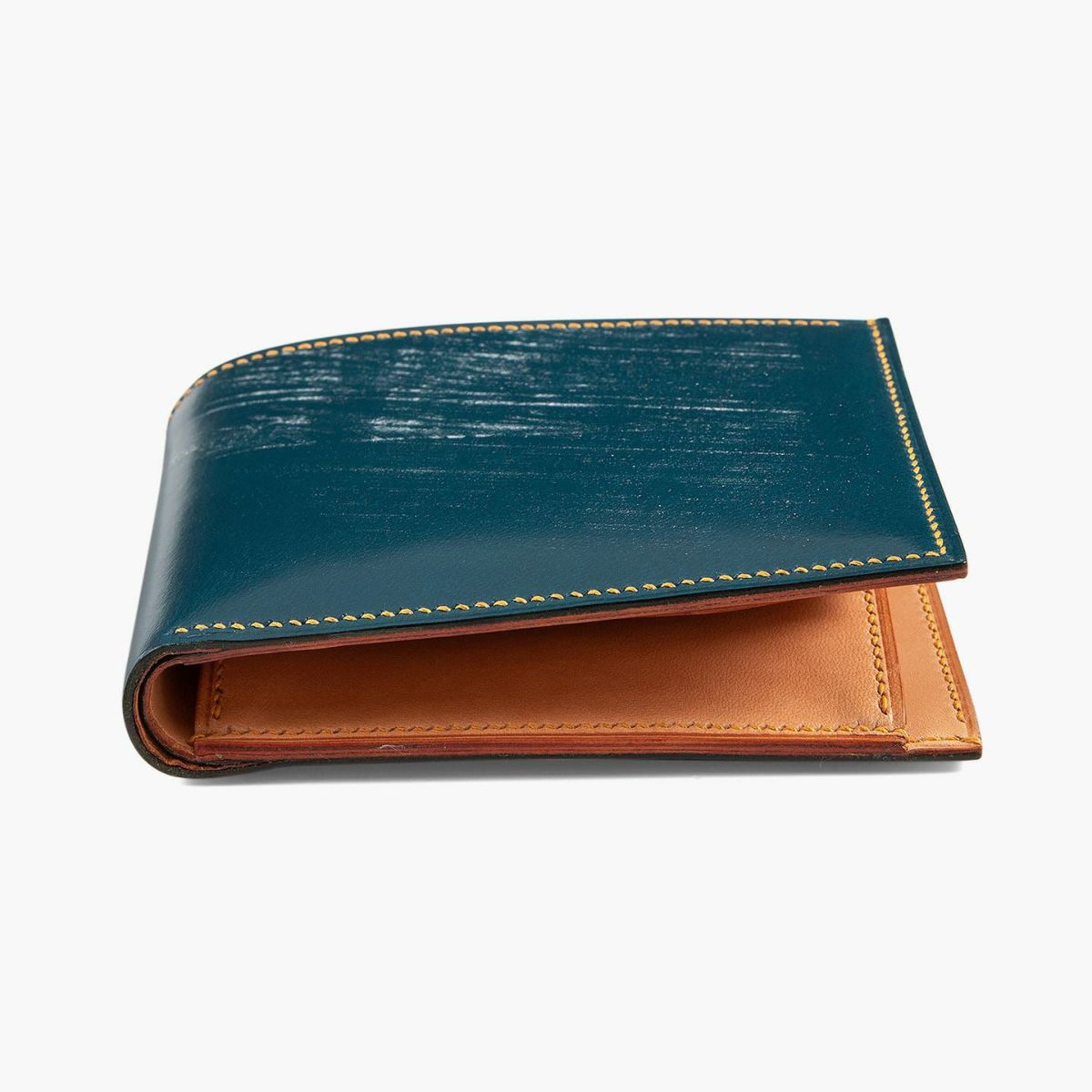アニリン染めコードバン & ブライドル 薄型二つ折り財布(小銭入れ付き)