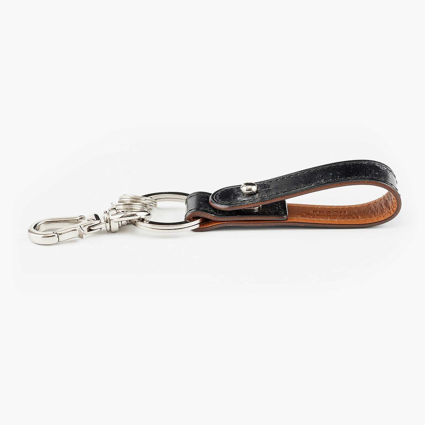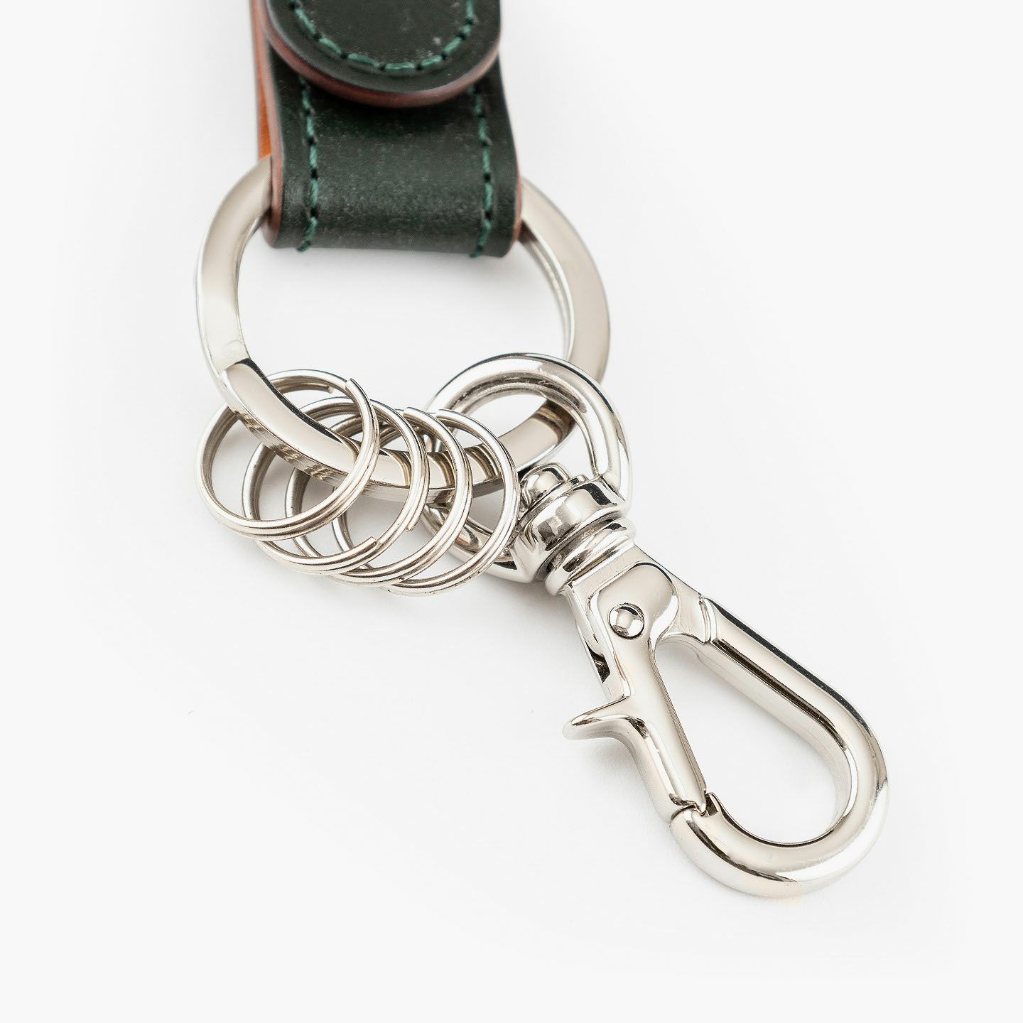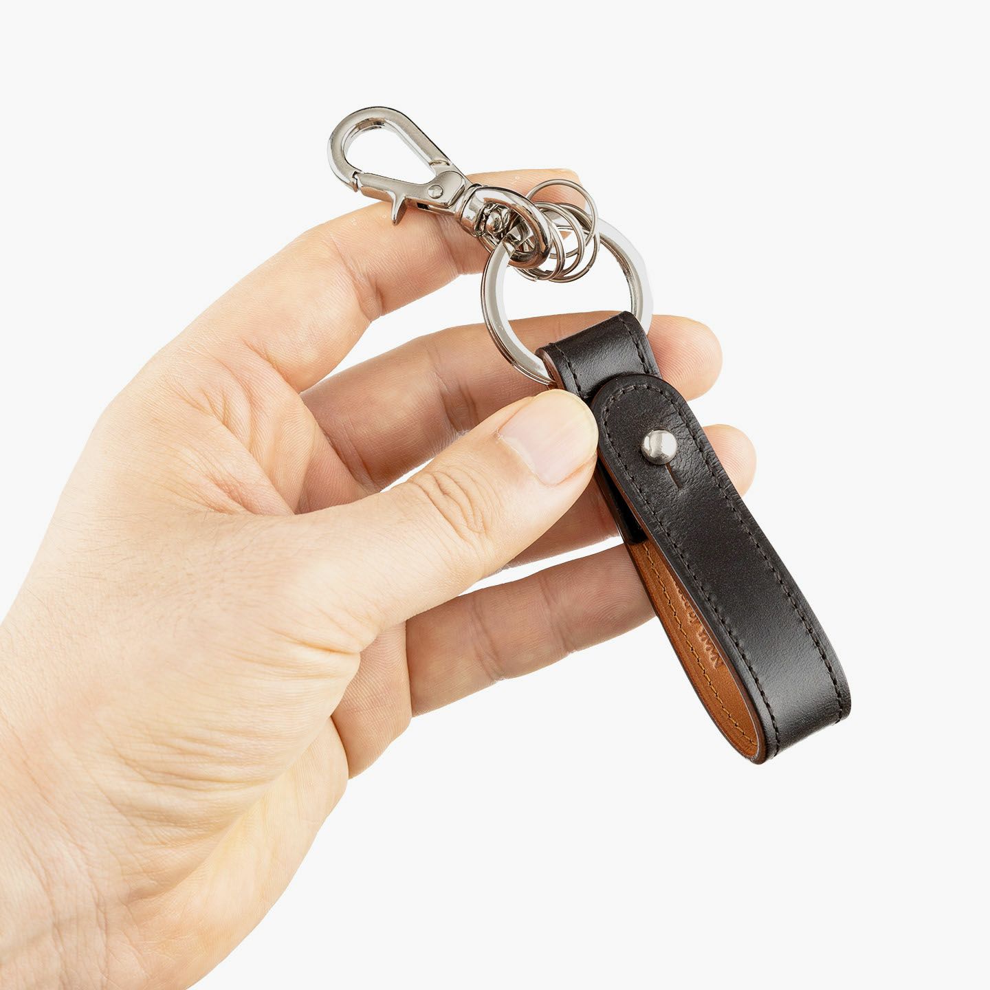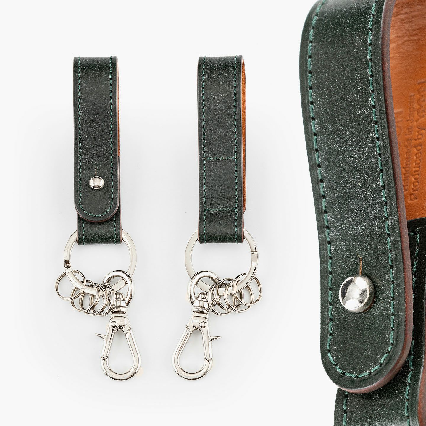 積み重ねてきた技術と研ぎ澄ましてきた感性を駆使して、細部の美しさにこだわり抜いた熟練の職人が仕立てている、革小物のファクトリーブランド『FESON』のキーホルダー。堅牢で耐久性に優れている「ブライドルレザー」は、“ブルーム”と呼ばれる白い粉模様が表皮に現れるのが特長的で、使い込むほどに美しいツヤ肌へと輝いていく、素晴らしい経年変化が魅力の高級皮革。自分用の日常使いとしてはもちろん、Navy・Green・Black・Dark Brownの4色からセレクトできるので、大切な人へのプレゼント用に異なるカラーを贈るなど、大人の素敵な使い方を広げさせてくれる。