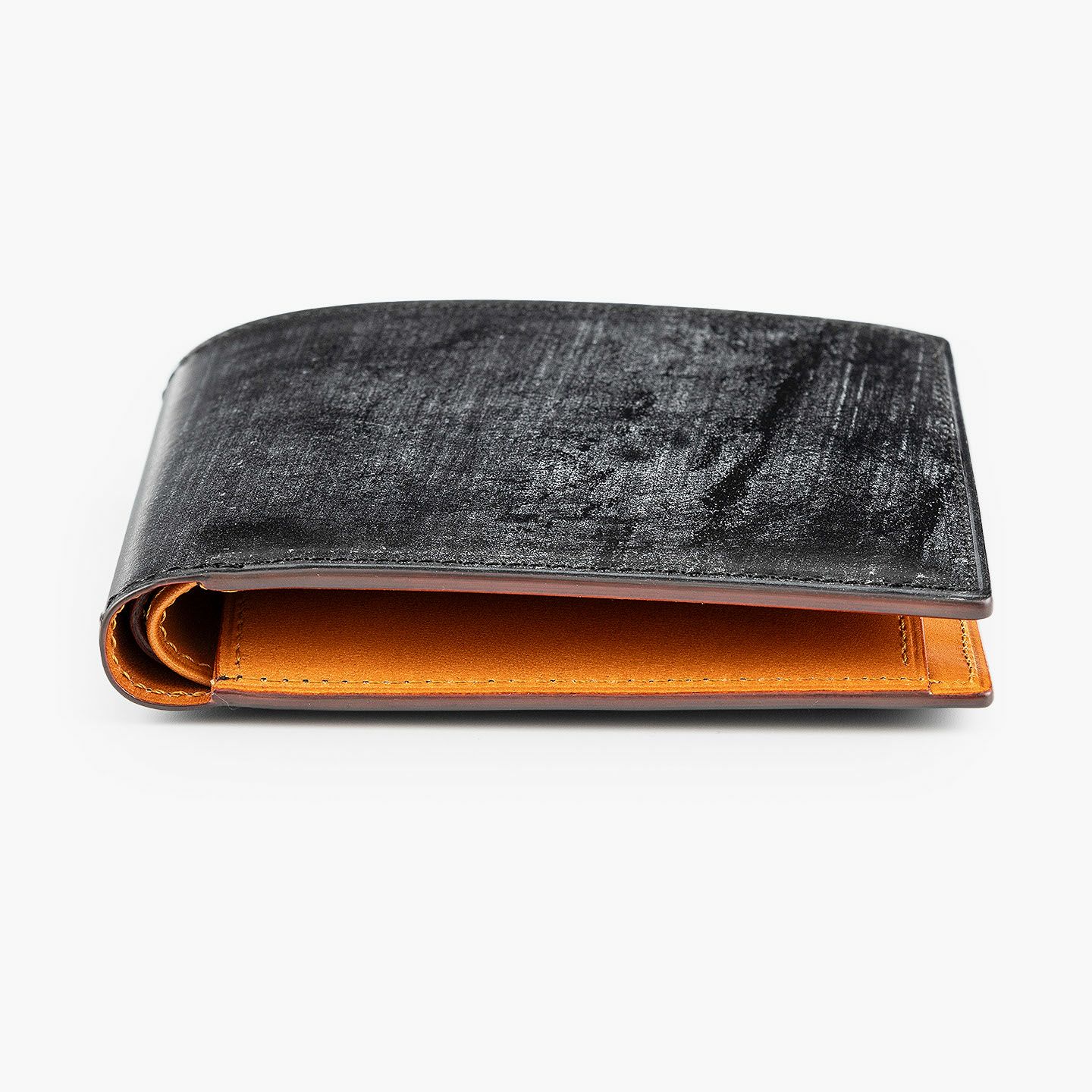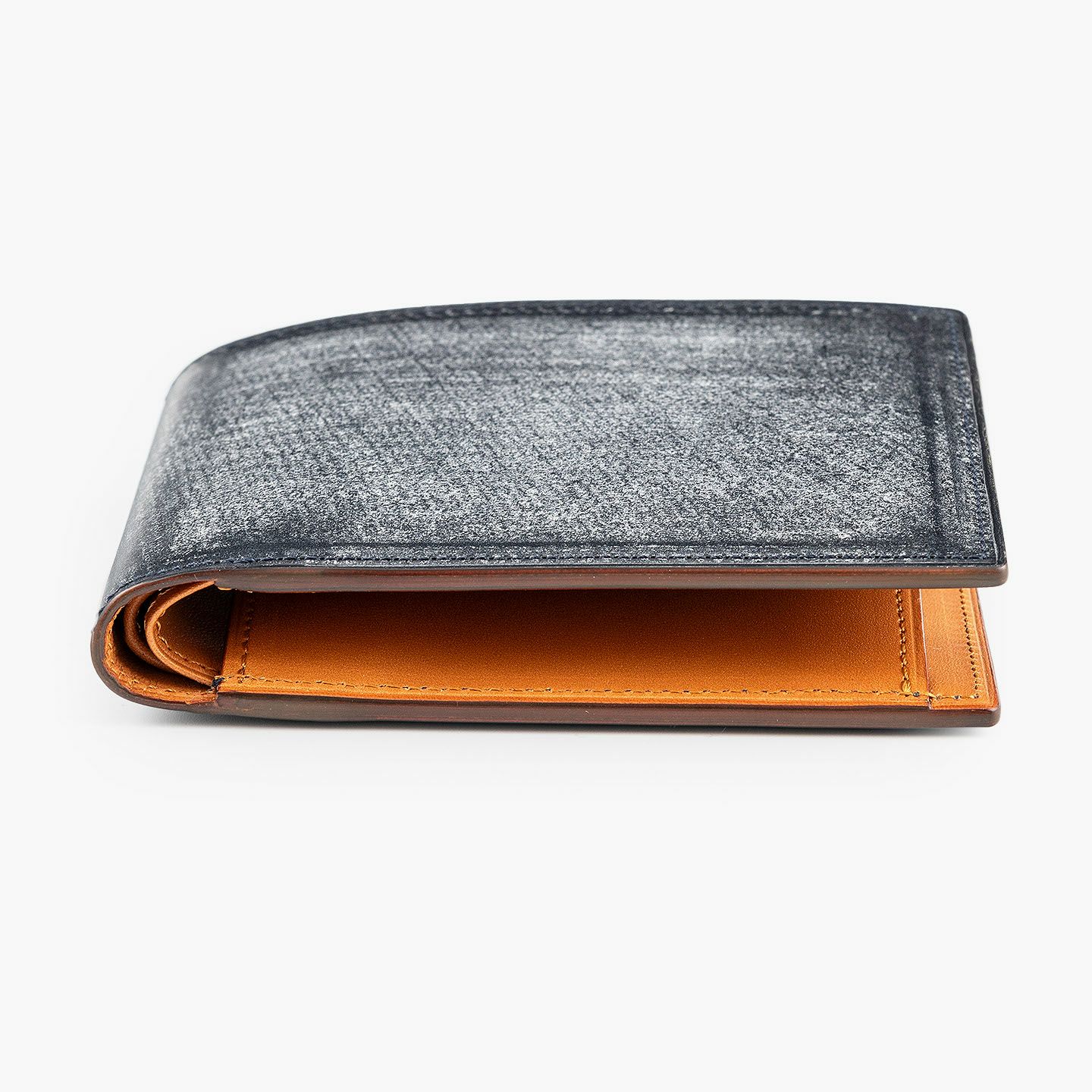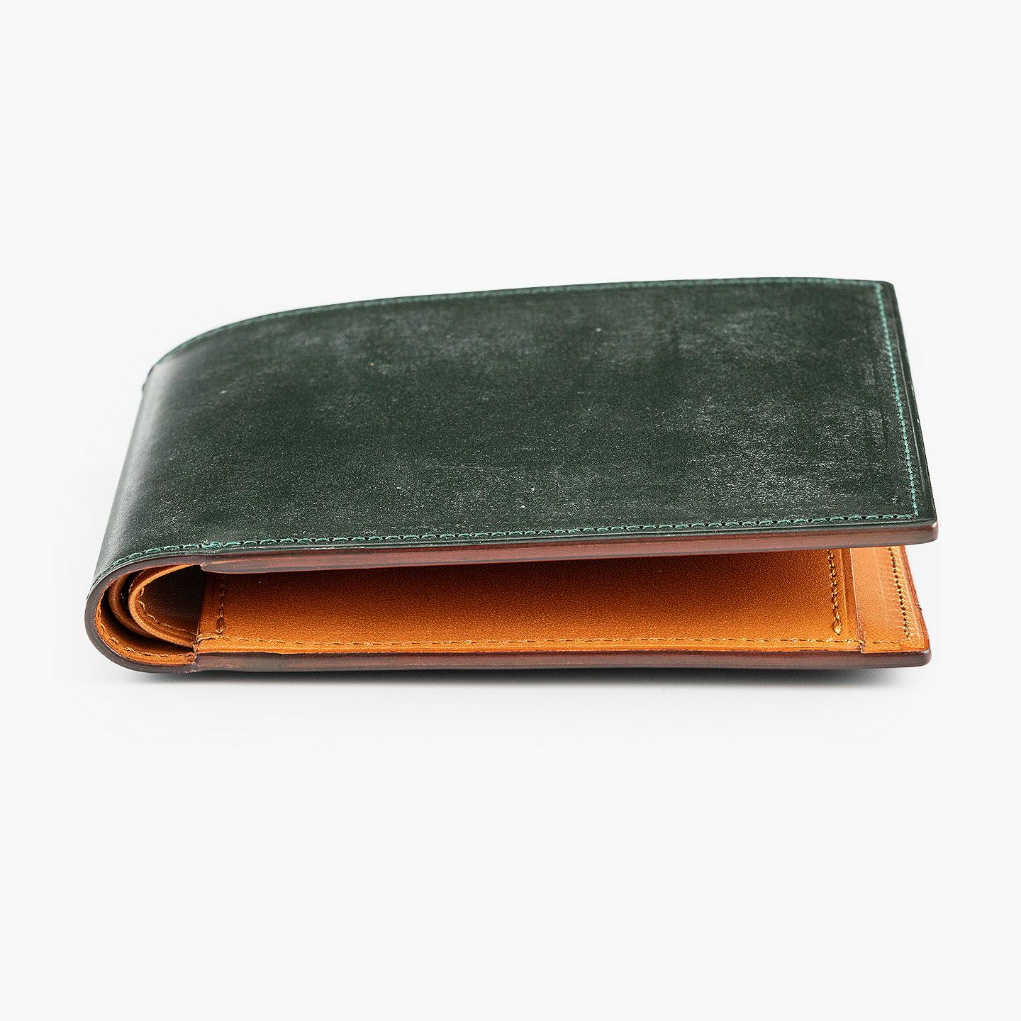 他にはない高級感あふれる品質を追い求め、細部の美しさにこだわり抜いた熟練の職人が仕立てている、ファクトリーブランド『FESON』の二つ折り財布(小銭入れ付き)。“ブルーム”という白い粉が表皮に現れる外装の「ブライドルレザー」と、キメ細かく上質な内装の「国産ヌメ革」による、まったく異なる質感と表情が、相棒のように使いこなす歓びへと昇華。白い粉が自然となくなり美しいツヤ肌になっていく風合いと、プレーンから味わい深さが育っていく佇まいが奏でる、経年変化による2素材の素晴らしい共演が、長く使い続けたくなる愛着感も育ててくれる。