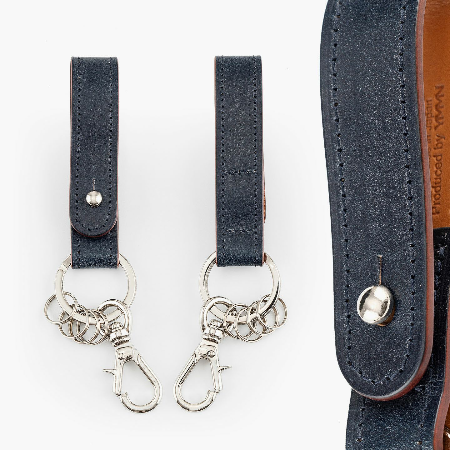 積み重ねてきた技術と研ぎ澄ましてきた感性を駆使して、細部の美しさにこだわり抜いた熟練の職人が仕立てている、革小物のファクトリーブランド『FESON』のキーホルダー。堅牢で耐久性に優れている「ブライドルレザー」は、“ブルーム”と呼ばれる白い粉模様が表皮に現れるのが特長的で、使い込むほどに美しいツヤ肌へと輝いていく、素晴らしい経年変化が魅力の高級皮革。自分用の日常使いとしてはもちろん、Navy・Green・Black・Dark Brownの4色からセレクトできるので、大切な人へのプレゼント用に異なるカラーを贈るなど、大人の素敵な使い方を広げさせてくれる。