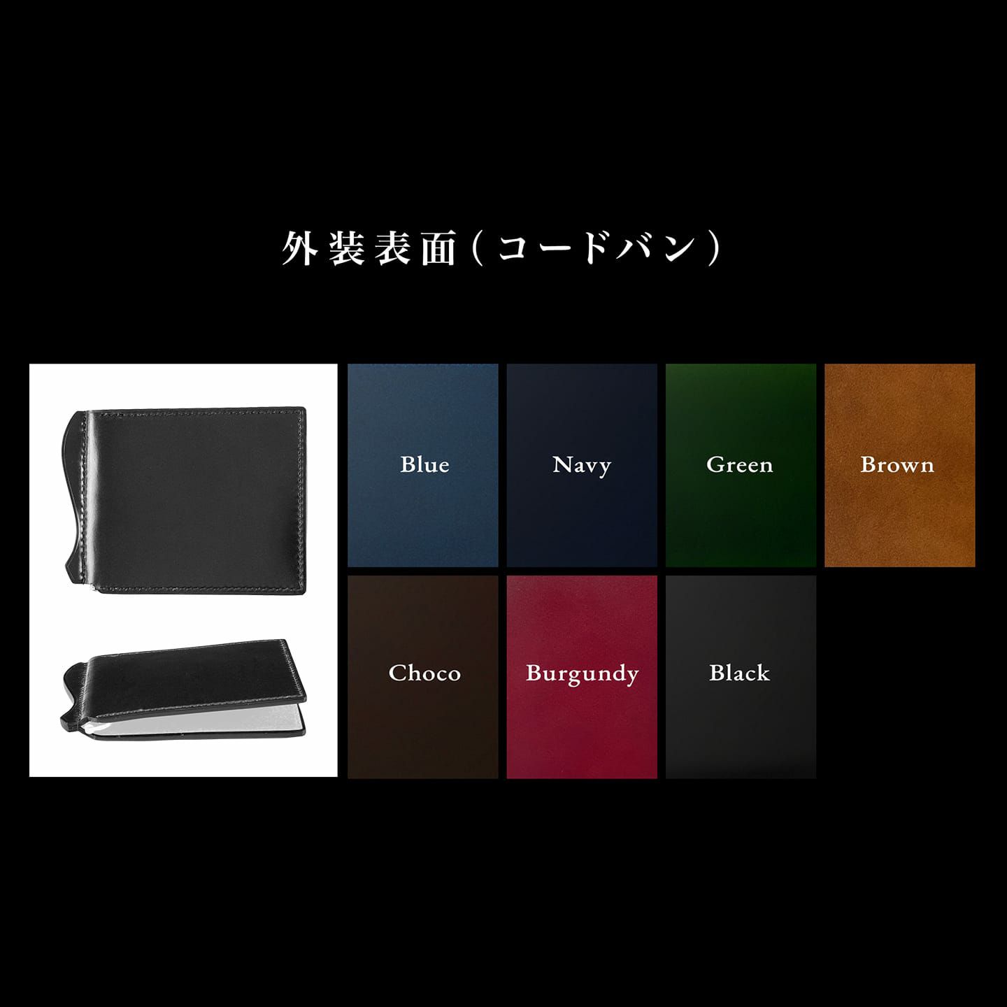 アニリン染めコードバン & ブライドル マネークリップ
