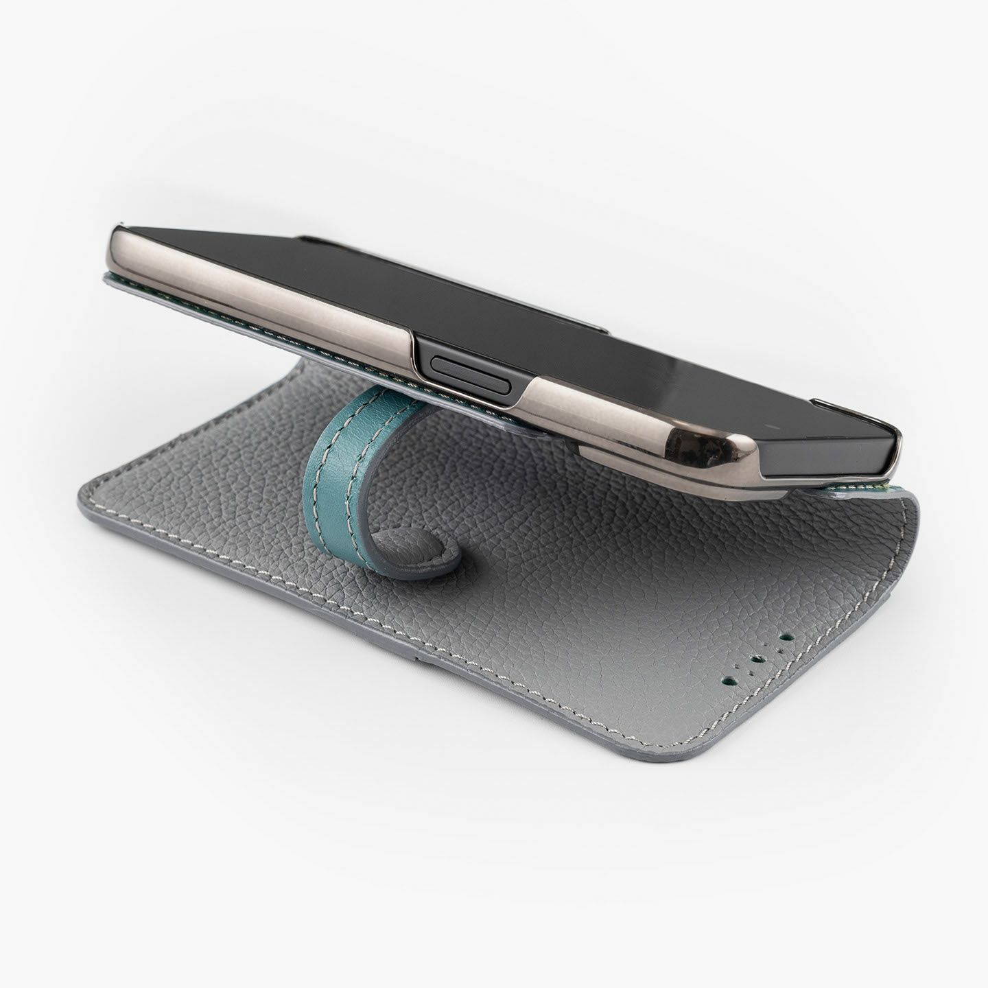 • - ケースを背面側に折り返した場合、革にシワ跡が残る場合がございます。