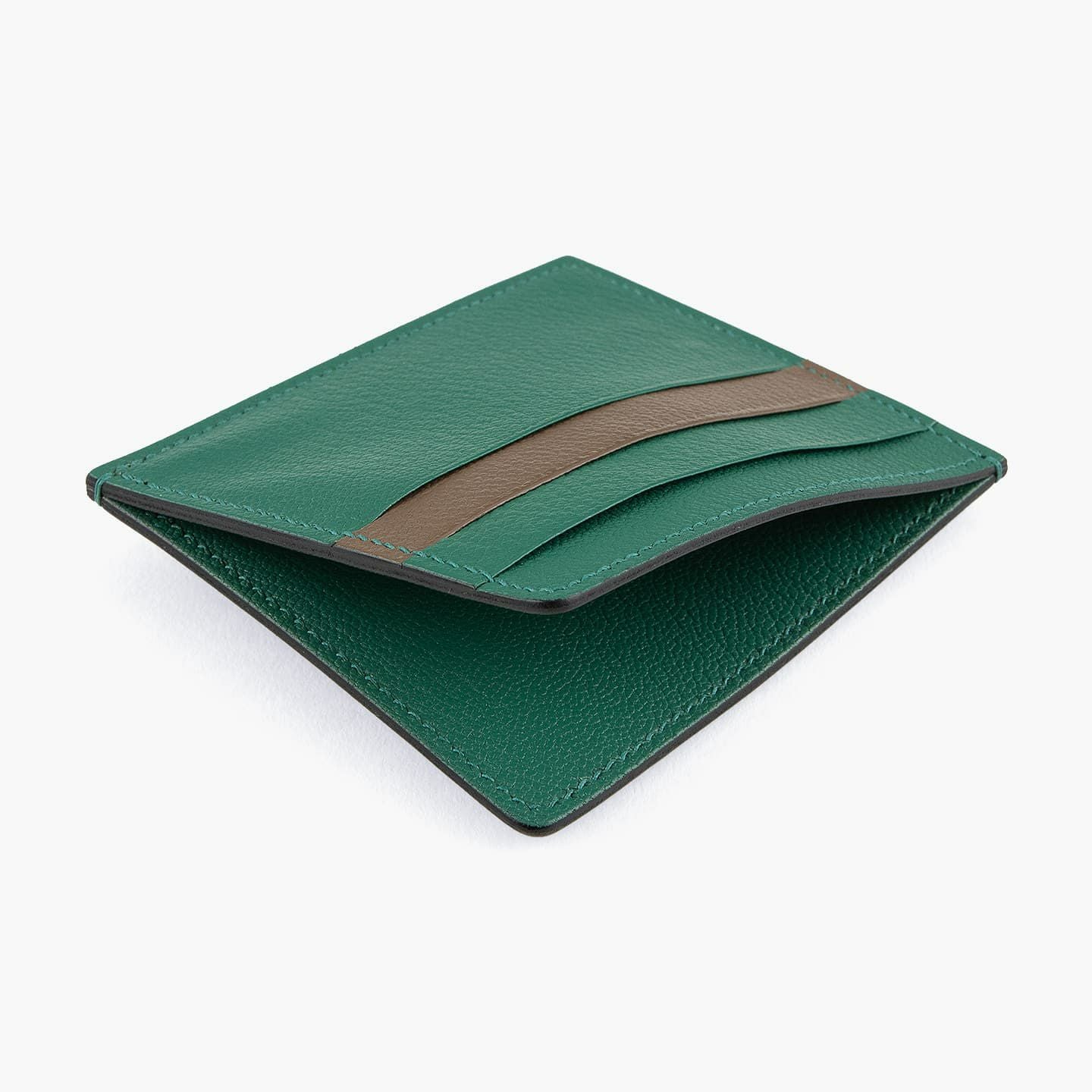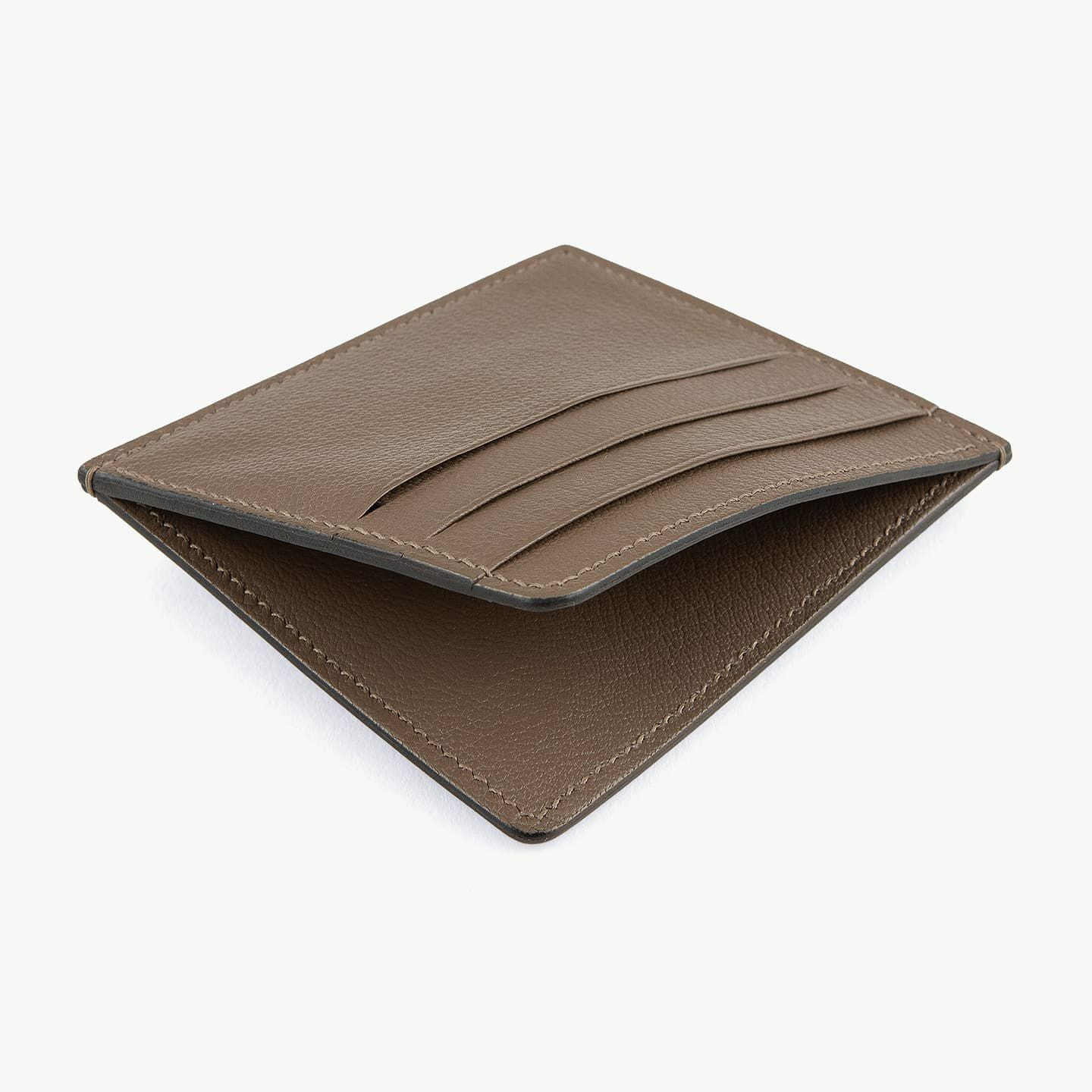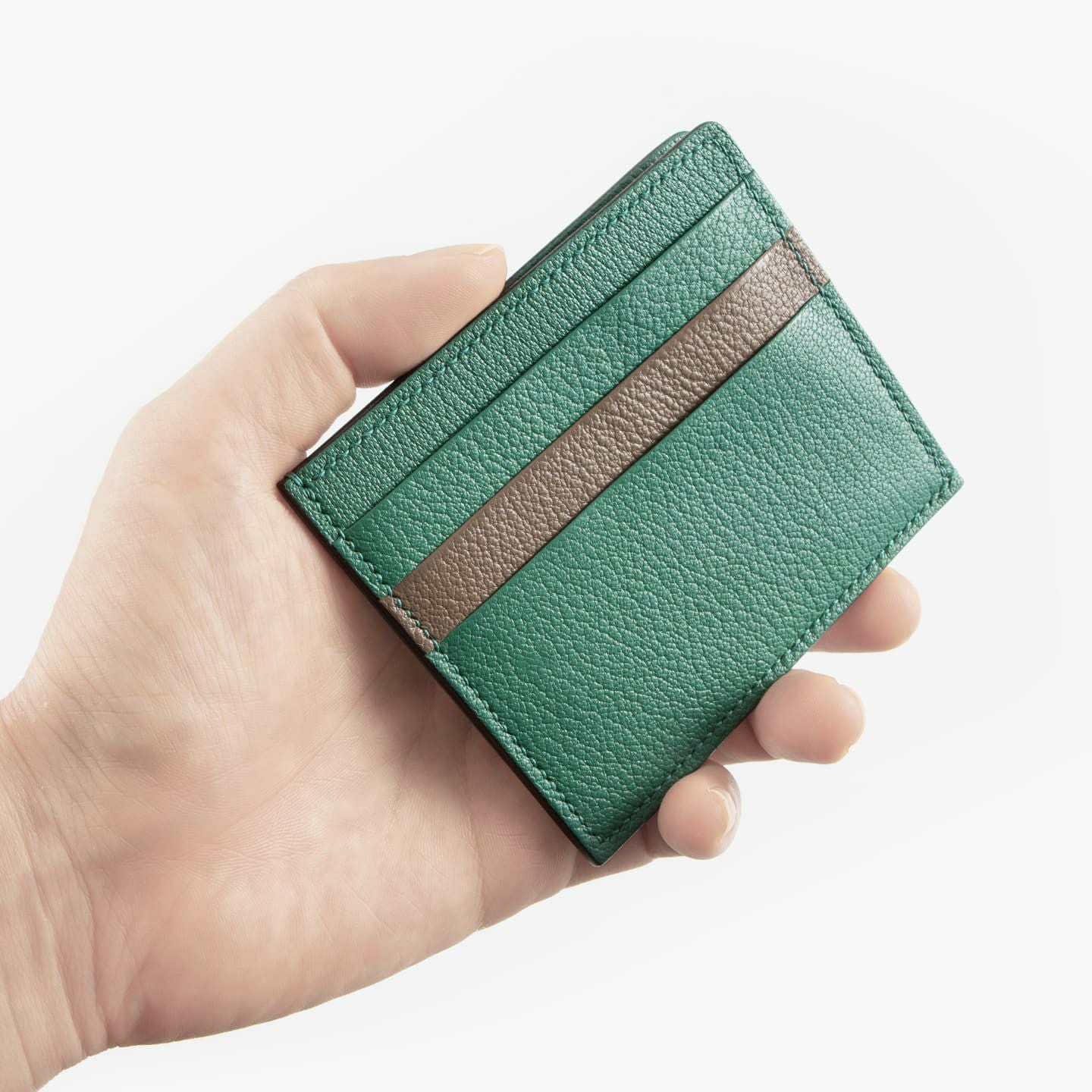 外装や外装装飾から、内装の札ばさみ裏地や小銭入れ内部・マチに至るまで、美麗なシボが魅力的な山羊革「シェーブル」を採用。柔らかさと触り心地の良い質感を併せ持ち、小キズなども付きにくいのでデイリーユースに最適な丈夫さも実現。「シェーブル」自体は、牛革と比べると軽量であるとともに、シャツの胸ポケットに収まるコンパクトなサイズ感でありながら、薄くし過ぎずに強度が保てる厚さをミリ単位で調整することで、軽くなり過ぎずに上質な存在感へと導いています。