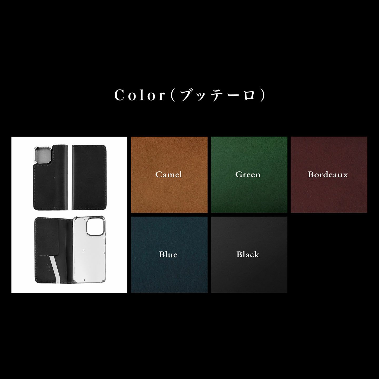 本体から「ポリカーボネート」の剥がれを起こさないためステッチを縫い込み、デザインのアクセントのように仕立てるなど、細部にまで革職人としての独創性が凝縮。カードポケット2つ・フリーポケット(小)1つ・フリーポケット(大)1つを装備している、内装の設計も横型のポケットにすることで、iPhoneの画面へのキズを防ぎながらカード・名刺・紙幣などを収納・携帯できるように配慮しています。また、外装・内装に採用している「ブッテーロ」は5カラーからチョイスでき、内装ポケット装飾を「シェーブル」に変更することも可能で、豊富な20色からアクセントとしてセレクトすることも可能。さらに、オプションでフラップ(マグネット式)を追加することもでき、裏返して留めてスタンドにしたり、話中に邪魔にならないように背面側に貼り付けられたり、職人の感性と技術も感じられます。