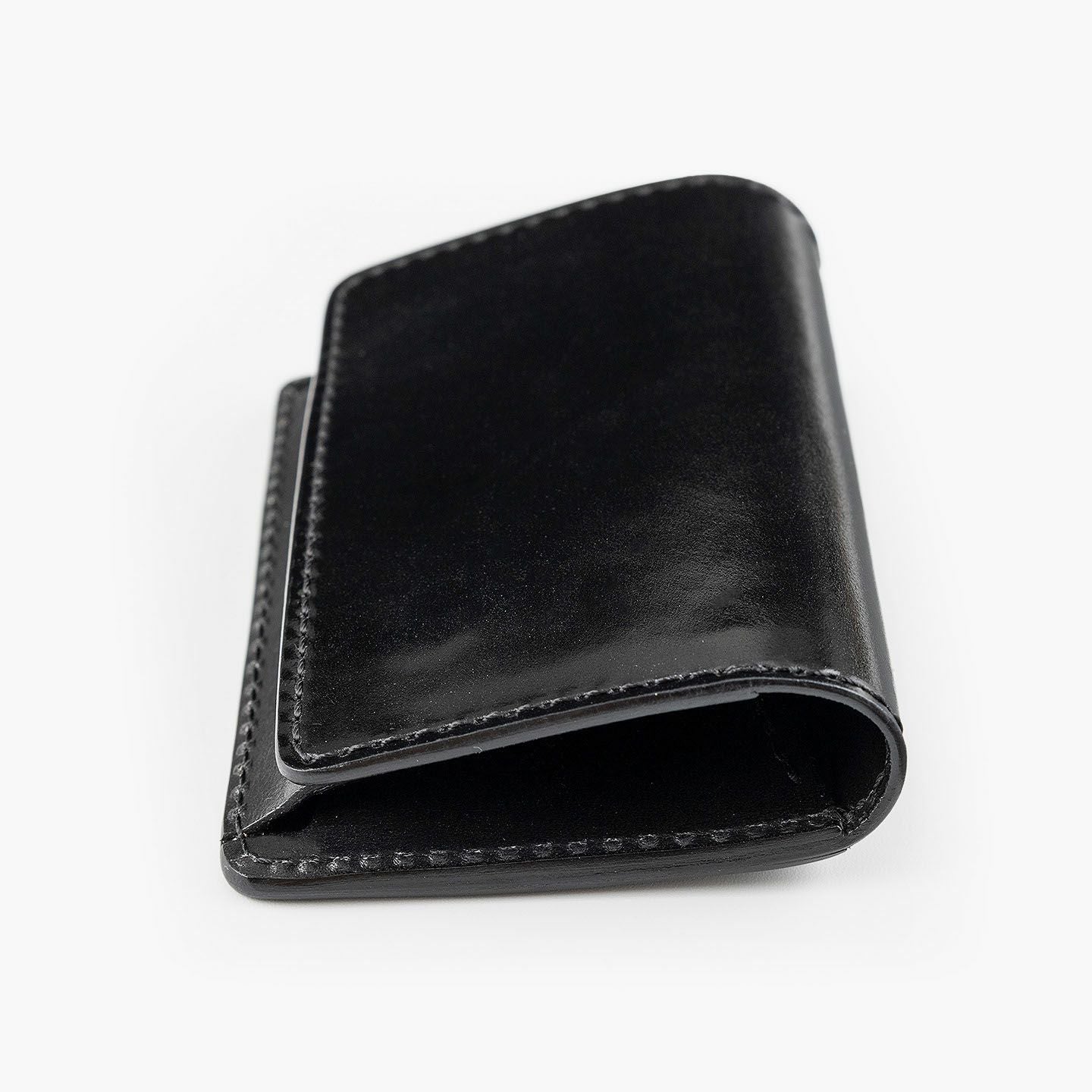 小銭・カードだけでなく折り畳んだ紙幣も入れられ、オールインワンのミニ財布としても使える、コインケース“マウス”。兵庫県姫路市・新喜皮革の「コードバン」を纏った外装は、うっすらと素地が浮かび上がり、まったく同じ表情が他にはない唯一無二の贅沢感を醸成。美しい光沢と透明感も魅力で、使い込むほどに深まるエイジングも特長。ハリ感があって外装とも相性が良い「牛ヌメ革」の内装は、オイルを染み込ませたタンニン鞣し革を採用。そして、カブセの角や裏、コインポケットや背面カードポケットのカッティングラインには、デザインのアクセントなる美しいカーブが描かれ、洒落感あふれる個性を演出。丸みを帯びた愛らしいフォルムが、手に馴染む絶妙なサイズ感で、この上ない親近感を抱かせてくれる。