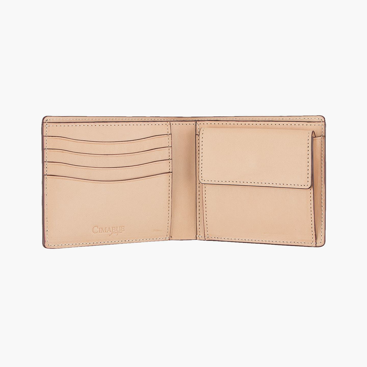 『CIMABUE』が、世界最高峰の工房·レーデルオガワにオリジナルレシピでカラーオーダーして染色·再加脂をした「アニリン染めコードバン」の二つ折り財布。熟練した東京の職人による匠の技で仕立て、素材の良さを最大限に生かしながら、優雅でゆとりのあるクオリティを実現。二つ折り財布ならではの手軽さや、小銭入れを装備した実用性・機能性を、ベーシックスタイルの普遍的な美しさとともに叶えています。