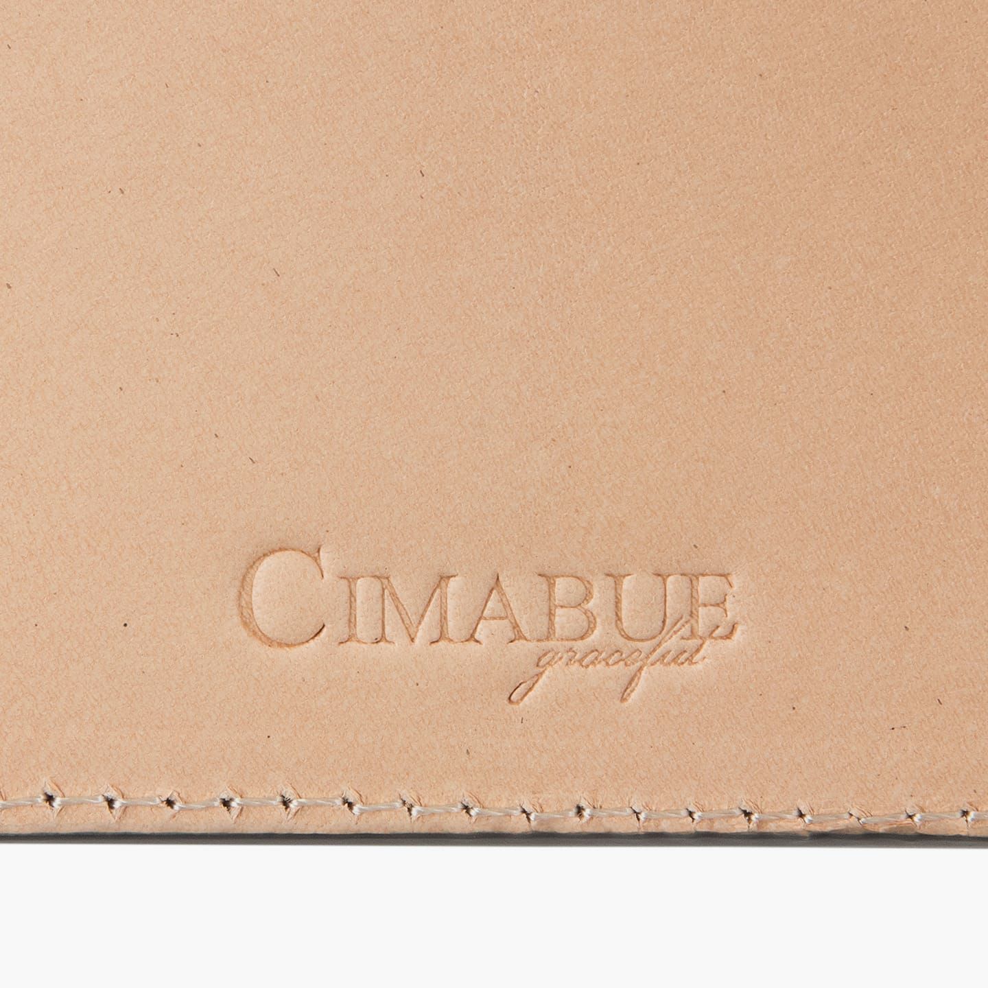 内装には、天然植物性のタンニン剤のみを使用してピット製法を行った、栃木レザー社による本ヌメ革「栃木レザー」を採用。多くの時間と根気のいる工程を経て生まれ、使い込むほどに圧巻の経年変化を実感。カード面下部には、素押しの『CIMABUE』ロゴが施され、こだわりの最上級素材と東京の匠の職人技による確かな品質を保証。