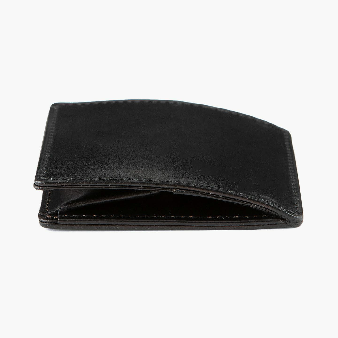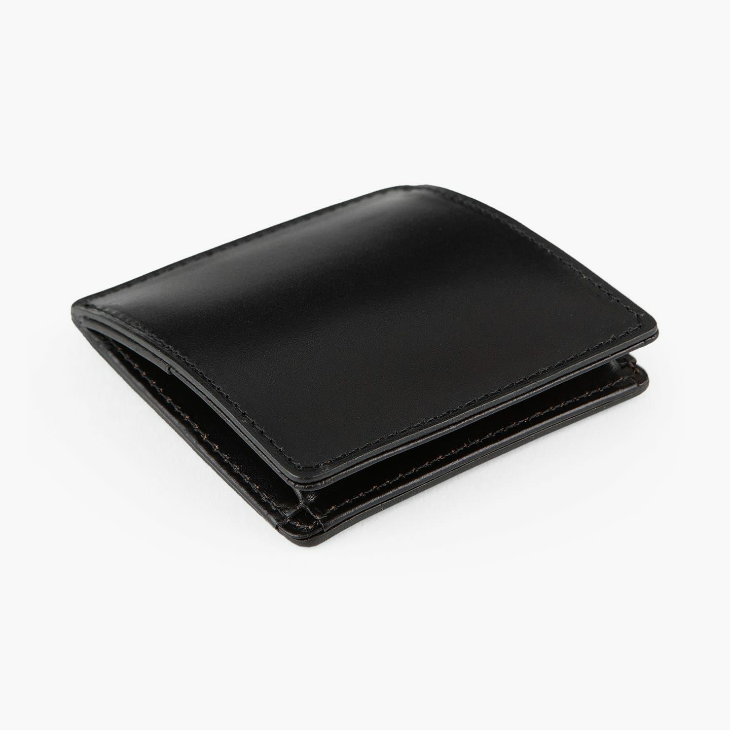 使い込むほどに、内部のオイルがこの上ないツヤ感を生み出し、至高の美しさを讃えるように高品位な経年変化をしていく、外装の「シェルコードバン」。フラップを背面より少し長い設計にすることで、閉じたときに弓ぞったような湾曲したフォルムになります。これにより、小銭を実際に入れた状態でも美しいシルエットを保つことができ、小銭を多く収納していても、ホールド性に優れているイタリア製スナップボタンにより、キレイに留めることができる設計。そして、この機能美としての滑らかなカーブが、「シェルコードバン」の輝きをより美しくさせ、完成度を高めています。