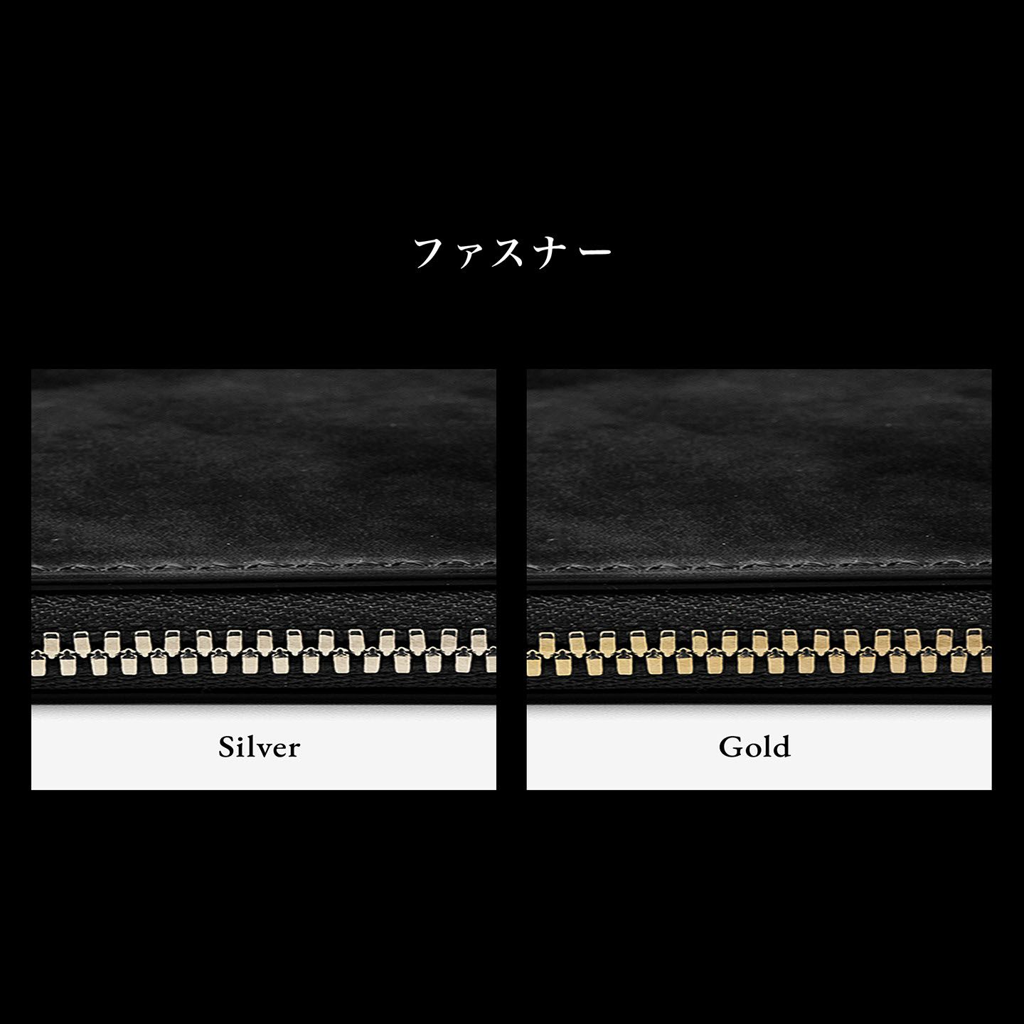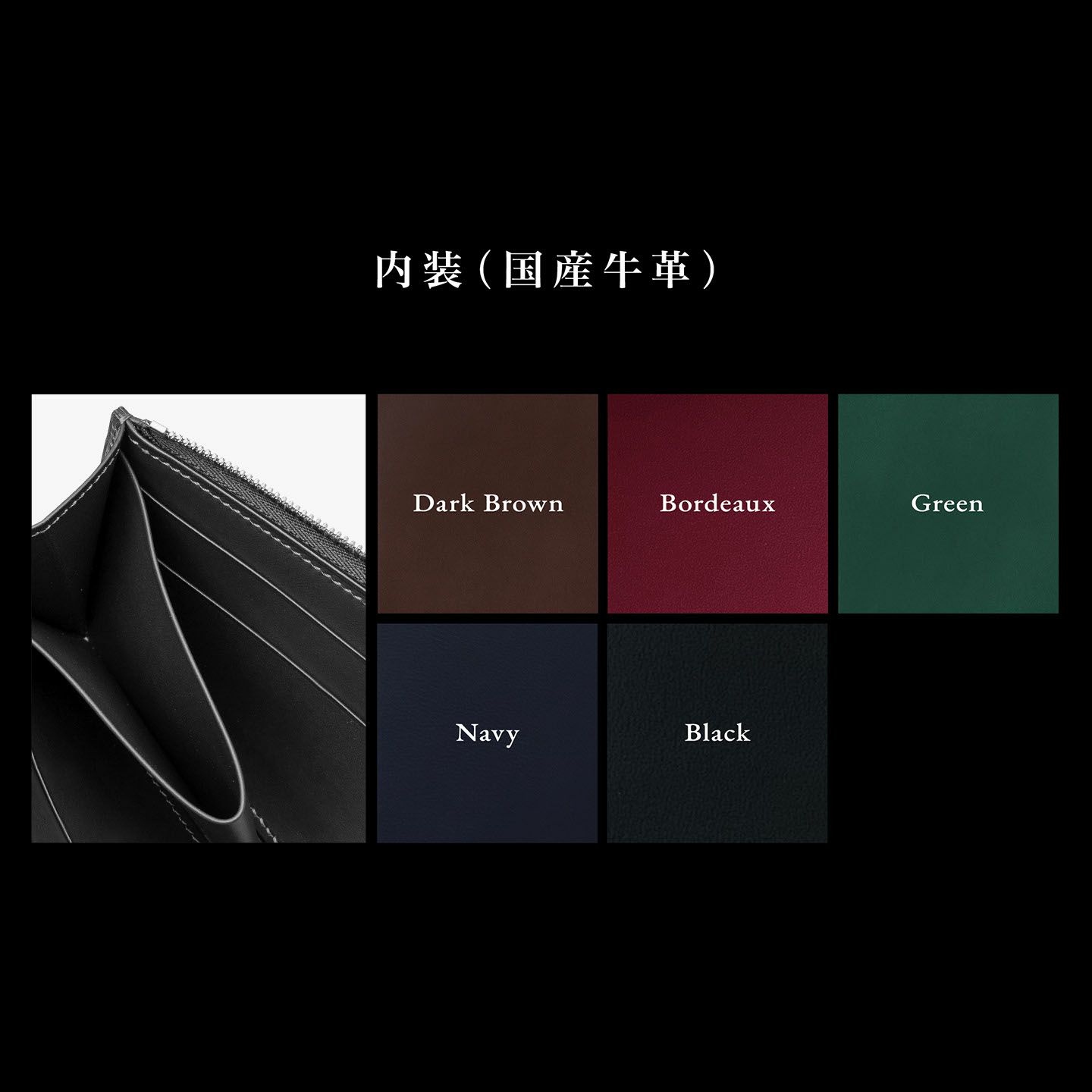洗練されたシンメトリーデザインの内装には、左右1つずつ(計2つ)の札スペース・左右2つずつ(計4つ)のカードポケット・センター1つのコインポケットを備えたスマートなオールインワン設計。また、外装「ミュージアムコードバン」は4色から、内装「ピアヌーラ」は5色からセレクトできる、カラーオーダーにも対応しています。緻密な総手縫いによるステッチの糸色と、丁寧に手間暇をかけているコバの色、ファスナーテープの色は、ブランドが選んだレザーカラーに合う色をチョイス。さらに、ファスナーもSilver・Goldのいずれかからセレクトできるとともに、その引き手は日本刀をイメージさせるMLS別注仕様のオリジナルデザインになっています。