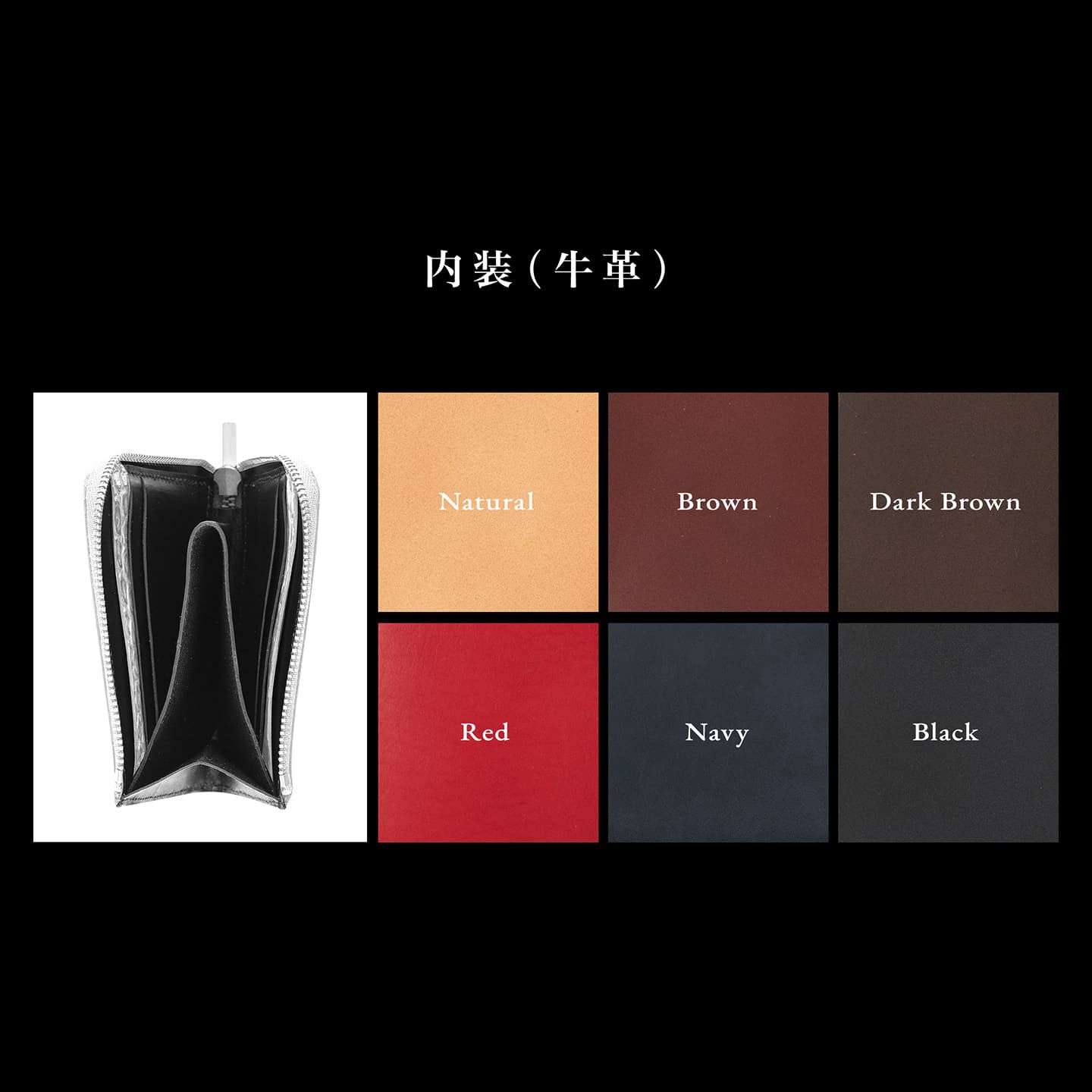 内装には、肌触りが良い堅牢な牛革をセレクト。正確な断裁と繊細なコバ仕上げで切り目を表現し、無縫製による高品位な上質感を創出しています。小銭入れは、内装の中央にファスナー・ボタンを設けないポケットして配置し、外装のファスナーを閉じることで快適な収納が可能。オーソドックスな形状でコンパクトでありながらも、紙幣を入れた際にファスナーを巻き込まない高さに計算された設計で、使いやすさとともに収納力も兼ね備えています。